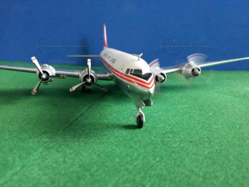 Die DC-6 wurde in verschiedenen Versionen von 1946 - 1958 gebaut. Sie war die direkte Konkurrenz der Lockheed Constellation und das erste Flugzeug von Douglas mit einer Druckkabine.