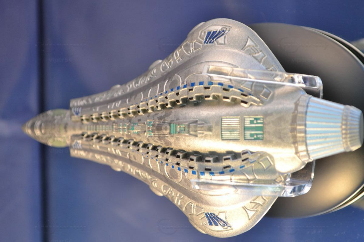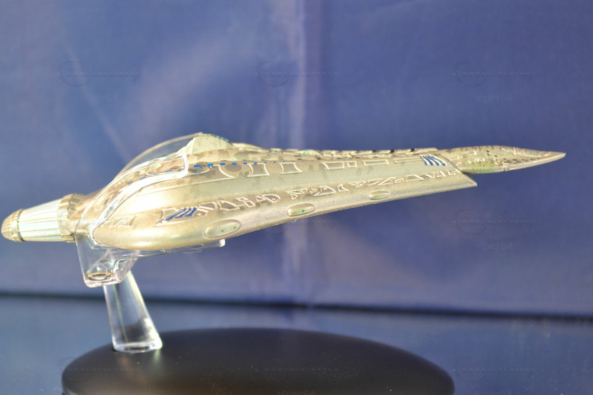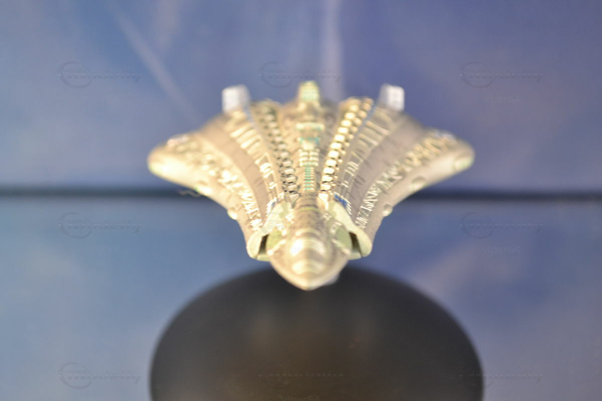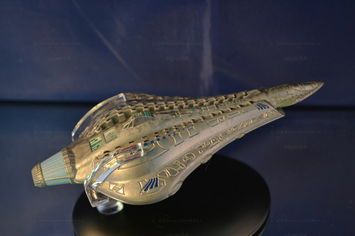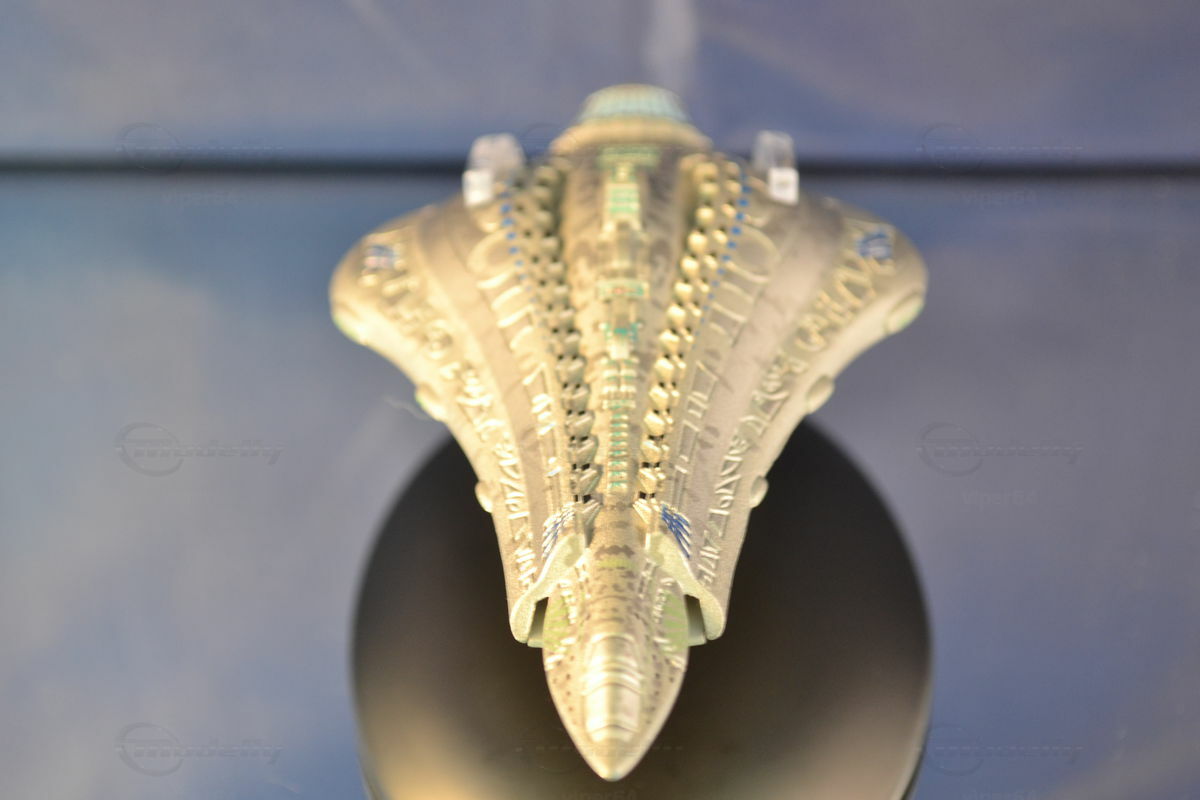 Bei diesem Modell wird die Problematik mit einem einheitlichen Maßstab verständlich. Welchen Maßstab hätte man sollen bei der Sammlung ansetzen? 1:200? Dann wäre dies Modell 5,5 Meter lang!! Wo sollte man so ein Modell unterbringen? Und erst die Kosten :-))) Und ein kleinerer Maßstab? 1:600? Dann wären Raumschiffe mit 15m Länge gerade mal 2,5cm groß. Da bräuchte man eine Lupe und Details wären nicht mehr herausarbeitbar.