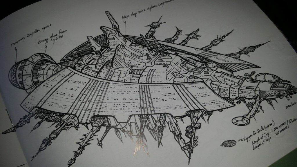 Wie der Name bereits erahnen läßt, handelt es sich dabei um eine Art fliegende Kolonie, die alle Merkmale einer Großstadt besaß. Trotz der außergewöhnlichen Größe war deutlich zu erkennen, daß es sich um ein Raumschiff handelte- mit seiner pfeilförmigen Spitze, die sich auf beiden Seiten nach hinten hin verbreiterte und an dessen Ende der Hauptantriebsreaktor lag.