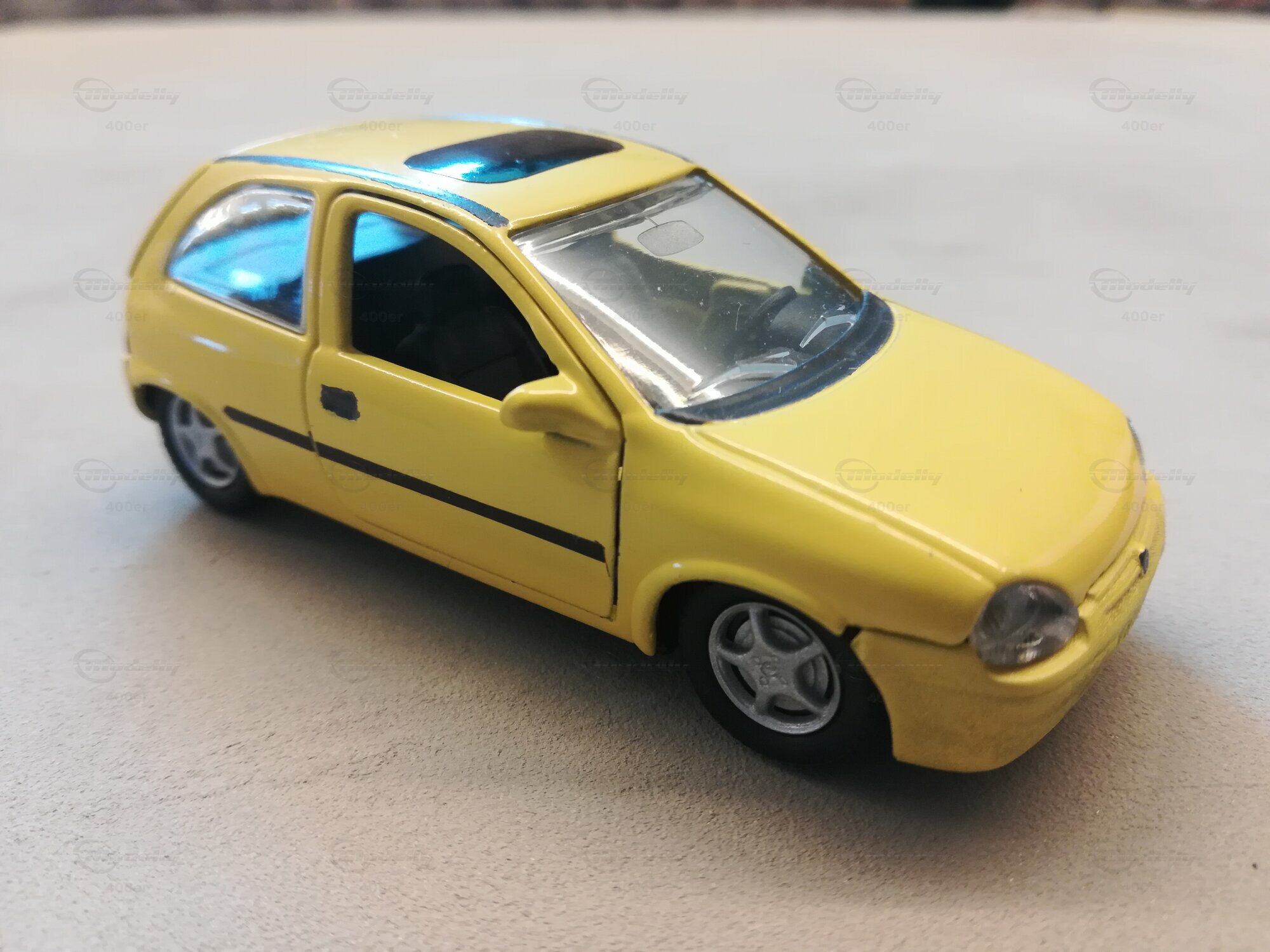 Es handelt sich dabei um einen Corsa "Atlanta" mit Tigra-Felgen und alle Karossierieteile sind in Wagenfarbe lackiert.