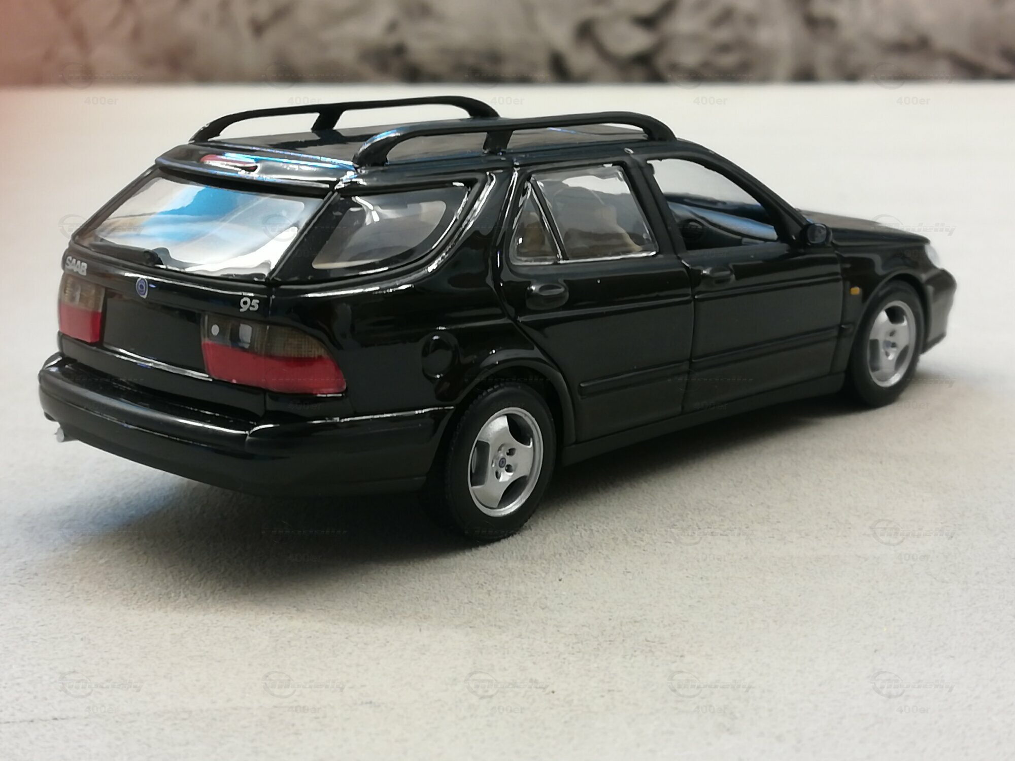 Das Miniaturauto im 1:43 Maßstab von Minichamps zeichnet sich durch eine detailgetreue Nachbildung des Originalfahrzeugs aus. Besonders auffällig sind die liebevoll gestalteten Details, wie die präzise nachgebildeten Scheinwerfer, das Markenemblem auf dem Kühlergrill und die filigranen Fensterdetails. Das Modell ist in einer glatten, glänzenden Lackierung gehalten, die den Charakter des Saab 9-5 Aero Sportkombi perfekt einfängt. Die ausgefeilte Verarbeitung des Plastiks und die exakte Nachbildung der Räder und Reifen zeugen von hoher Handwerkskunst. Auch die Innenausstattung, wie die geformten Sitze und das Armaturenbrett, sind harmonisch und überzeugend dargestellt.