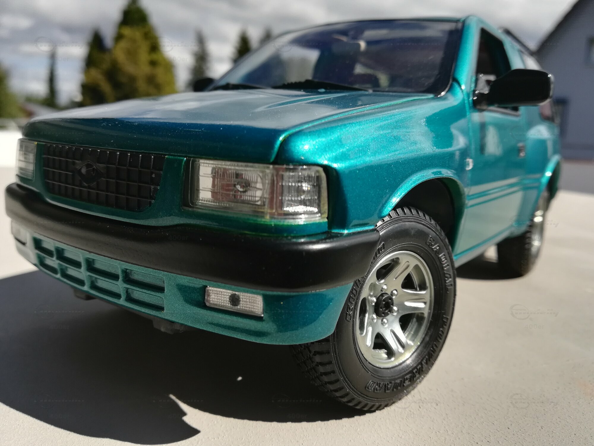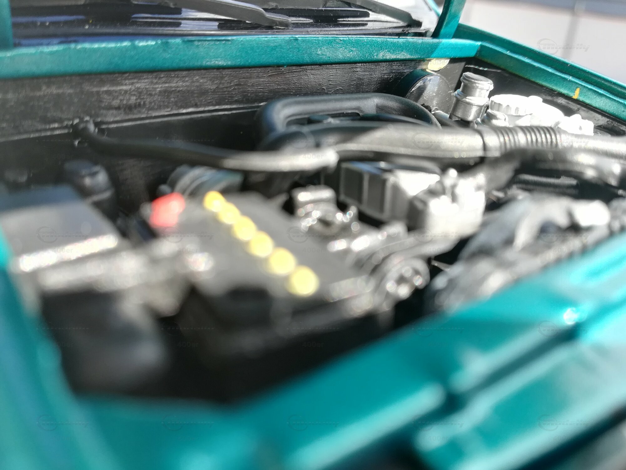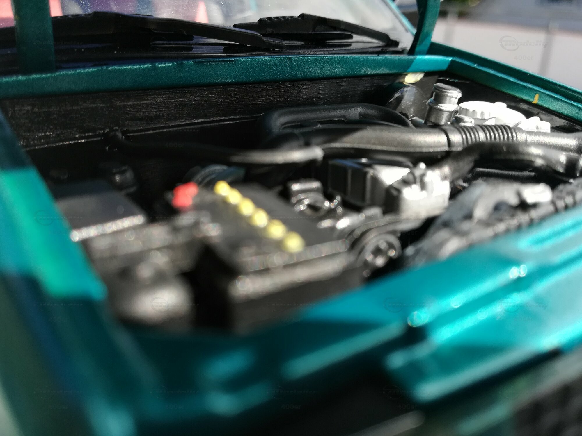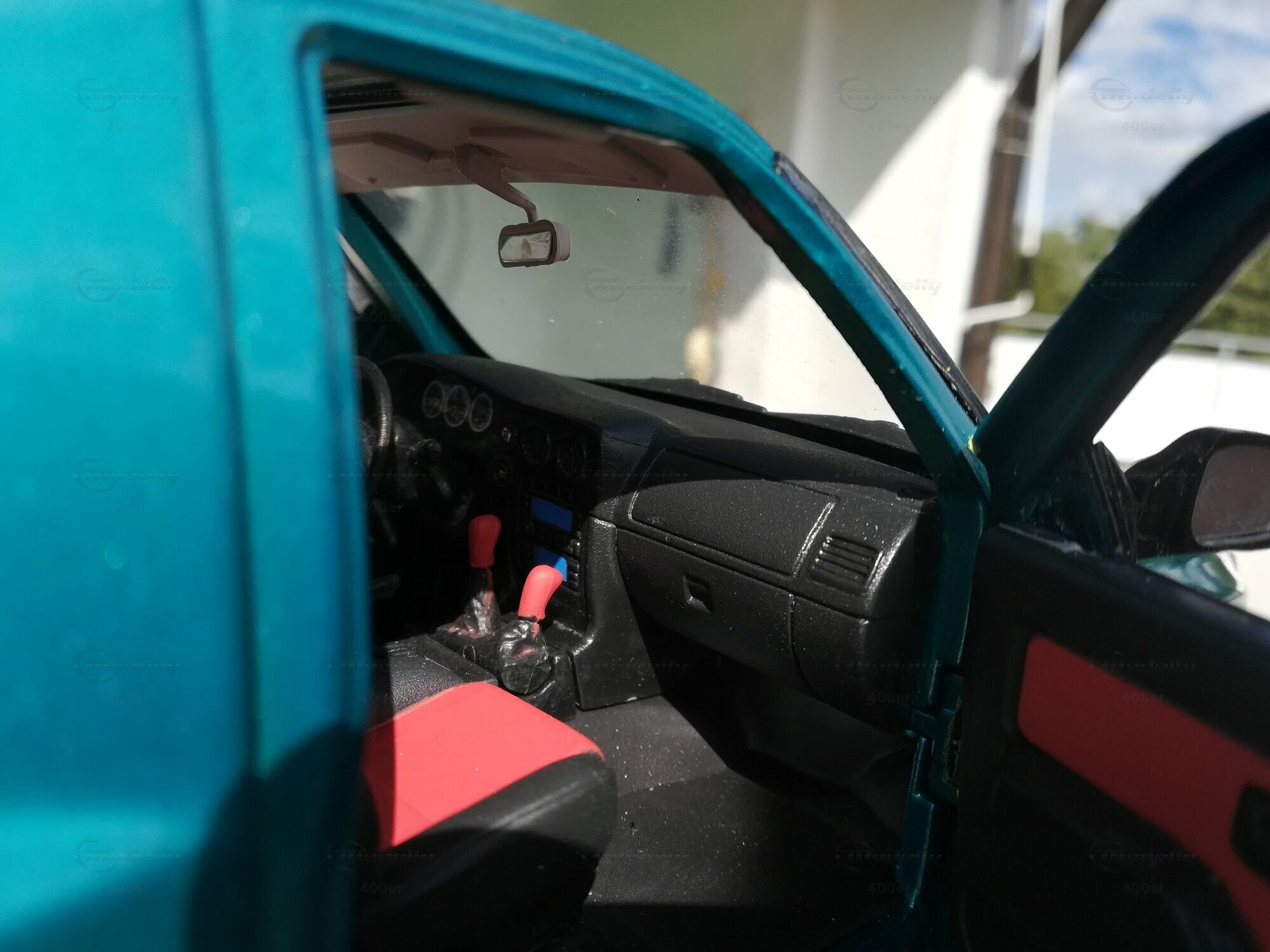 Das Modell war ursprünglich gelb und mit einem Dekor beklebt. Ich habe es komplett zerlegt und im Originalfarbton karibikblau lackiert. Das Vorbild befand sich von 2006 bis 2011 in meinem Besitz, bevor es mit einer viertel Million Kilometer nach Kasachstan ging, wo es vielleicht heute noch läuft