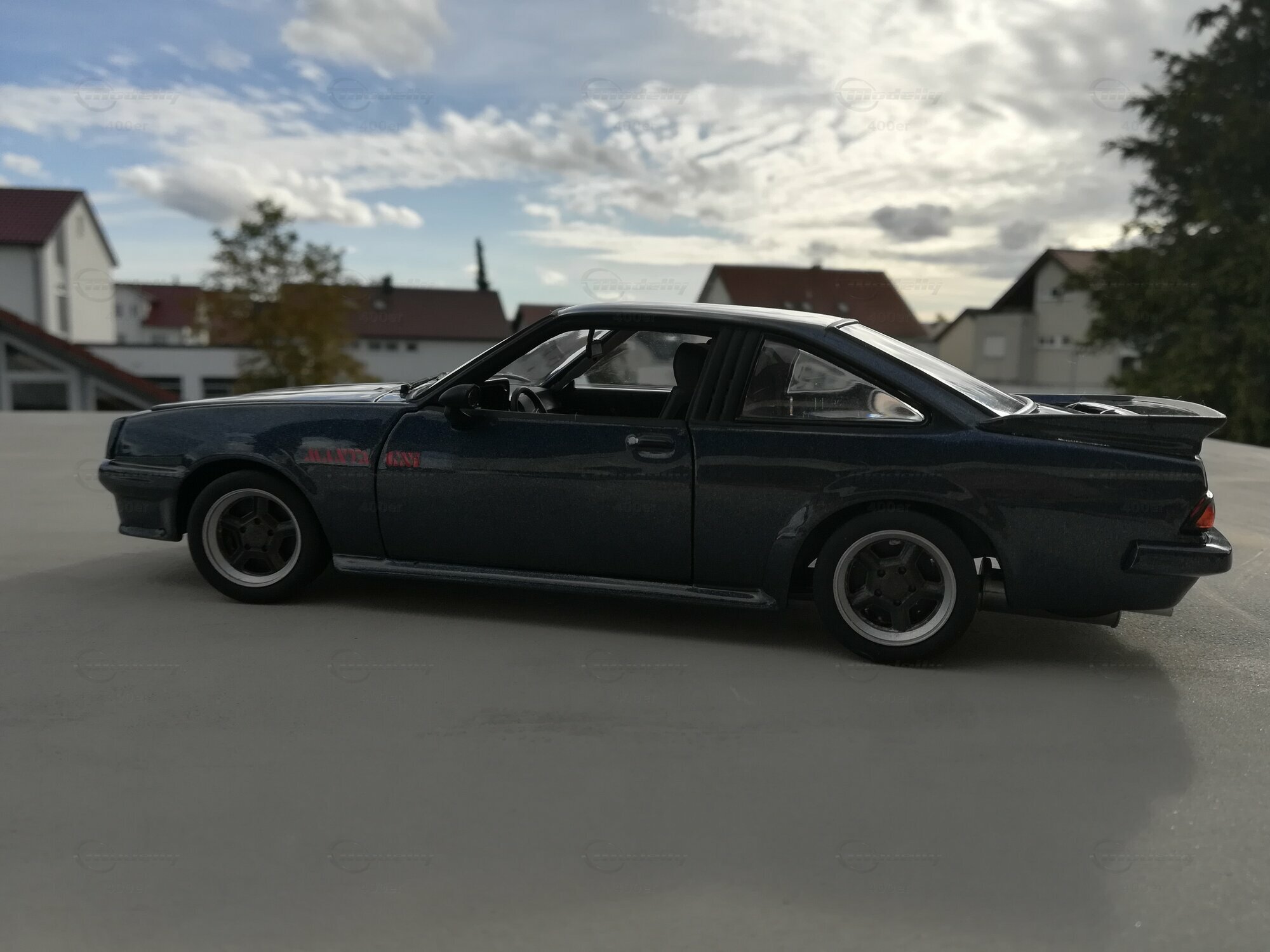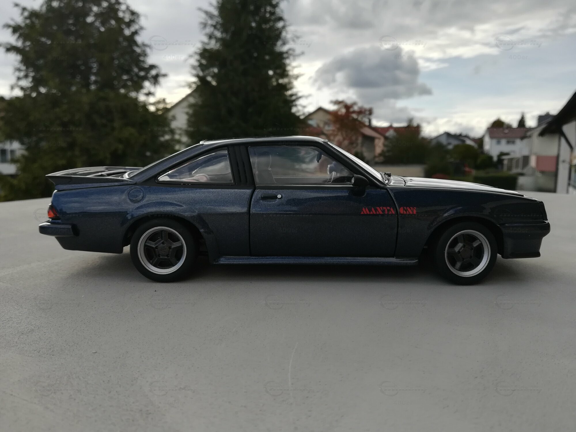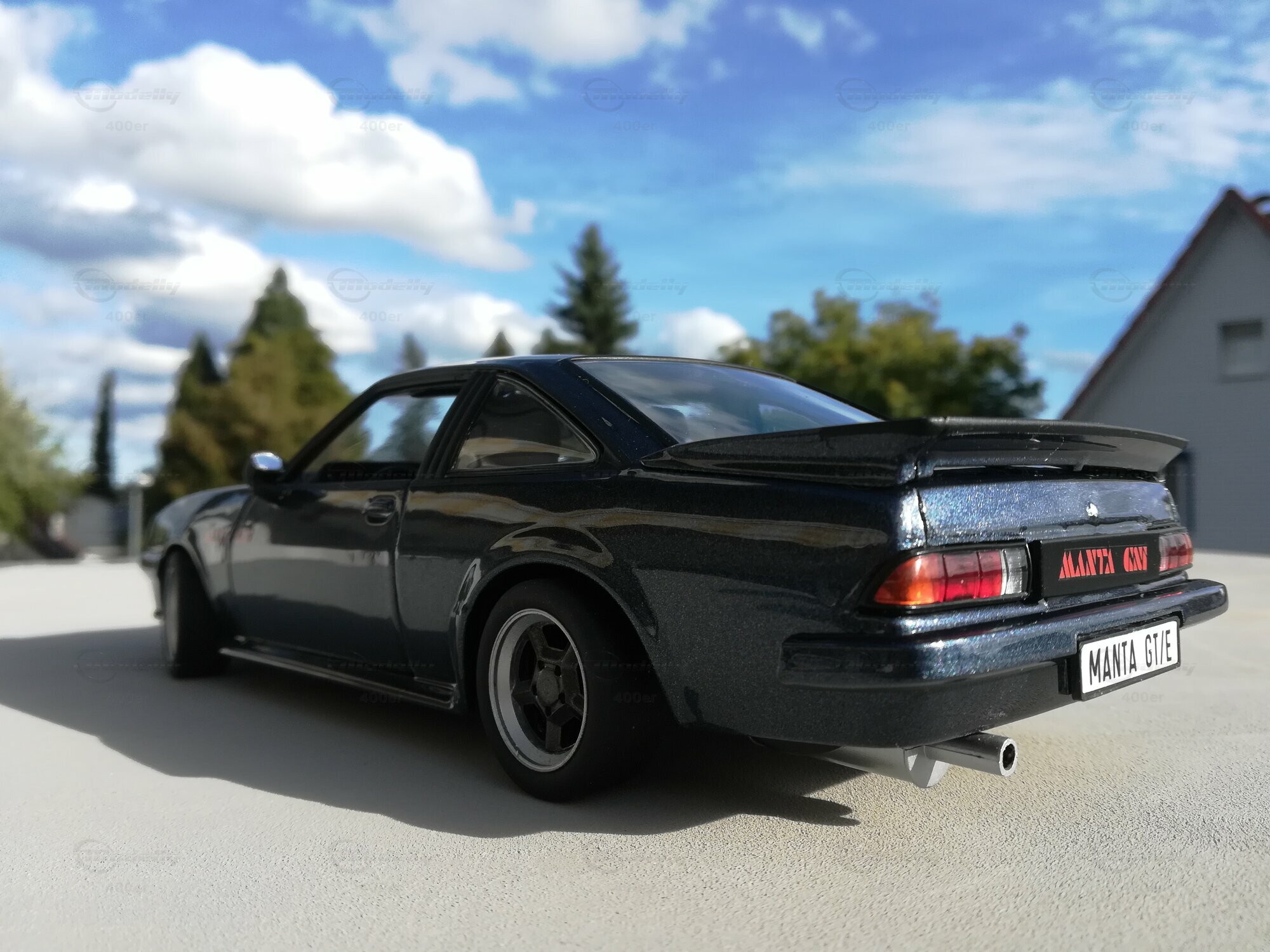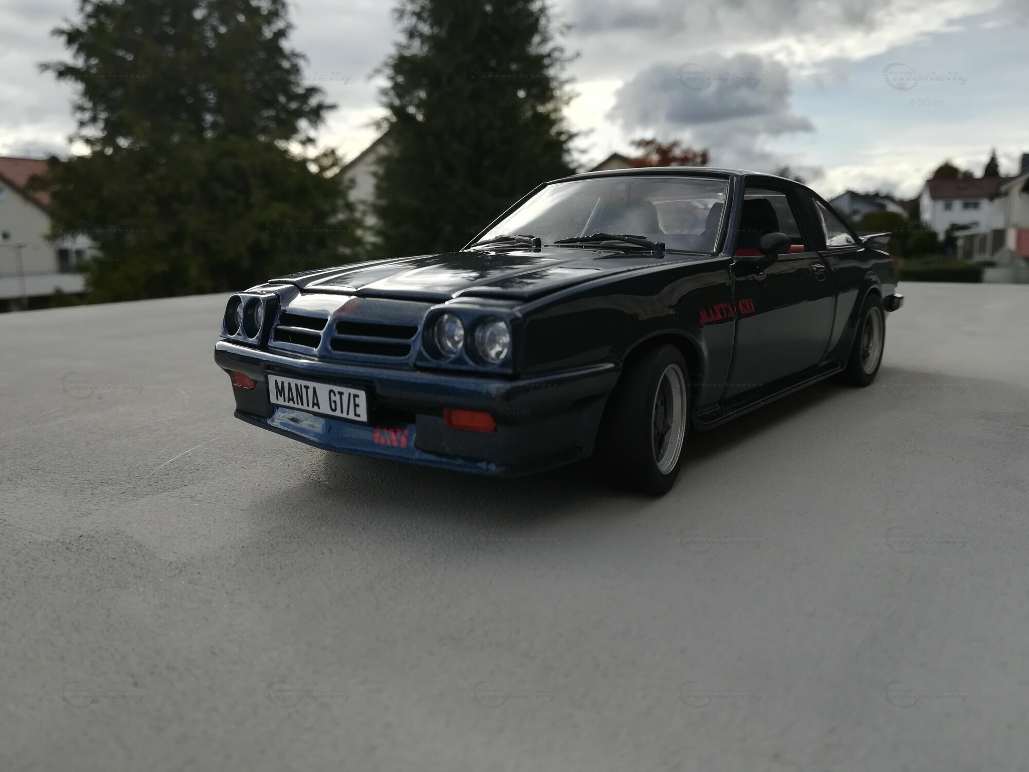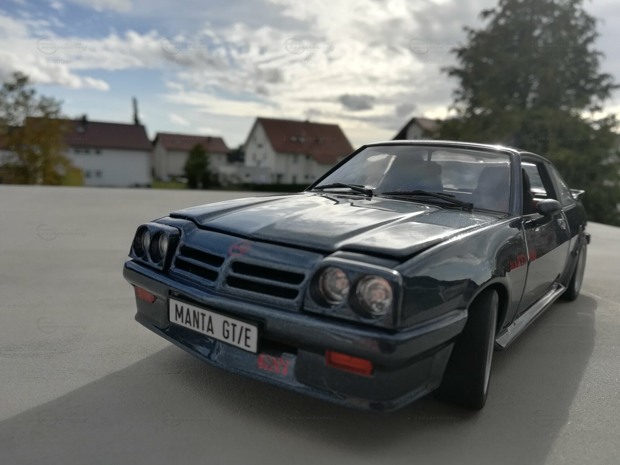 Umbau auf Basis des bekannten Manta GT/E. Karosserieteile, Räder sowie Decals stammen von Uli Nowak, Heckstoßstange und Heckblende sind eigenbau. Das Modell wurde von mir komplett zerlegt und im Originalfarbton monacoblau lackiert. Das Modell befindet sich im Besitz meiner Tochter