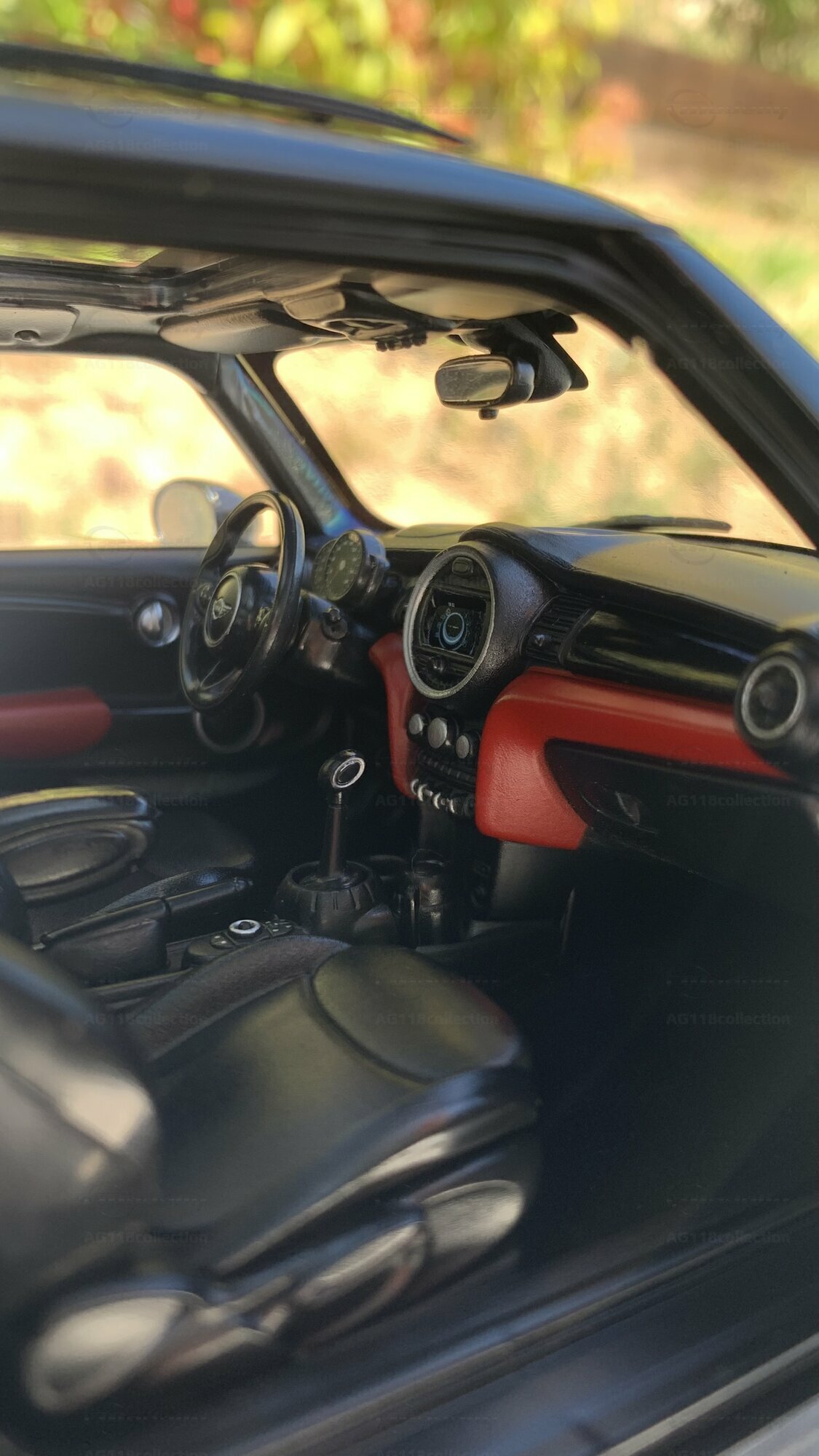 Die technische Finesse des Originals wie der TwinPower-Turbo-Motor oder die adaptive Fahrwerkssteuerung findet ihren Platz im aufwändig gefertigten 1:18 Modell von Norev. Die detaillierte Gestaltung des Innenraums umfasst realistisch nachempfundene Sitze, Armaturen und Instrumente, die das Herz eines jeden Sammlers höher schlagen lassen. Erwähnenswert sind auch Ausstattungsmerkmale wie das markante Abgassystem mit den zentralen Endrohren sowie die charakteristischen Rückleuchten des F56-Designs, die im Modell akkurat umgesetzt wurden.Neben der technischen Präzision besticht dieses Modell auch durch seine hervorragende Verarbeitung und die Liebe zum Detail, die sich in jeder Linie und jedem Bauteil widerspiegelt. Mit seinen detaillierten Nachbildungen von Scheinwerfern, Rücklichtern und der authentischen zweifarbigen Lackierung bleibt das Modell dem ikonischen Design des Mini Cooper S (F56) treu und bietet Sammlern weltweit ein Highlight für ihre Vitrine.