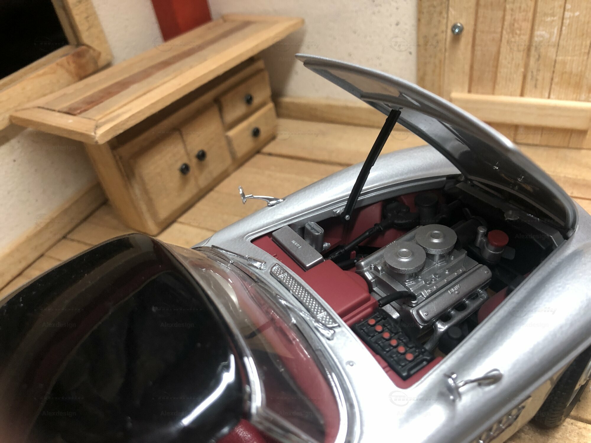 Bei der grauen wurde der Motor mit Alu-Teilen verbessert und die Auspuffanlage ist aus Alu.