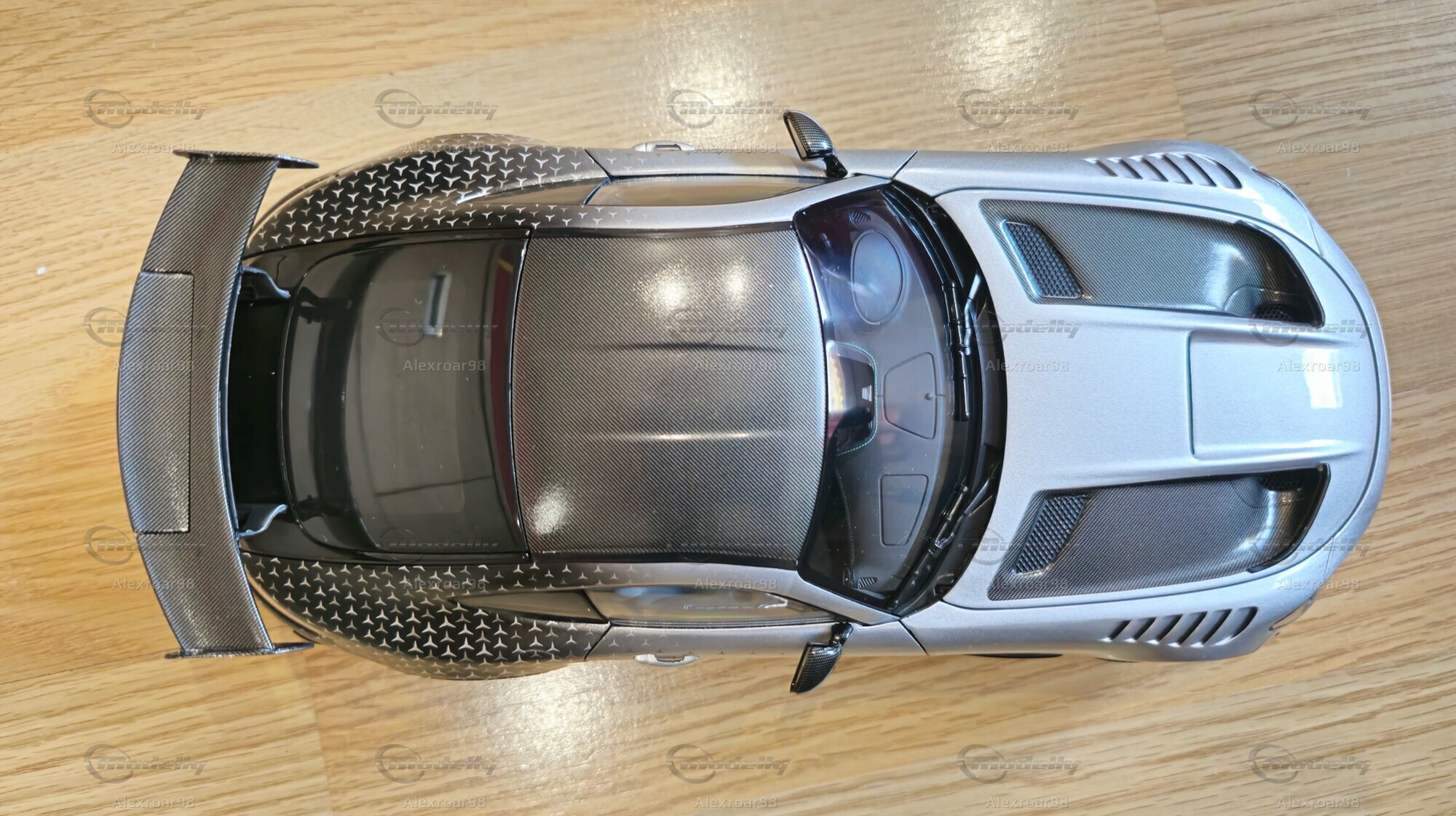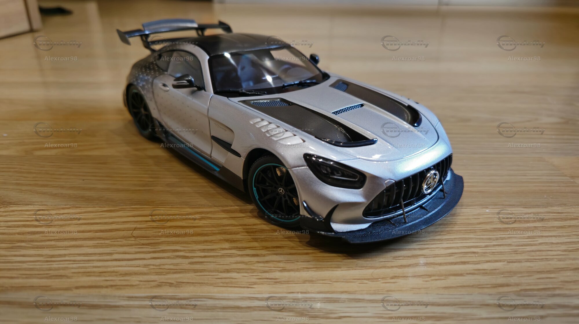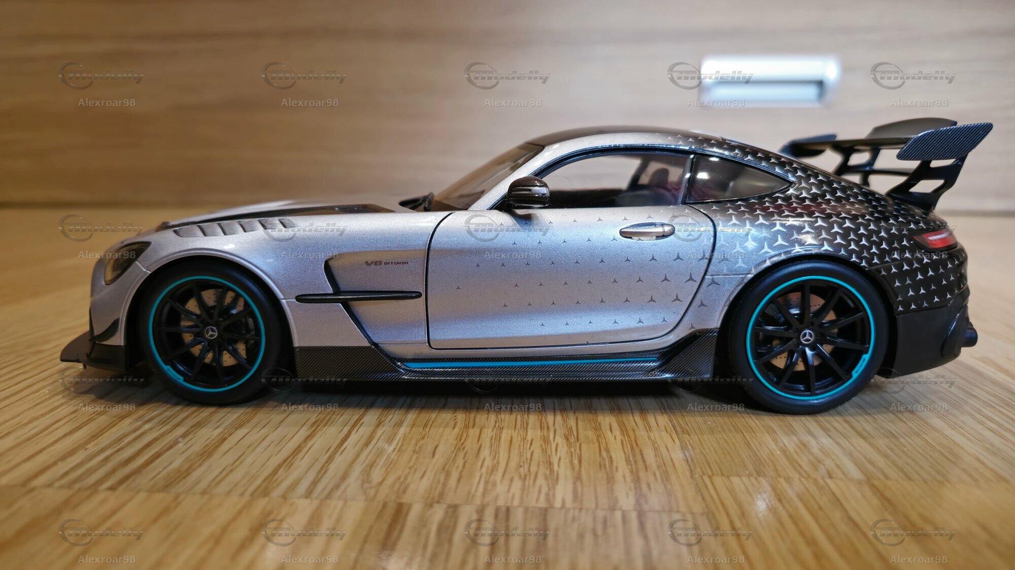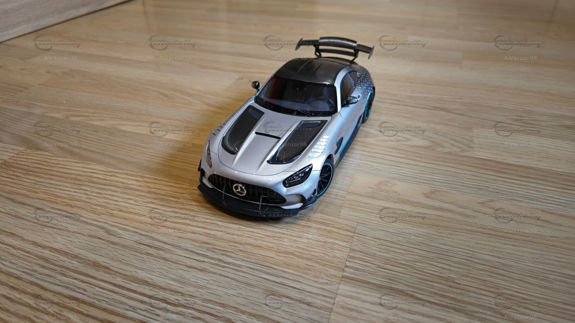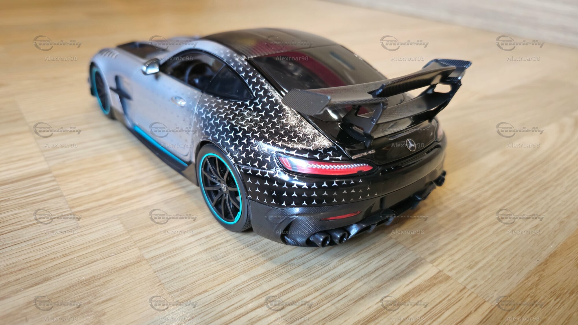 Die gezeigte Modellauto-Version des Mercedes-Benz AMG GT Black Series ist eine detailgetreue Reproduktion im 1:18 Maßstab, hergestellt von Minichamps. Als Miniatur begeistert dieses Modell durch seine Präzision und die vielseitige Nutzung von Materialien, insbesondere die Verwendung von Diecast. Die Miniatur besticht durch eine exakte Nachbildung der äußeren Merkmale des Originalfahrzeugs, einschließlich seiner charakteristischen Front- und Heckspoiler sowie der markanten Lüftungsschlitze. Die Felgen sind ebenfalls originalgetreu gestaltet, jedoch lässt sich kein spezifischer Hersteller identifizieren. Dieses Sammlerstück von "Alexroar98" auf Modelly zeigt nicht nur die Formen, sondern auch die Farbtöne des Originals in beeindruckender Weise.