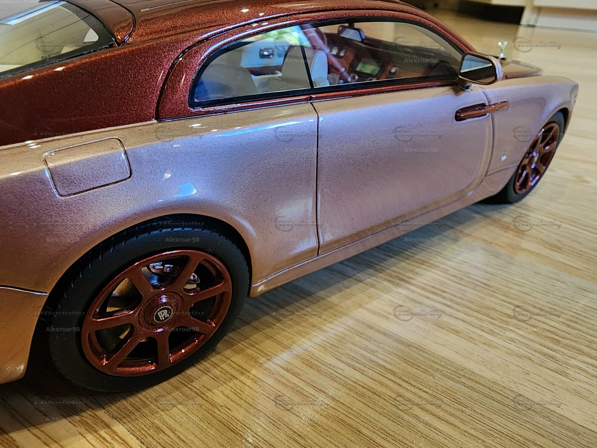 Die Miniatur, die in diesem Fall von Modelly-Mitglied "Alexroar98" gezeigt wird, ist ein präzise gestyltes Abbild des Rolls-Royce Wraith. Dieses Modellauto ist im 1:18 Maßstab gefertigt und aus hochwertigem Resin-Material hergestellt, was zu seiner detailgetreuen Darstellung beiträgt. Diese speziellen Modellautos sind Teil einer limitierten Edition von nur 1 Stück weltweit und somit besonders exklusiv und begehrt unter Sammlern. Auf den Fotos wird deutlich, dass die Miniatur eine besondere Lackierung aufweist: ein atemberaubendes Metallic-Rot, das im Sonnenlicht schimmernde Akzente setzt. Die Räder sind ebenfalls bemerkenswert und könnten, sofern klar identifizierbar, einen Räderhersteller wie Vossen darstellen, was das Gesamtbild des Fahrzeuges vervollkommnet.