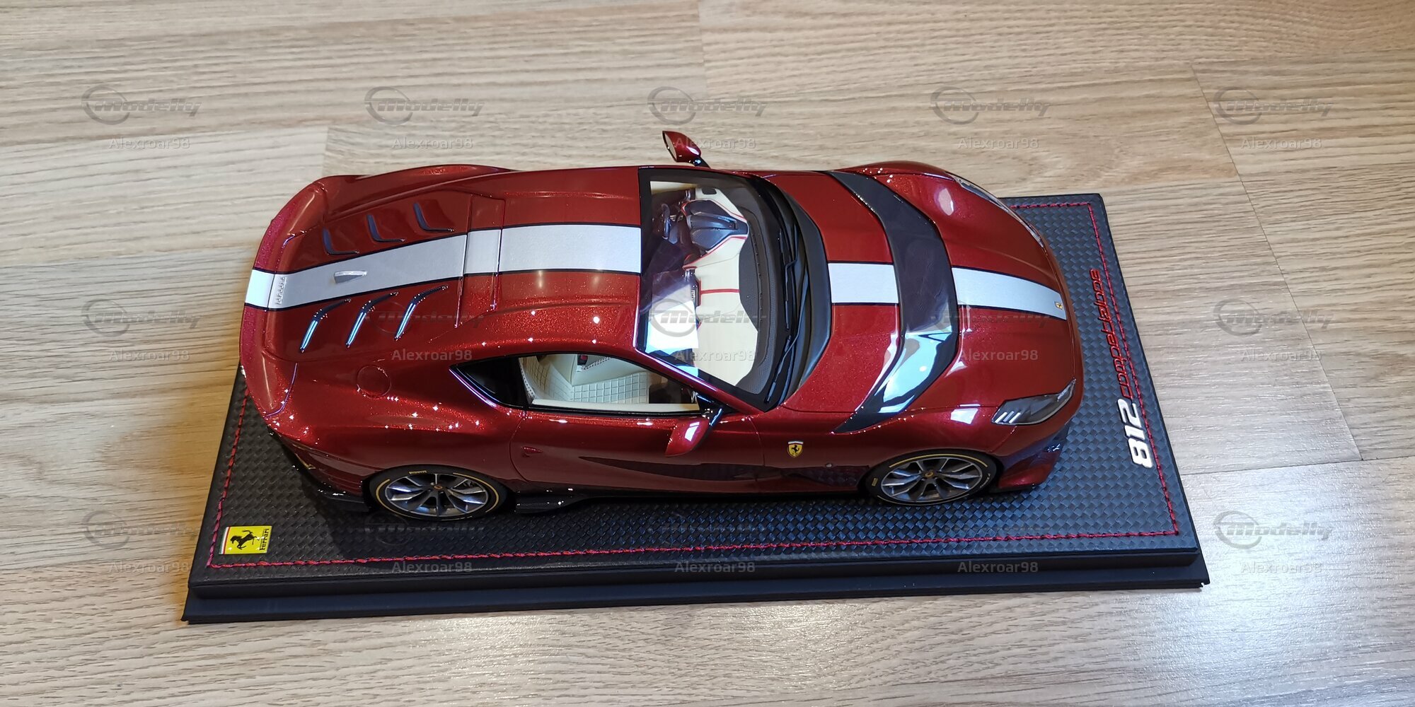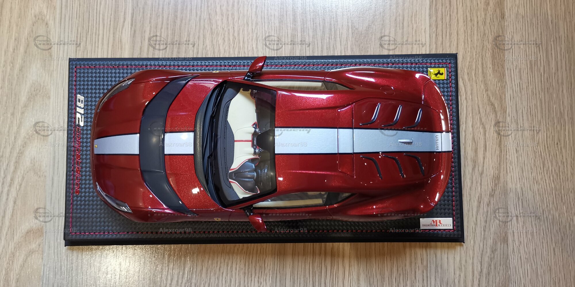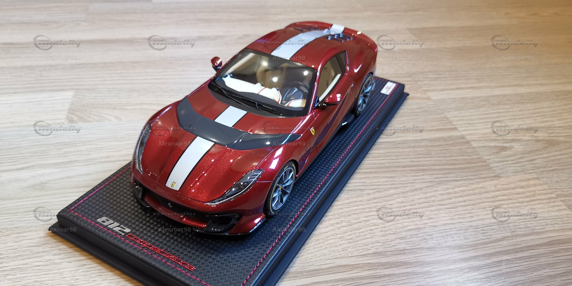 Für Modellauto-Enthusiasten und -Sammler ist dieses Modell des Ferrari 812 Competizione im 1:18 Maßstab ein wahres Highlight. Hergestellt von MR Models, zeichnet sich dieses Modell durch seine exakte Detailgenauigkeit und hochwertige Verarbeitung aus. Besonders bemerkenswert ist die Verwendung von Resin, das eine präzise Nachbildung der feinen Details ermöglicht. Die Lackierung des Modells ist in einem tiefen Rot gehalten, das perfekt den unverwechselbaren Glanz des Originals einfängt. Der schwarze Kohlefaserlook, der sich über die Motorhaube erstreckt, und die weißen Zierstreifen fügen einen Hauch von Exklusivität hinzu.