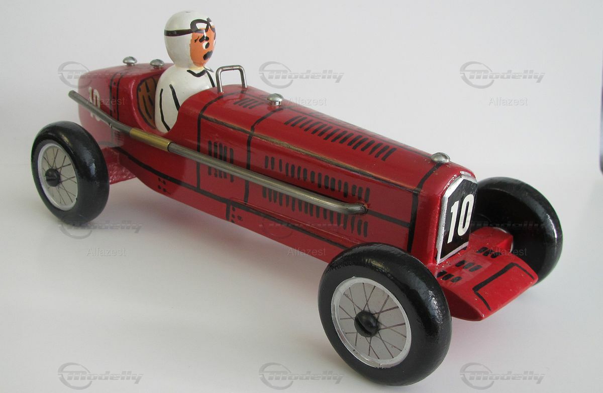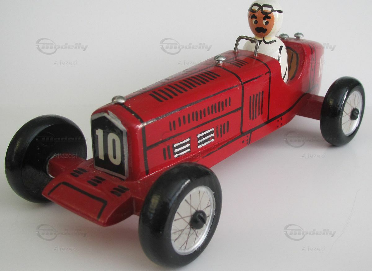 Teil einer ganzen Serie von Alfa Romeo Rennwagen-Modellen aus Holz. In England ersteigert, wahrscheinlich auch dort hergestellt. Das ist aber kein gesichertes Wissen.