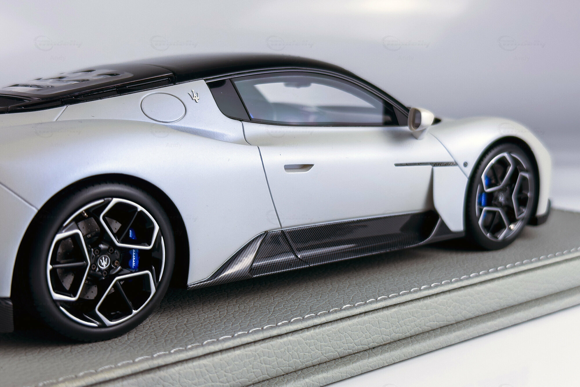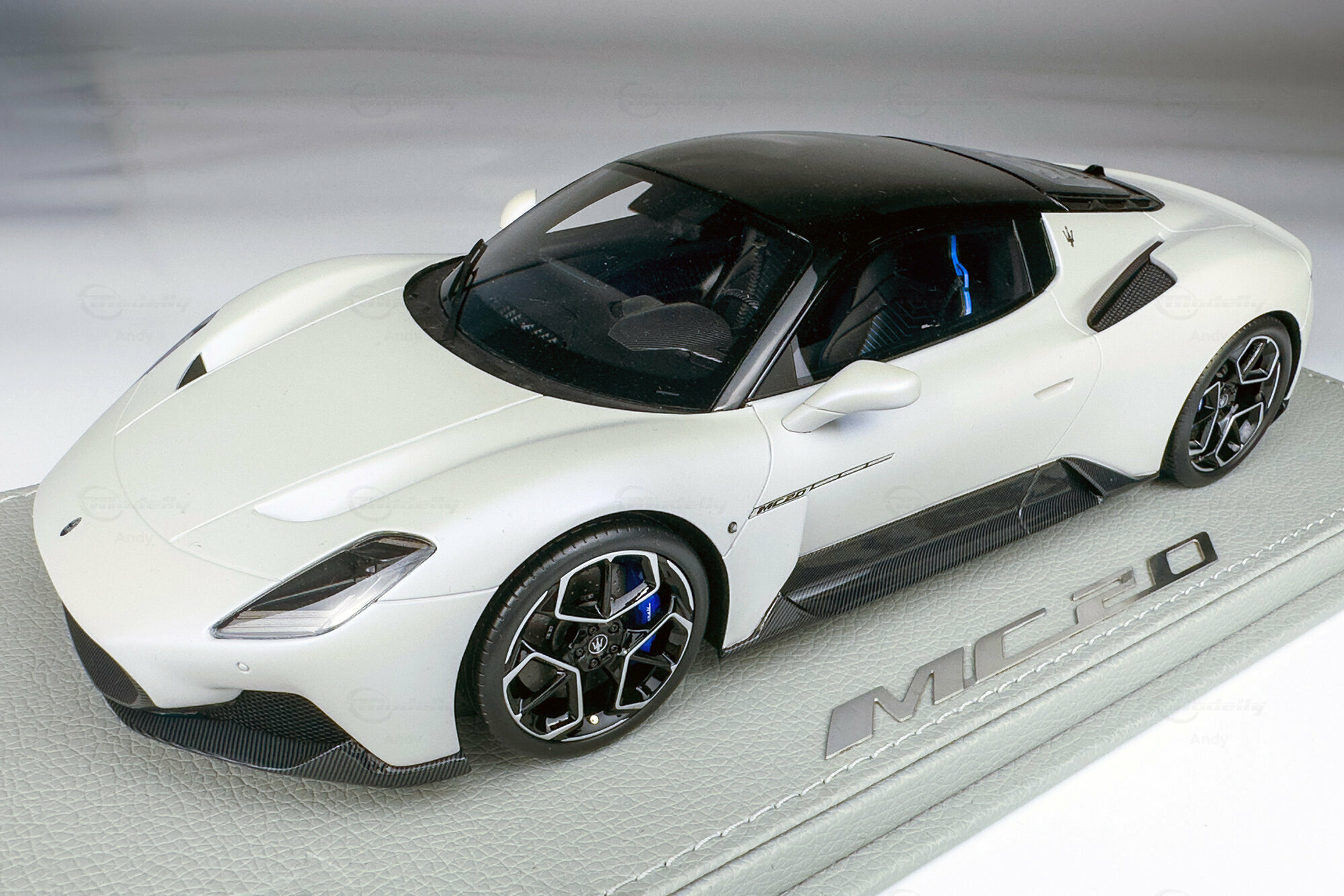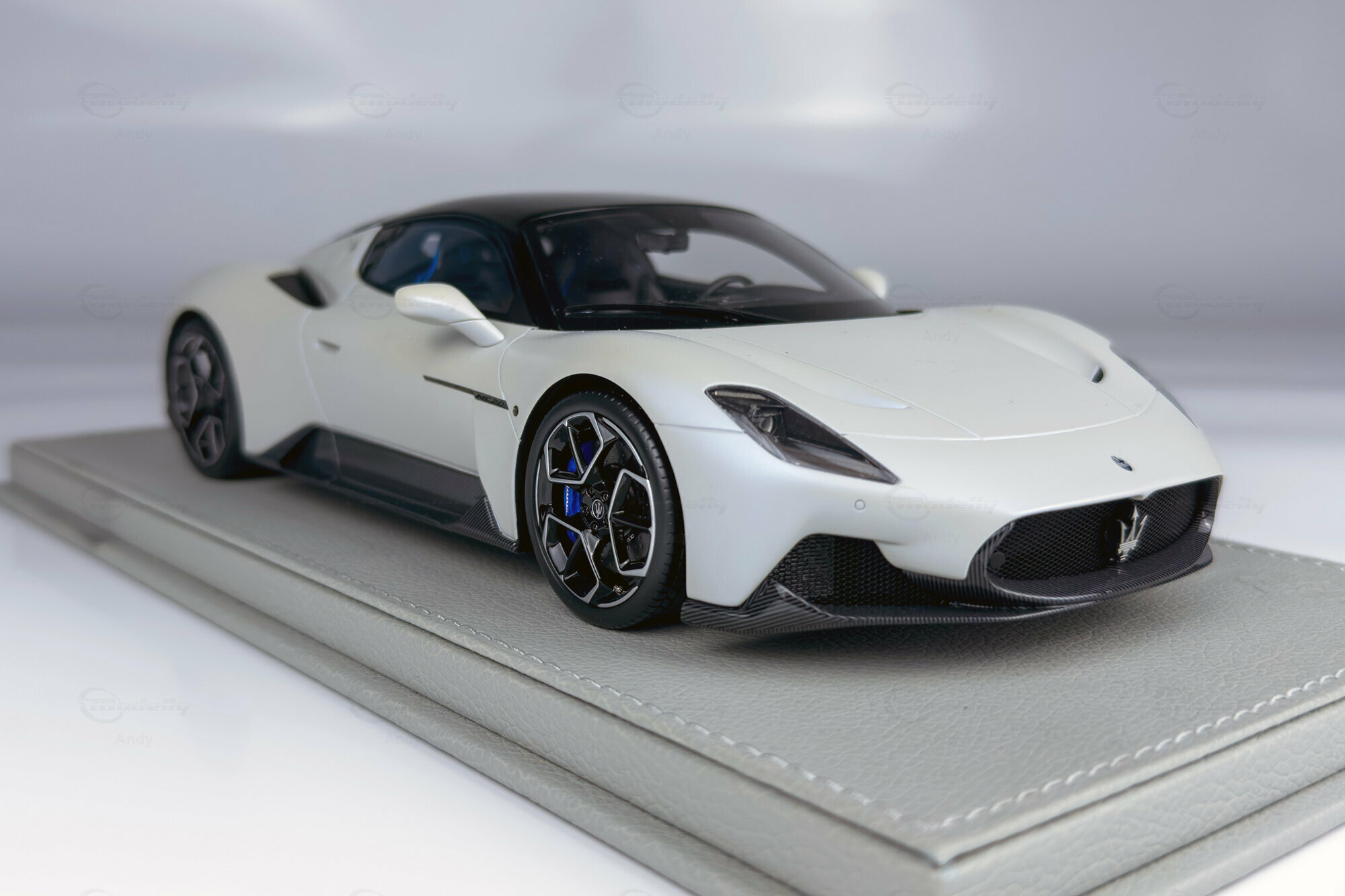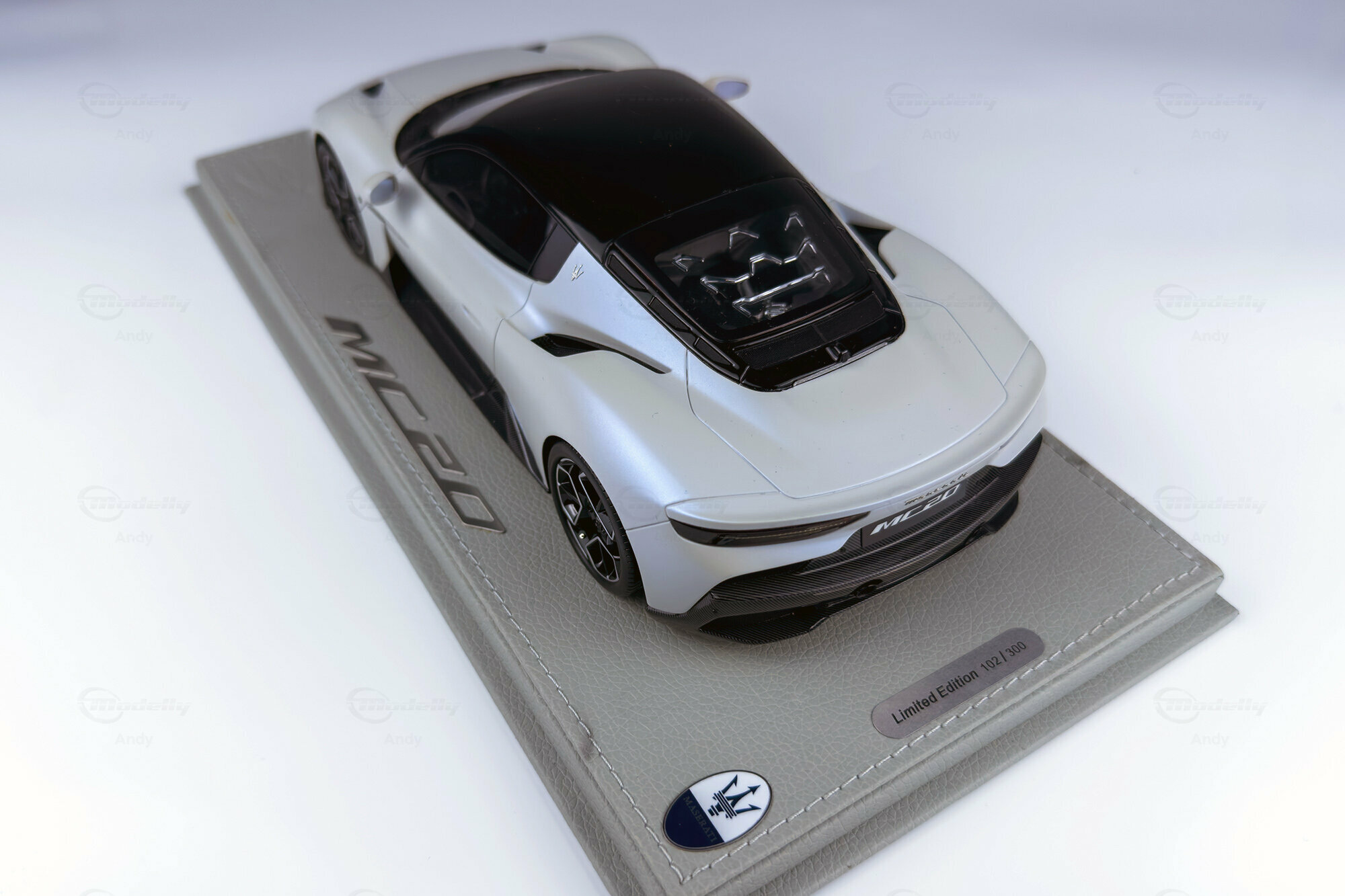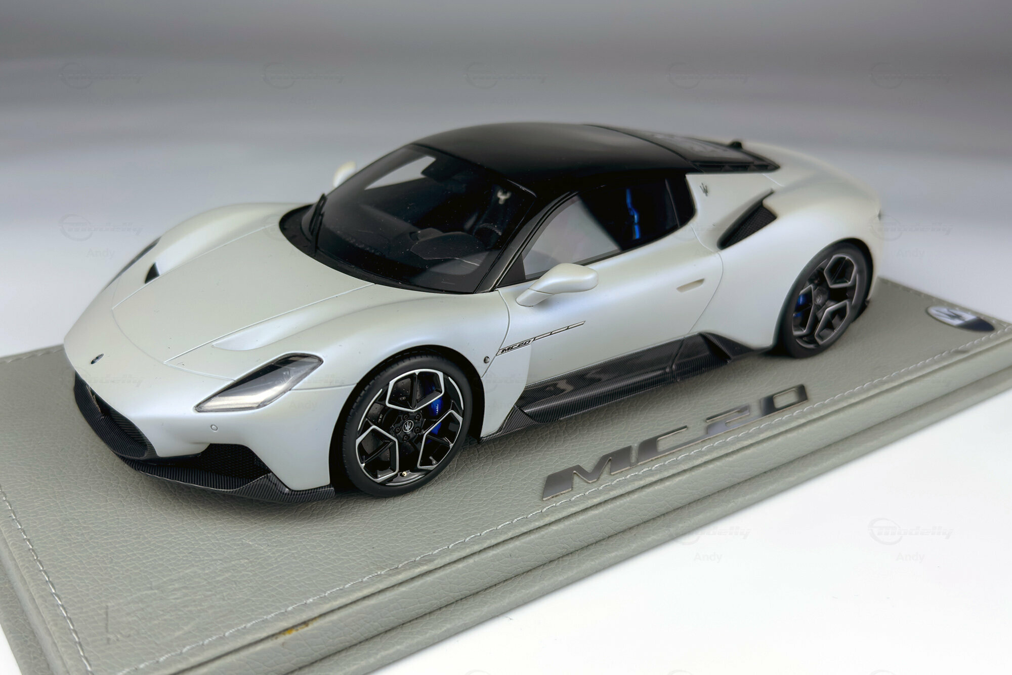 Diese auf 300 Stück weltweit limitierte Edition, die von BBR Models gefertigt wurde, bietet eine detailreiche Replik des Maserati MC20. Die Miniatur im Maßstab 1:18 besteht aus hochwertigem Resin und begeistert Sammler durch ihre präzise Nachbildung. Das Modell zeigt die markanten Linien und die kraftvolle Präsenz des Originals. Die realistische Darstellung des Interieurs und der Karosserie sorgen dafür, dass dieses Modell eine Bereicherung für jede Sammlung darstellt. Das Fahrzeug von Modelly-Mitglied "Andy" ist in einem eleganten Weiß sowie mit einem schwarzen Dach und Carbon-Details lackiert, die die sportliche Ästhetik des Fahrzeugs unterstreichen.