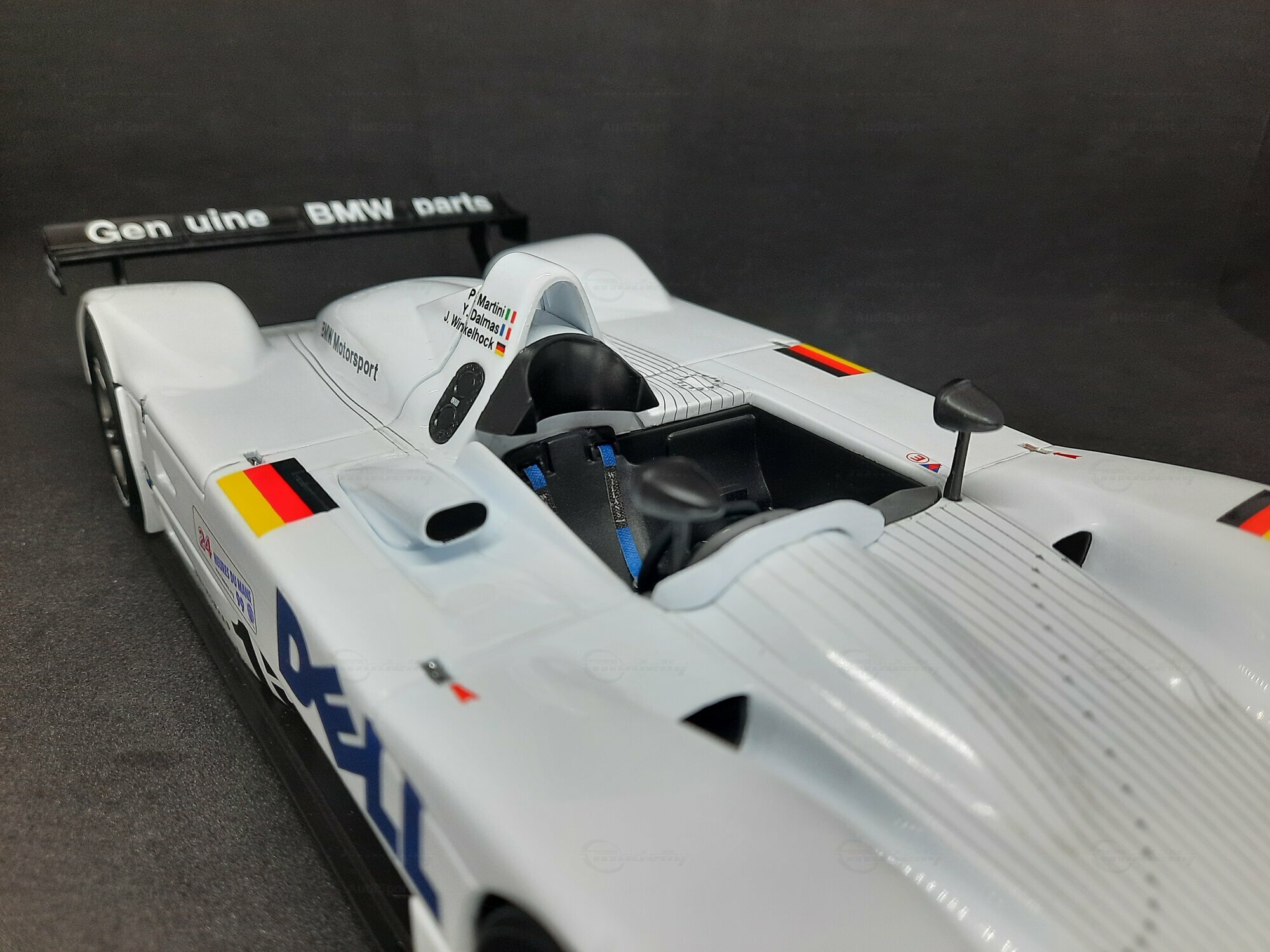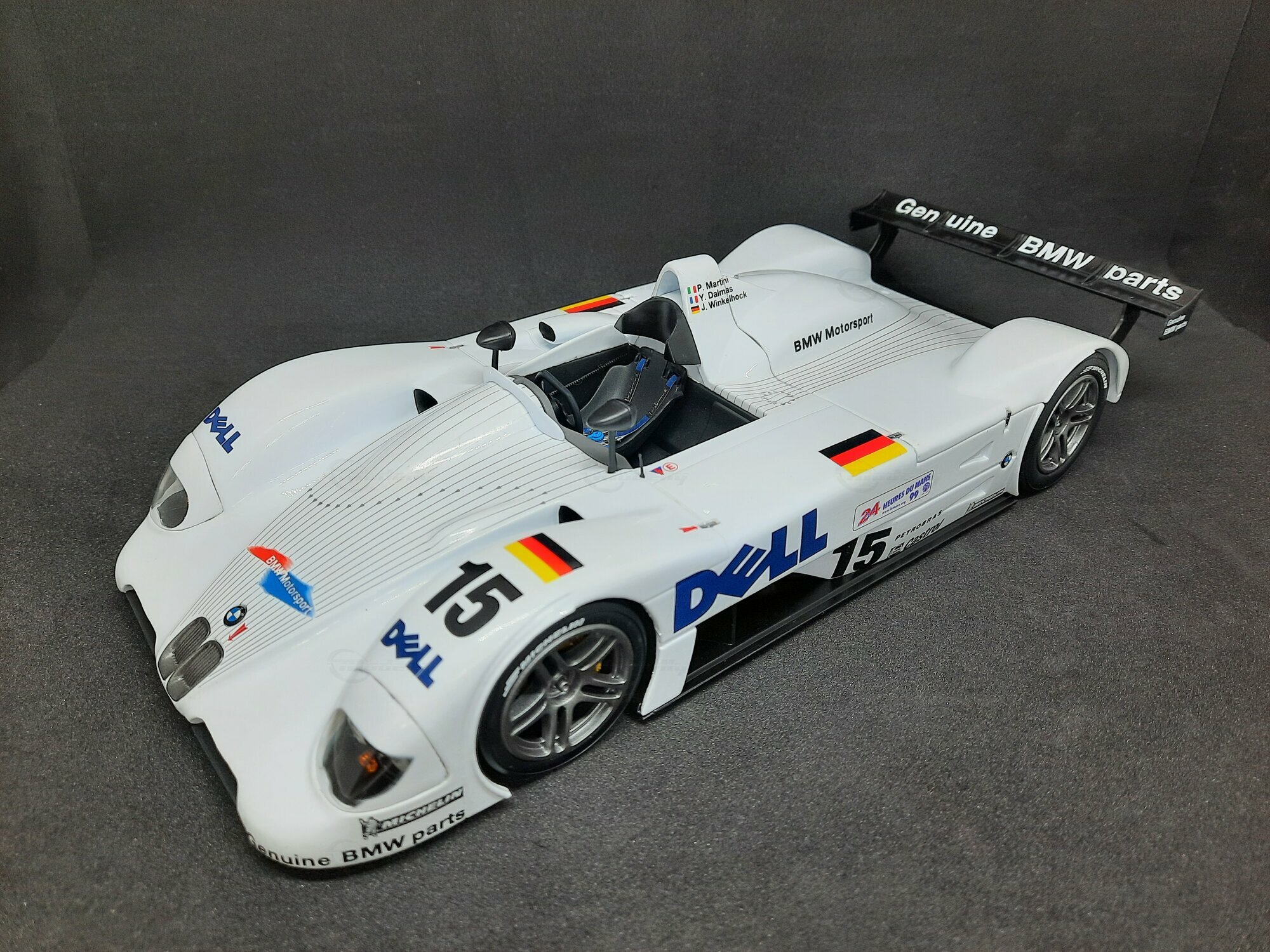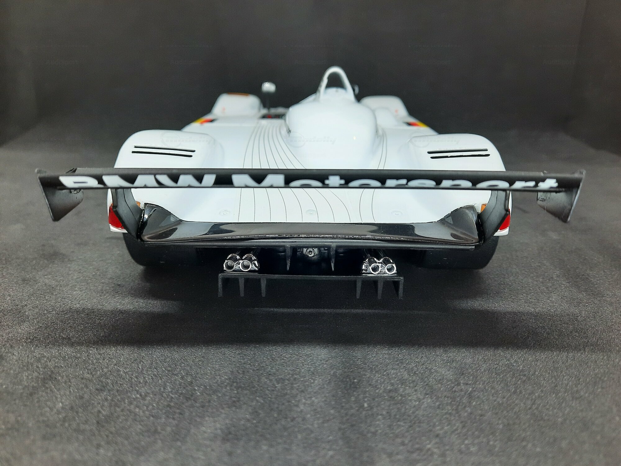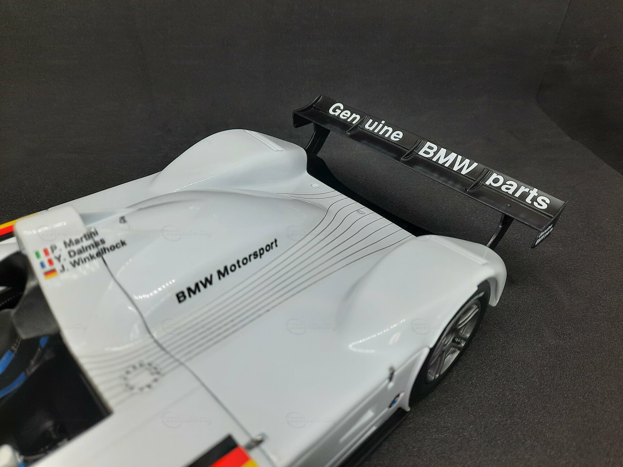 Ein Blick auf die Fotos zeigt die Liebe zum Detail, die in diese 1:18 Miniatur geflossen ist. Die Frontpartie des Fahrzeugs trägt das Nummernschild 15, genau wie das originale Rennfahrzeug. Die Sponsorenlogos von BMW, Dell und Michelin sind präzise aufgetragen und verleihen dem Modell eine authentische Optik. Die filigranen Felgen und Reifen sind exakte Nachbildungen der originalen Rennbereifung. Selbst die Rückspiegel und die Heckpartie sind originalgetreu und sorgen für ein realistisches Erscheinungsbild. Es ist ein Modell, das in keiner Sammlung fehlen sollte und eine wahre Bereicherung für jeden Liebhaber von Motorsport-Miniaturen darstellt.