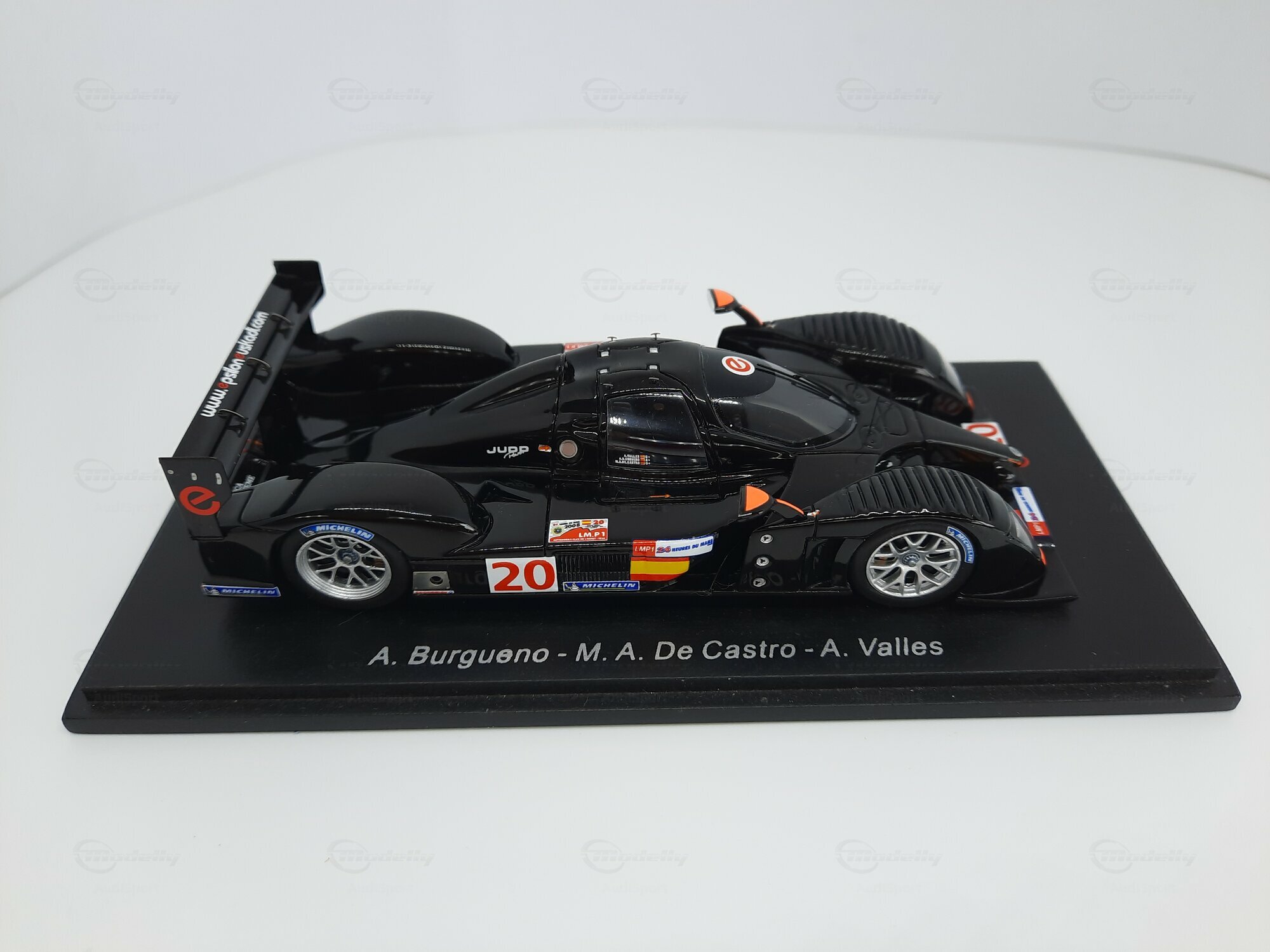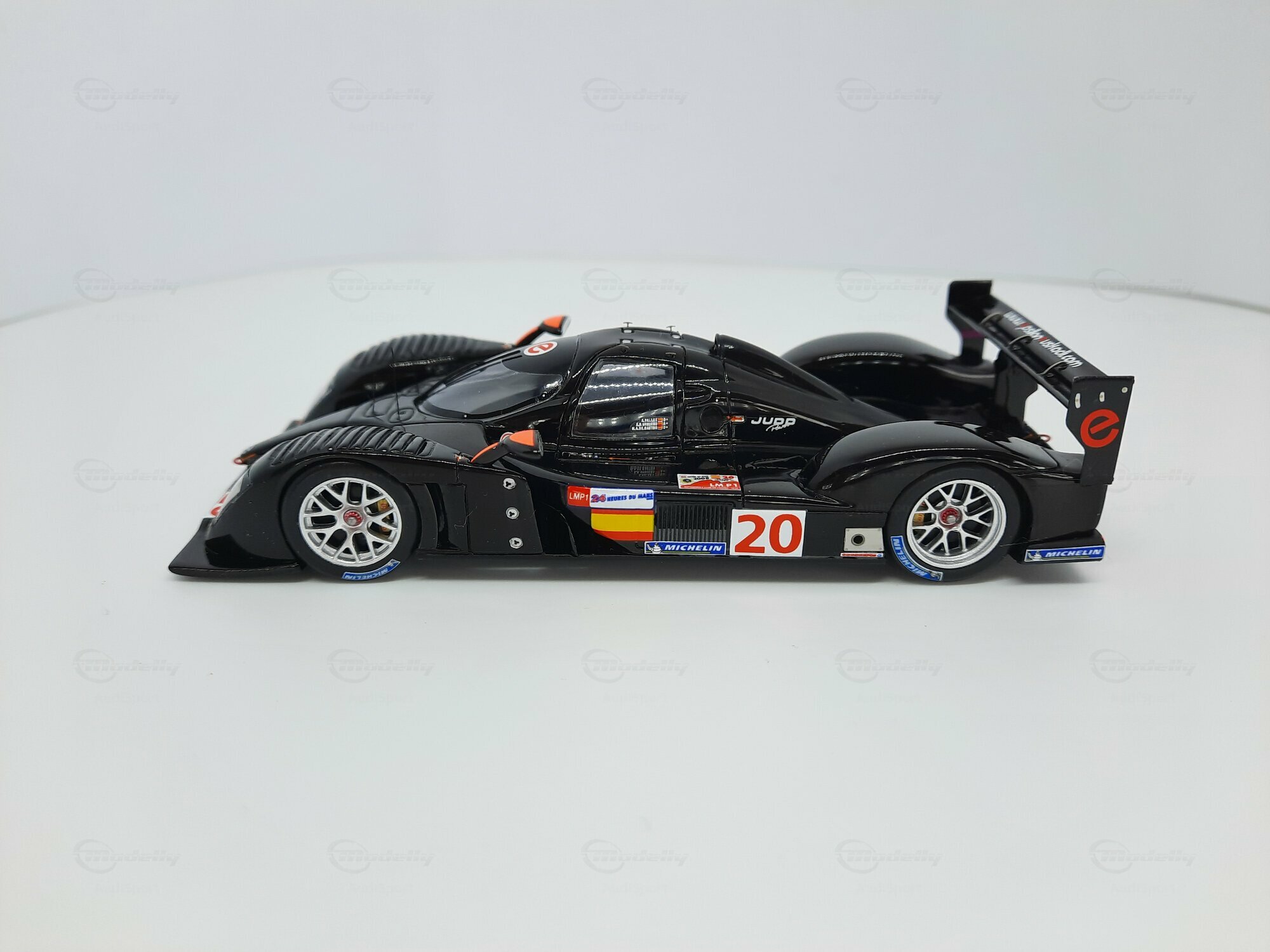 Die 1:43 Miniatur von SPARK stellt den Epsilon Euskadi EE1 detailgetreu nach. Sie ist Teil der Sammlung des Modelly-Mitglieds "AudiSport". Dieses Modellauto aus Resin zeichnet sich durch seine hohe Detailtreue aus. Besonders hervorzuheben sind die präzise nachgebildeten Scheinwerfer und die markante Lackierung. Das Modell, welches in 1:43 gefertigt ist, zeigt die schwarze Grundfarbe mit dezenten orangefarbenen Akzenten, besonders an den Spiegeln und den Lampen. Die Startnummer 20 und Sponsoren-Aufkleber wie die von Michelin und Degremont sind ebenfalls zu sehen. Es ist ein faszinierendes Stück, das speziell für Sammler hergestellt wurde, die Wert auf Detail und Authentizität legen. Hersteller der Miniatur ist SPARK.