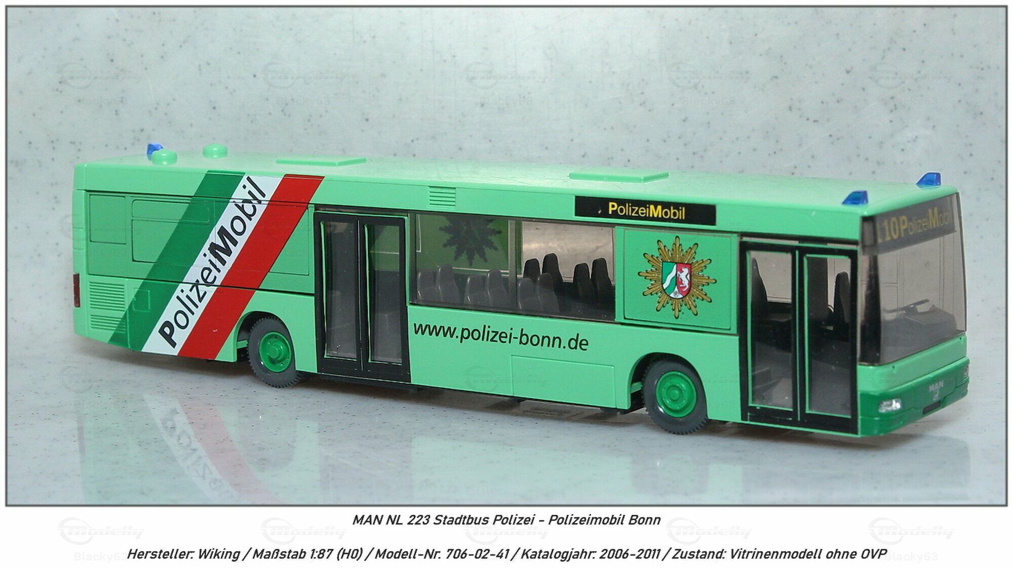 Preiser, Wiking, Vollmer MAN NL 223 Stadtbus Polizei - Polizeimobil Bonn (1:87)
