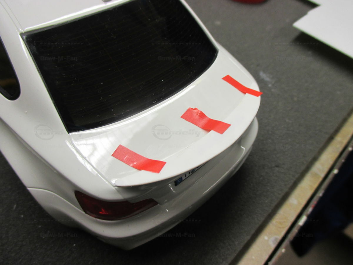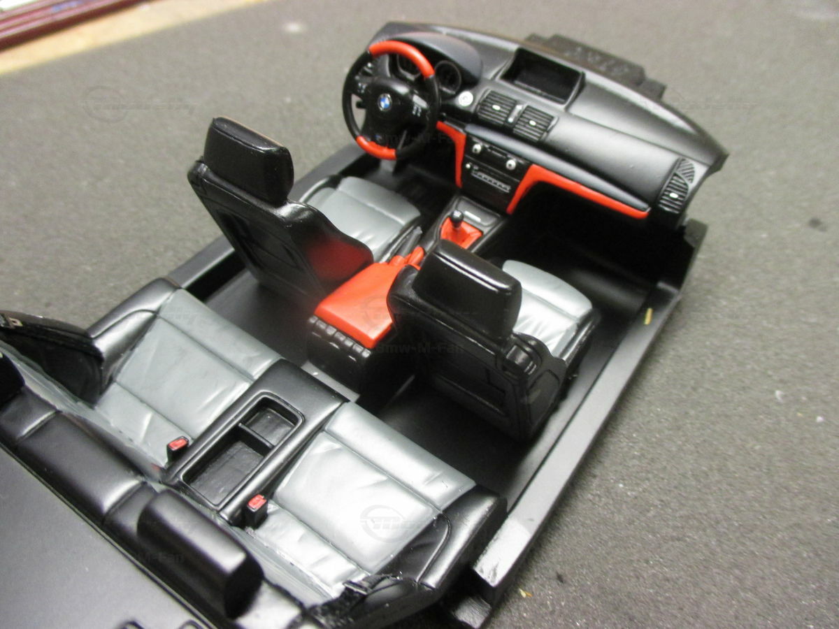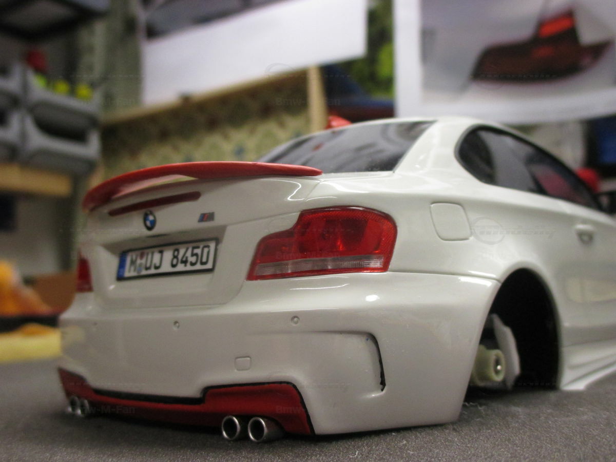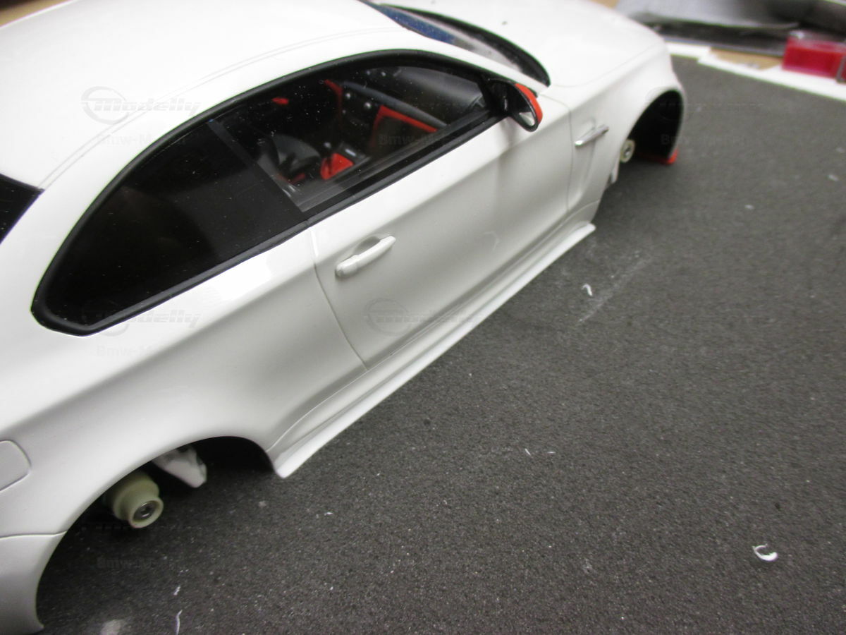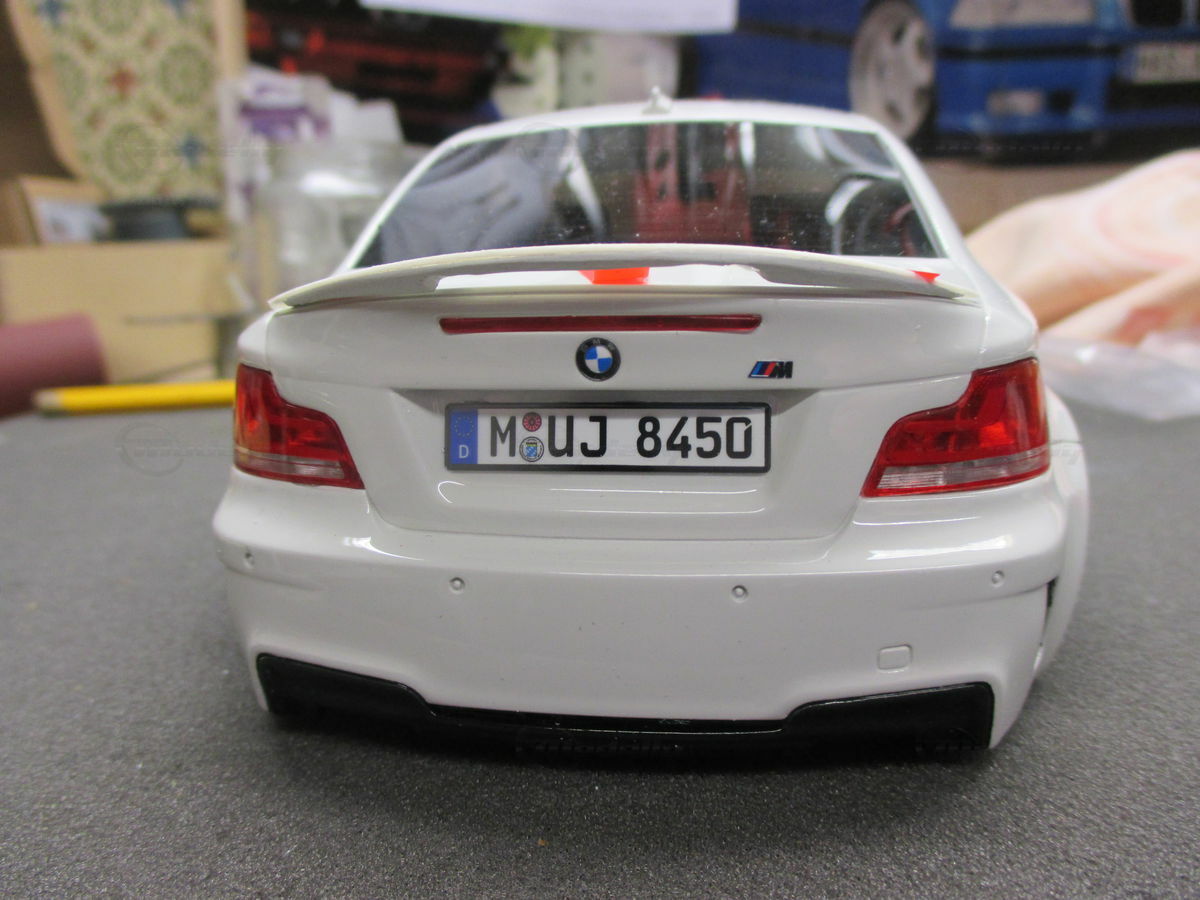 Das gezeigte Modellauto im Maßstab 1:18 ist ein Nachbau des BMW E82 1M Coupe und wurde von GT Spirit hergestellt. Es handelt sich dabei um eine stark modifizierte Version, die nicht das von GT Spirit ursprünglich produzierte Produkt repräsentiert. Dieses Modell besteht aus dem Material Resin, das für seine Detailgetreue und Langlebigkeit bekannt ist. Auffällig sind die roten Felgen und Details, die dem Modell eine besondere Note verleihen. Die aufgebrachten Decals von Marken wie Alpina, Brembo, Eibach und Falken tragen zur Authentizität und Attraktivität des Modells bei. Die auffälligen roten Akzente an den Spiegelkappen und dem Frontspoiler runden das Gesamtbild ab. Es ist klar erkennbar, dass es sich hierbei um eine liebevoll gestaltete und individualisierte Miniatur im Besitz von Modelly-Mitglied "Bmw-M-Fan" handelt.