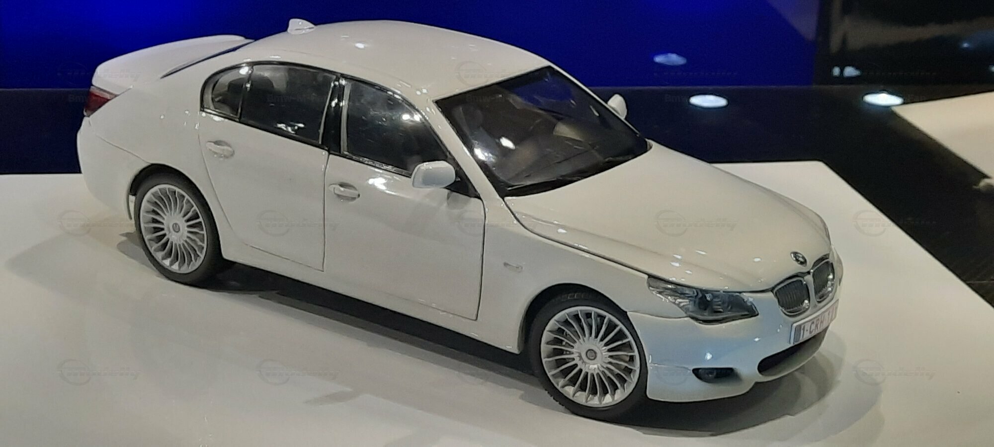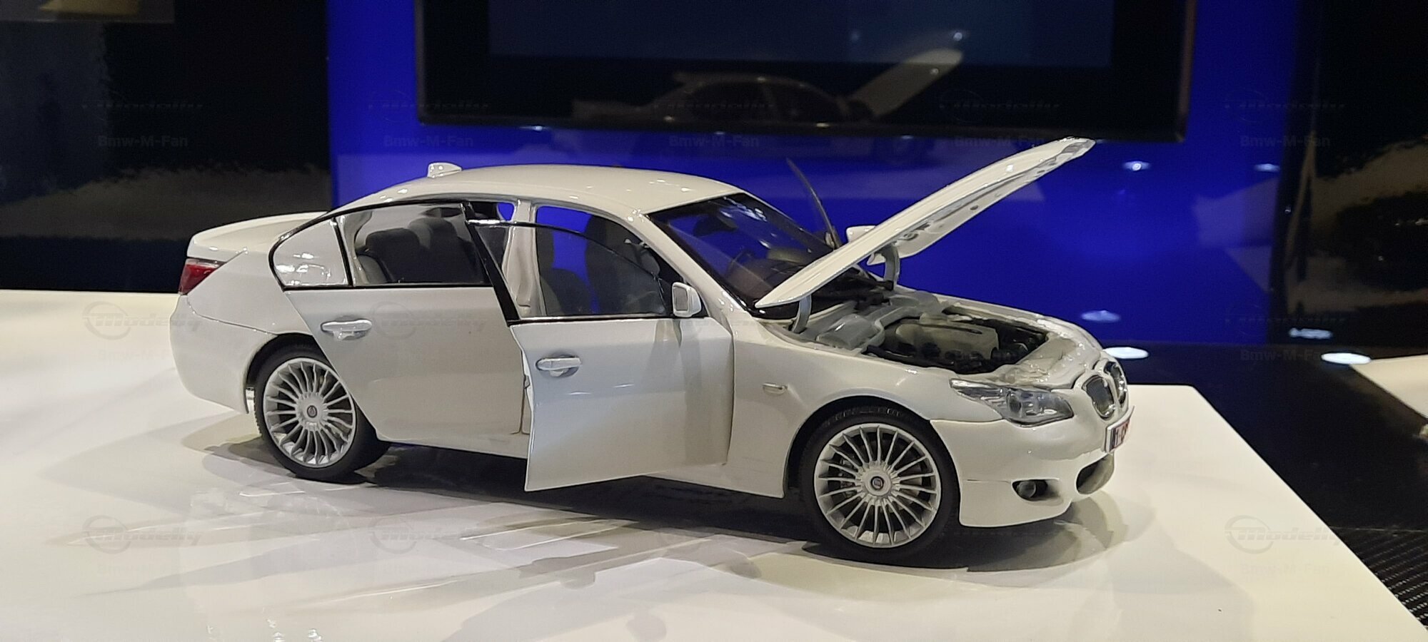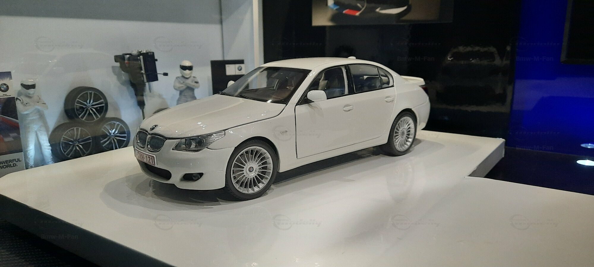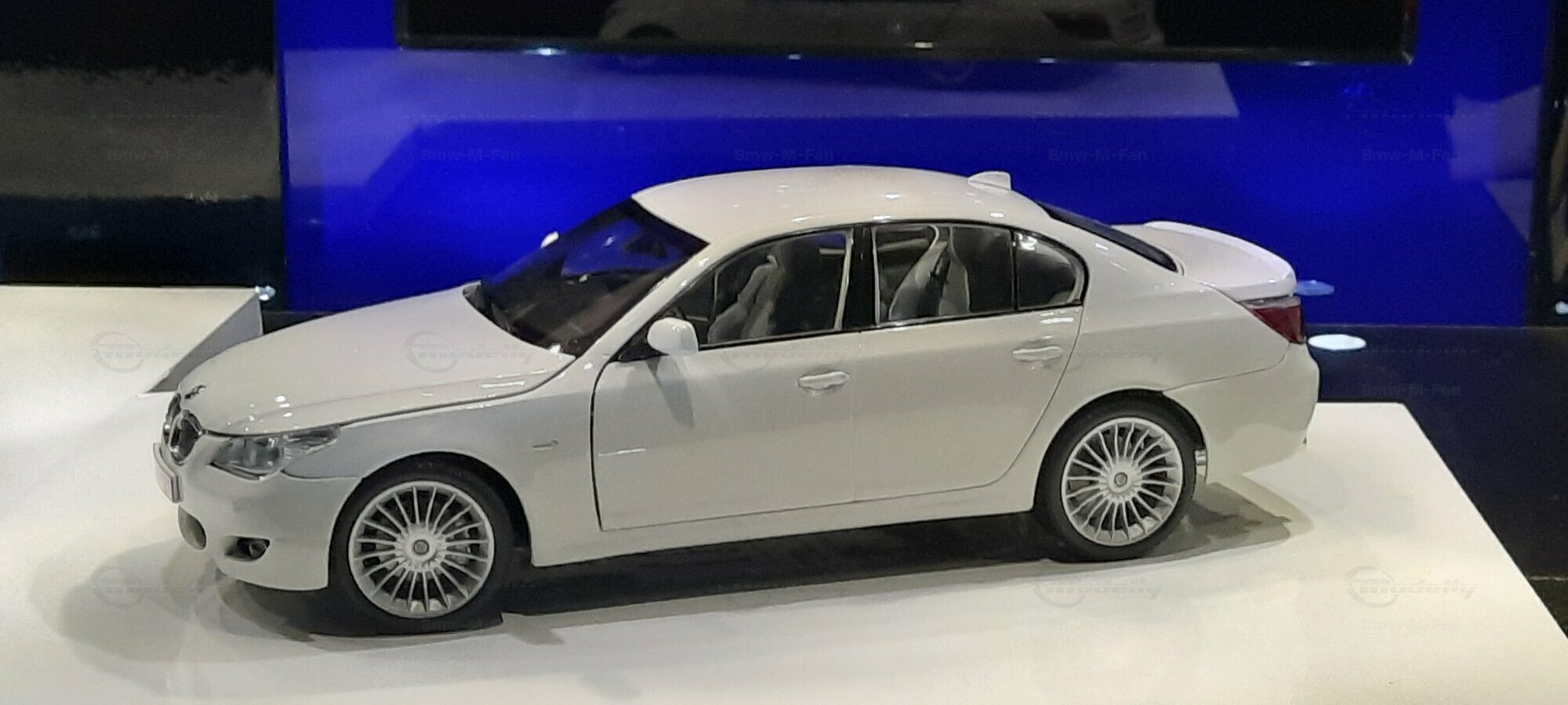 Das hier gezeigte Modellauto im 1:18 Maßstab wurde von Kyosho BMW Dealer Edition gefertigt und basiert auf dem BMW E60 550i LCI. Dieses Modell ist ein detailreiches Sammlerstück, hergestellt aus hochwertigem Diecast-Material. Es stellt jedoch eine modifizierte Version dar und entspricht nicht dem ursprünglichen Produkt von Kyosho BMW Dealer Edition. Das Modell gehört zur Sammlung des Modelly-Mitglieds "Bmw-M-Fan". Diese Modellversion zeigt Anpassungen, die sie einzigartig machen, wie beispielsweise spezifische Felgen und eine besondere Lackierung. Aufgrund dieser Modifikationen unterscheidet es sich von der unmodifizierten Version und zeigt eine persönliche Note des Sammlers.