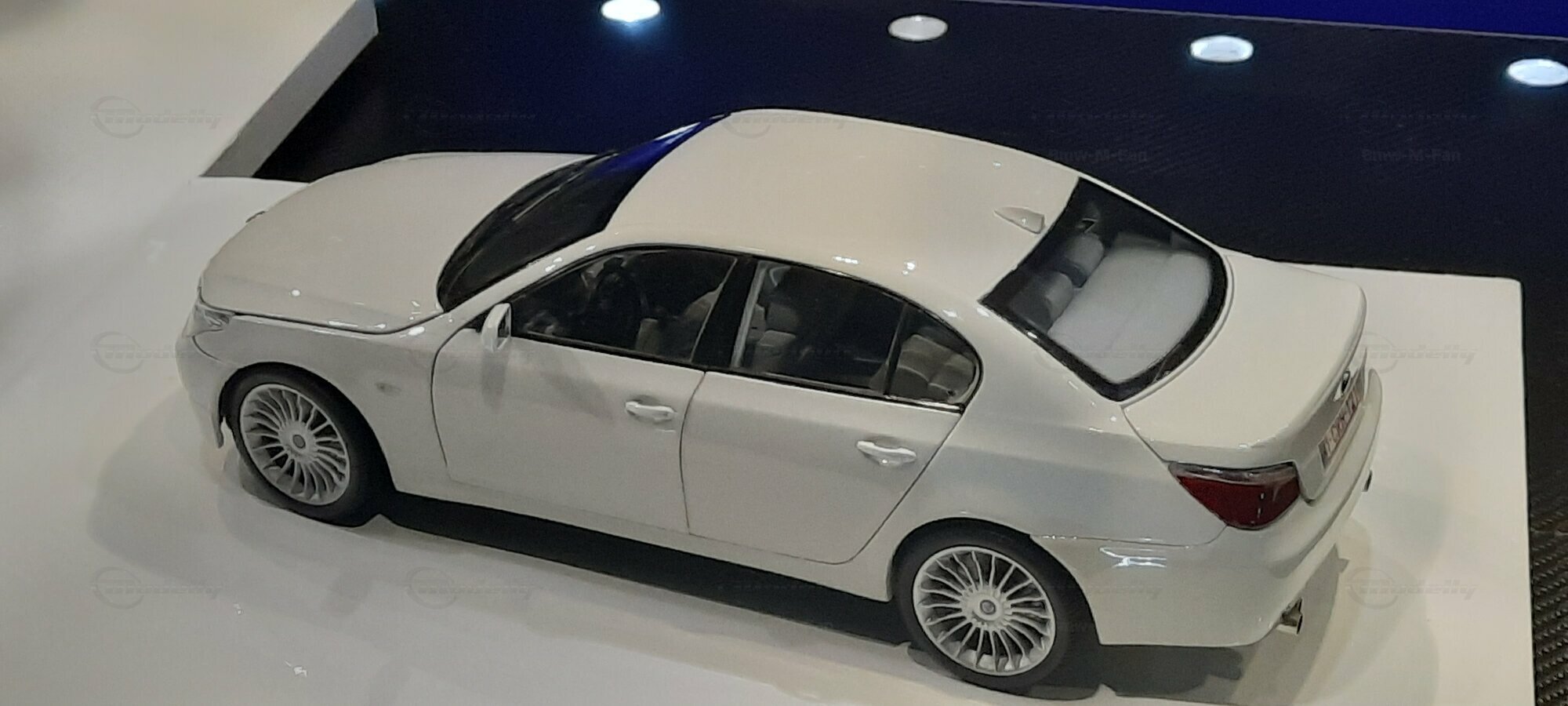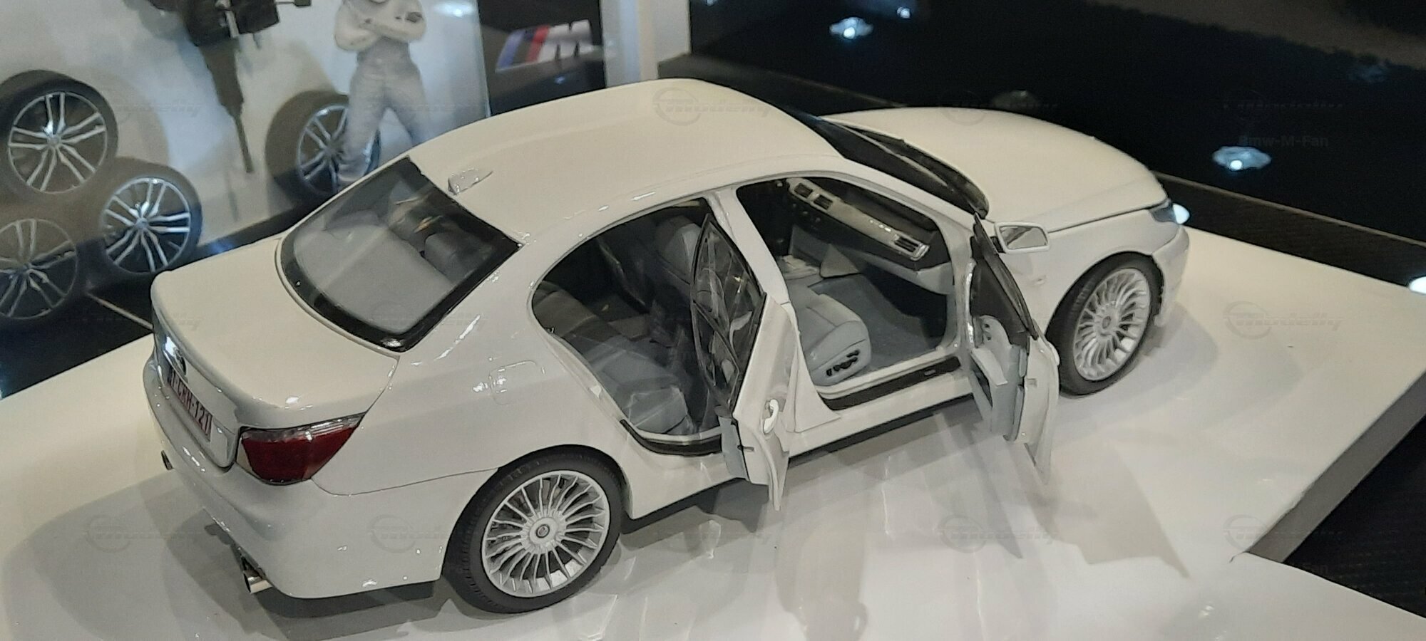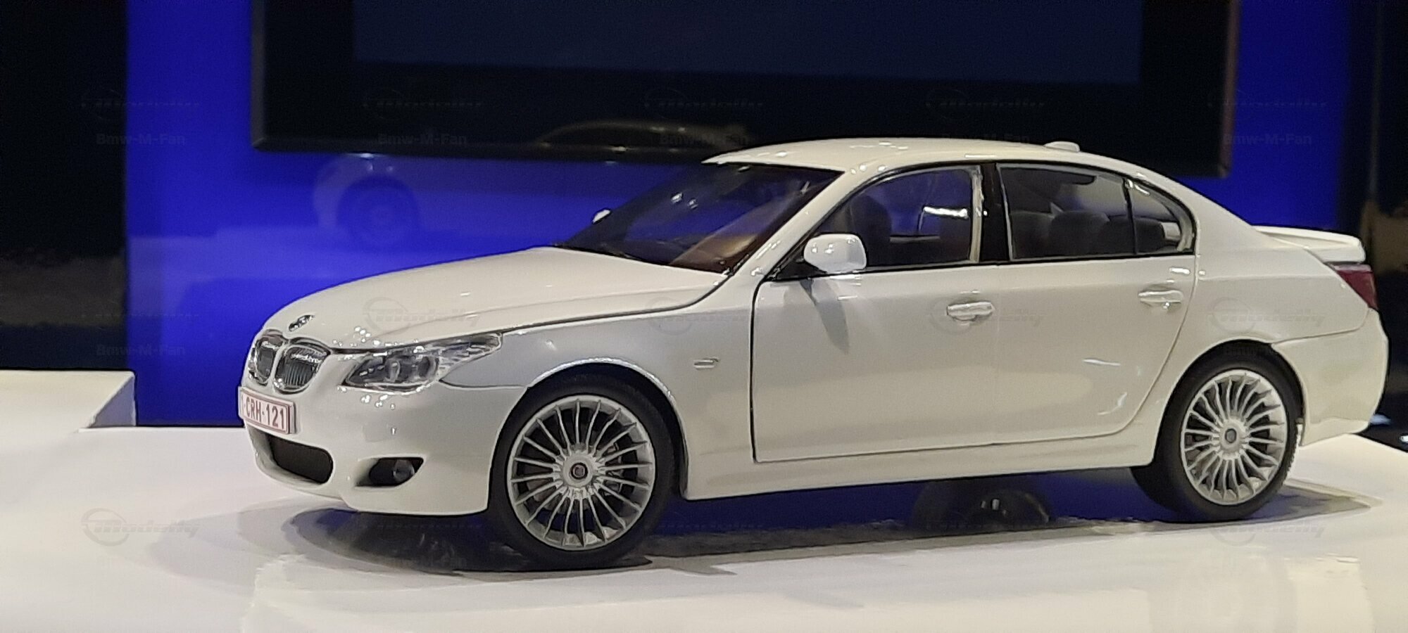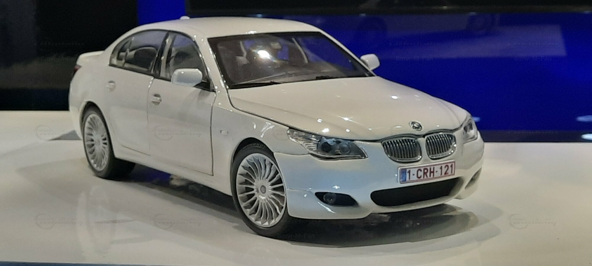 Das hier gezeigte Modellauto im 1:18 Maßstab wurde von Kyosho BMW Dealer Edition gefertigt und basiert auf dem BMW E60 550i LCI. Dieses Modell ist ein detailreiches Sammlerstück, hergestellt aus hochwertigem Diecast-Material. Es stellt jedoch eine modifizierte Version dar und entspricht nicht dem ursprünglichen Produkt von Kyosho BMW Dealer Edition. Das Modell gehört zur Sammlung des Modelly-Mitglieds "Bmw-M-Fan". Diese Modellversion zeigt Anpassungen, die sie einzigartig machen, wie beispielsweise spezifische Felgen und eine besondere Lackierung. Aufgrund dieser Modifikationen unterscheidet es sich von der unmodifizierten Version und zeigt eine persönliche Note des Sammlers.