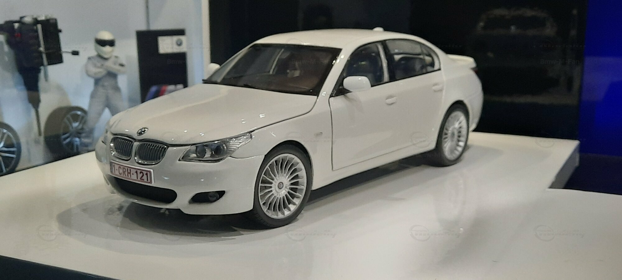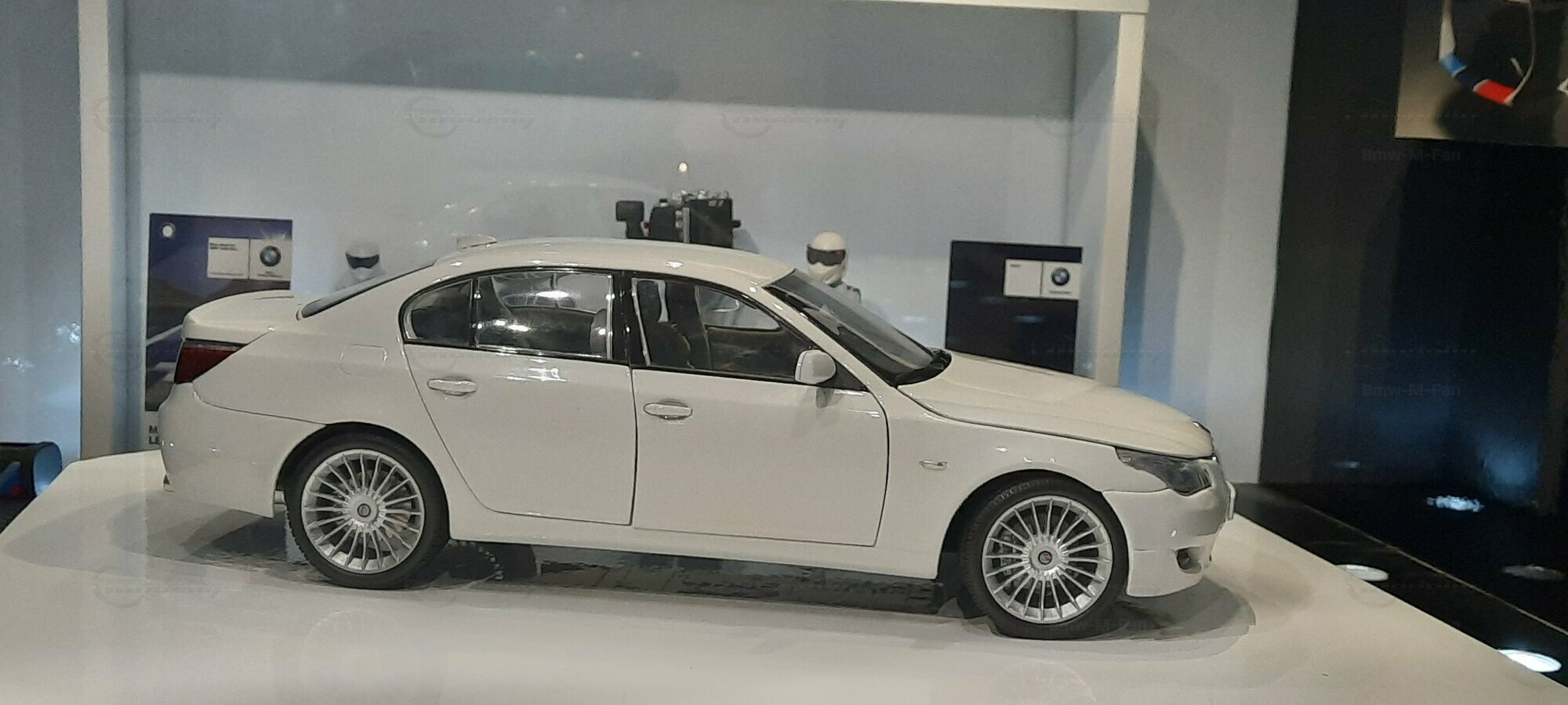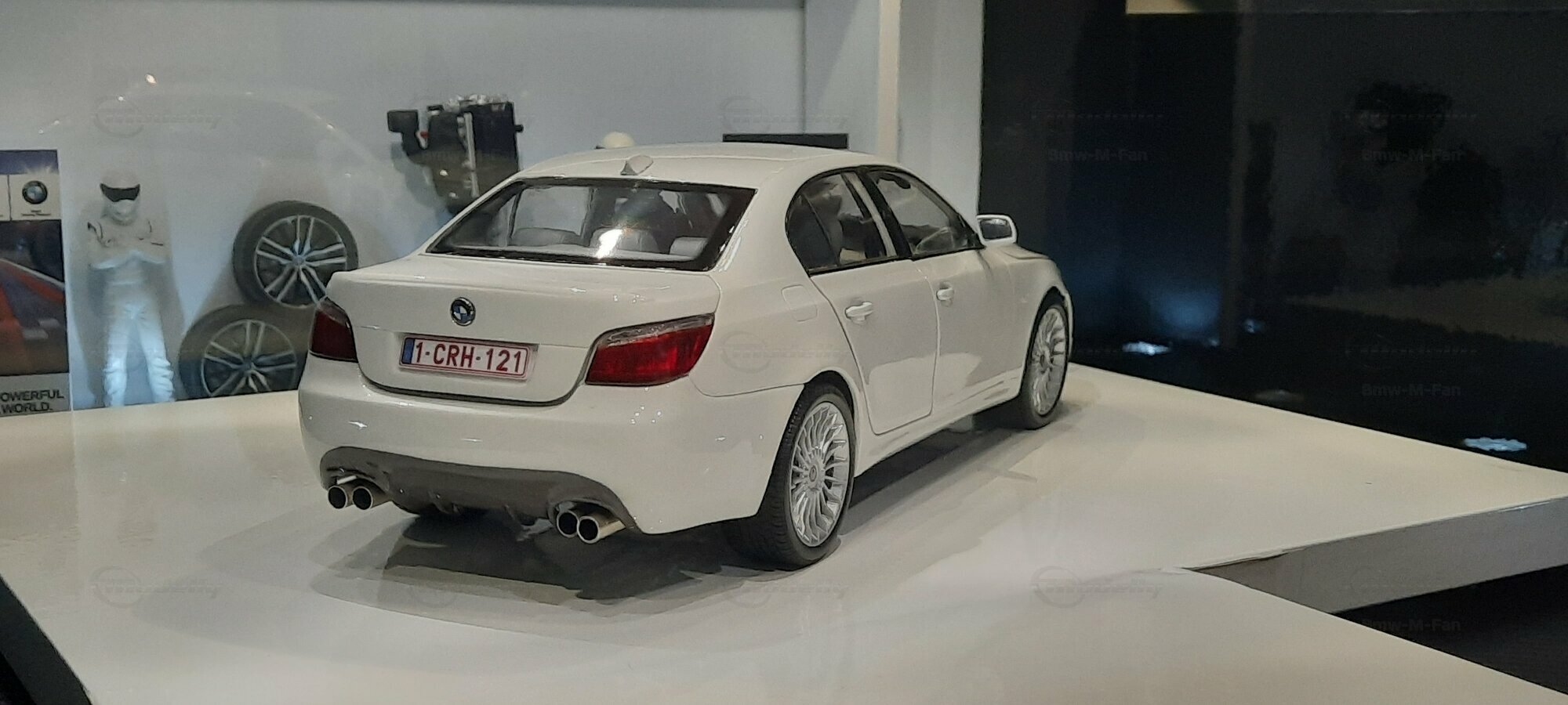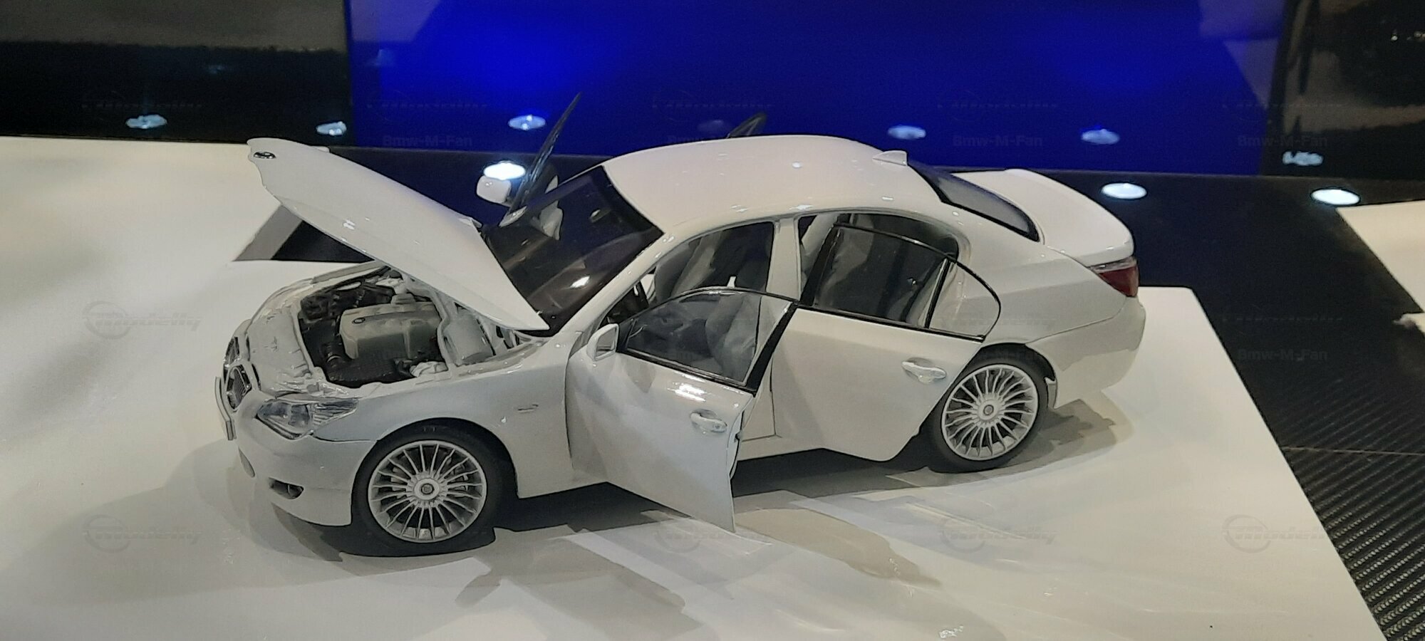 Das hier gezeigte Modellauto im 1:18 Maßstab wurde von Kyosho BMW Dealer Edition gefertigt und basiert auf dem BMW E60 550i LCI. Dieses Modell ist ein detailreiches Sammlerstück, hergestellt aus hochwertigem Diecast-Material. Es stellt jedoch eine modifizierte Version dar und entspricht nicht dem ursprünglichen Produkt von Kyosho BMW Dealer Edition. Das Modell gehört zur Sammlung des Modelly-Mitglieds "Bmw-M-Fan". Diese Modellversion zeigt Anpassungen, die sie einzigartig machen, wie beispielsweise spezifische Felgen und eine besondere Lackierung. Aufgrund dieser Modifikationen unterscheidet es sich von der unmodifizierten Version und zeigt eine persönliche Note des Sammlers.