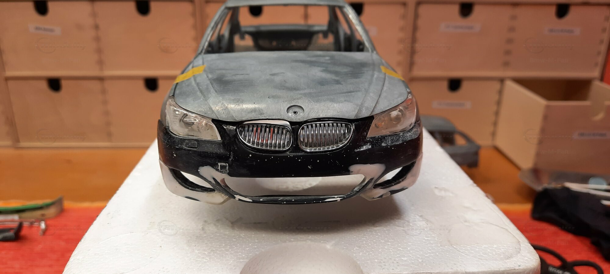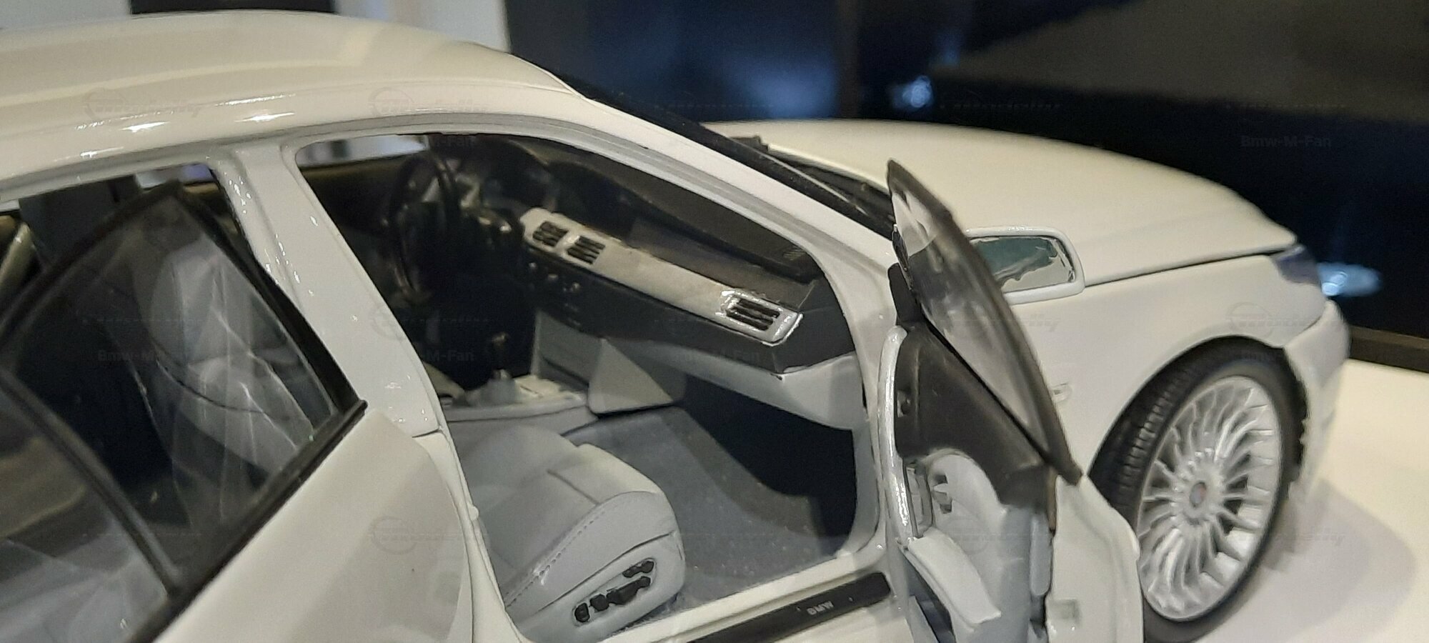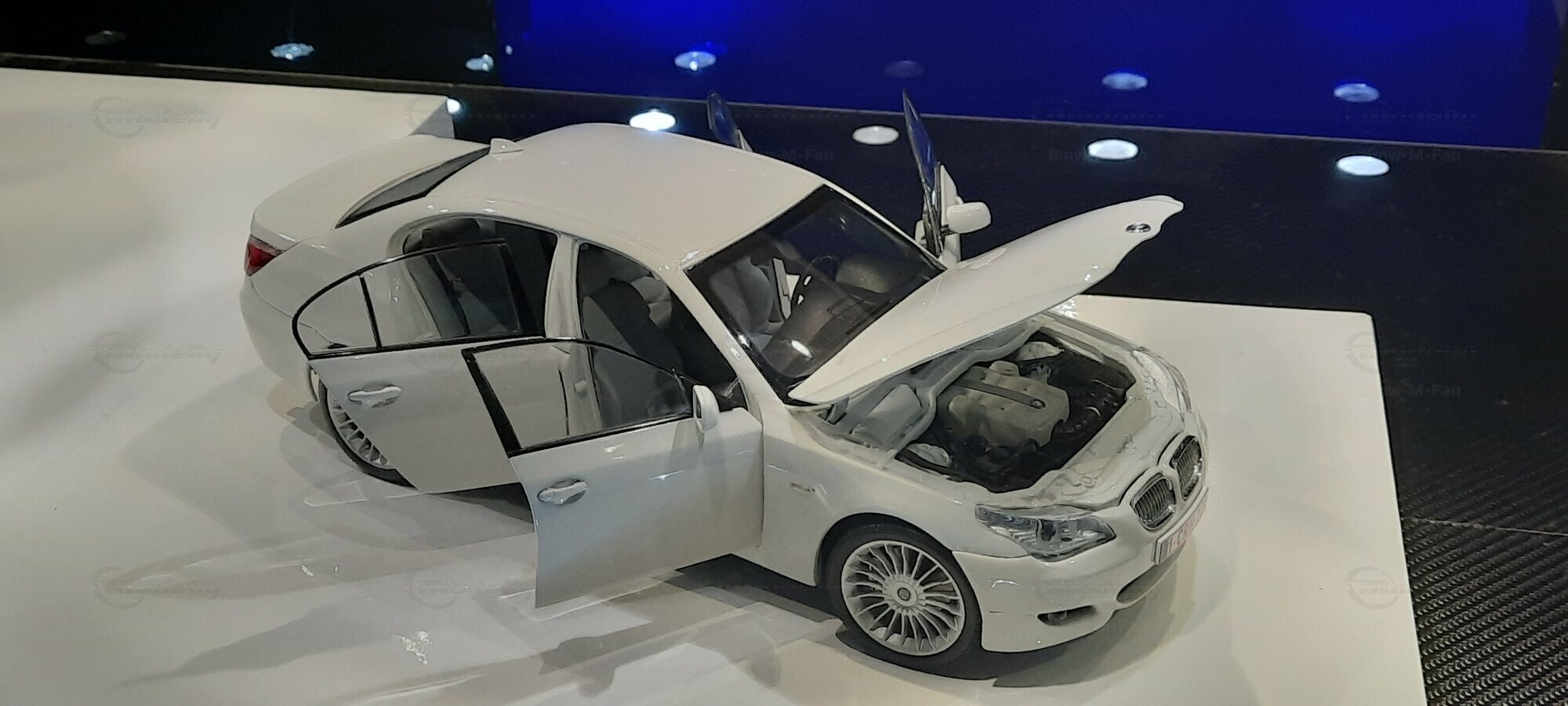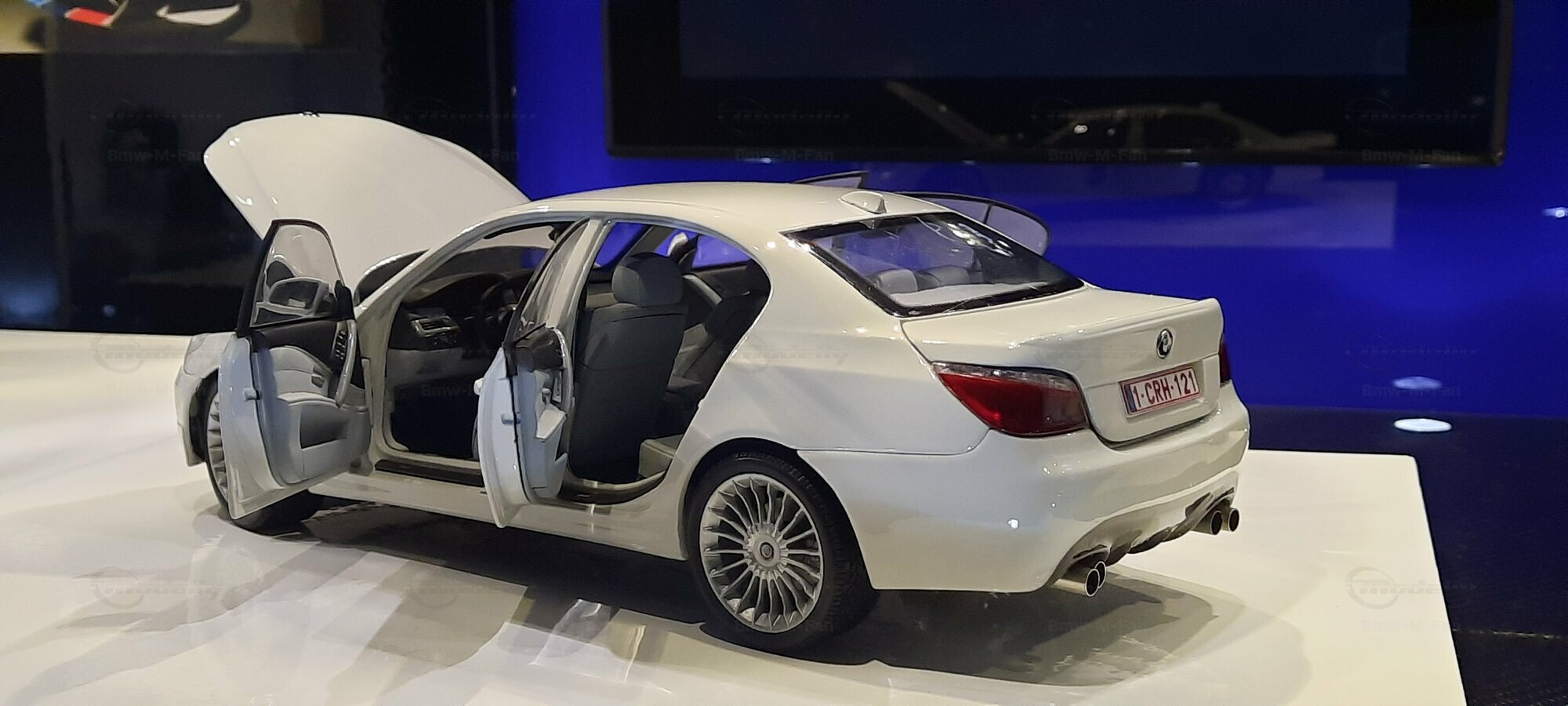 Das hier gezeigte Modellauto im 1:18 Maßstab wurde von Kyosho BMW Dealer Edition gefertigt und basiert auf dem BMW E60 550i LCI. Dieses Modell ist ein detailreiches Sammlerstück, hergestellt aus hochwertigem Diecast-Material. Es stellt jedoch eine modifizierte Version dar und entspricht nicht dem ursprünglichen Produkt von Kyosho BMW Dealer Edition. Das Modell gehört zur Sammlung des Modelly-Mitglieds "Bmw-M-Fan". Diese Modellversion zeigt Anpassungen, die sie einzigartig machen, wie beispielsweise spezifische Felgen und eine besondere Lackierung. Aufgrund dieser Modifikationen unterscheidet es sich von der unmodifizierten Version und zeigt eine persönliche Note des Sammlers.