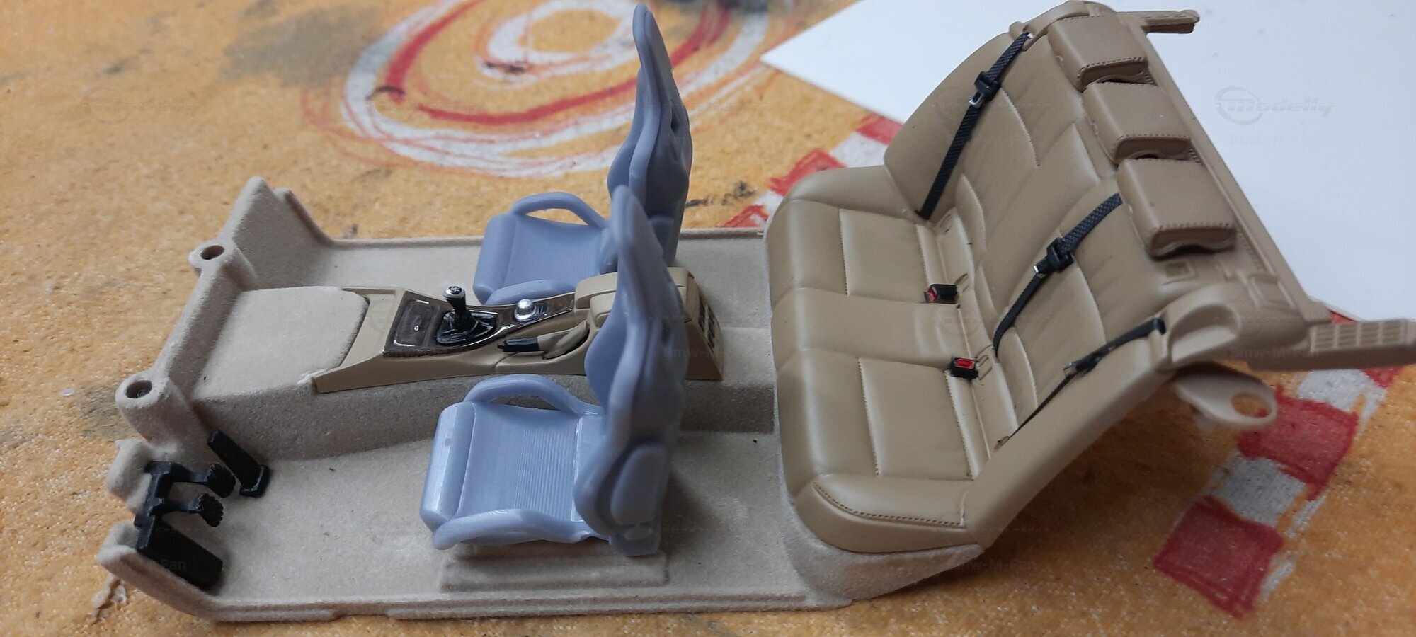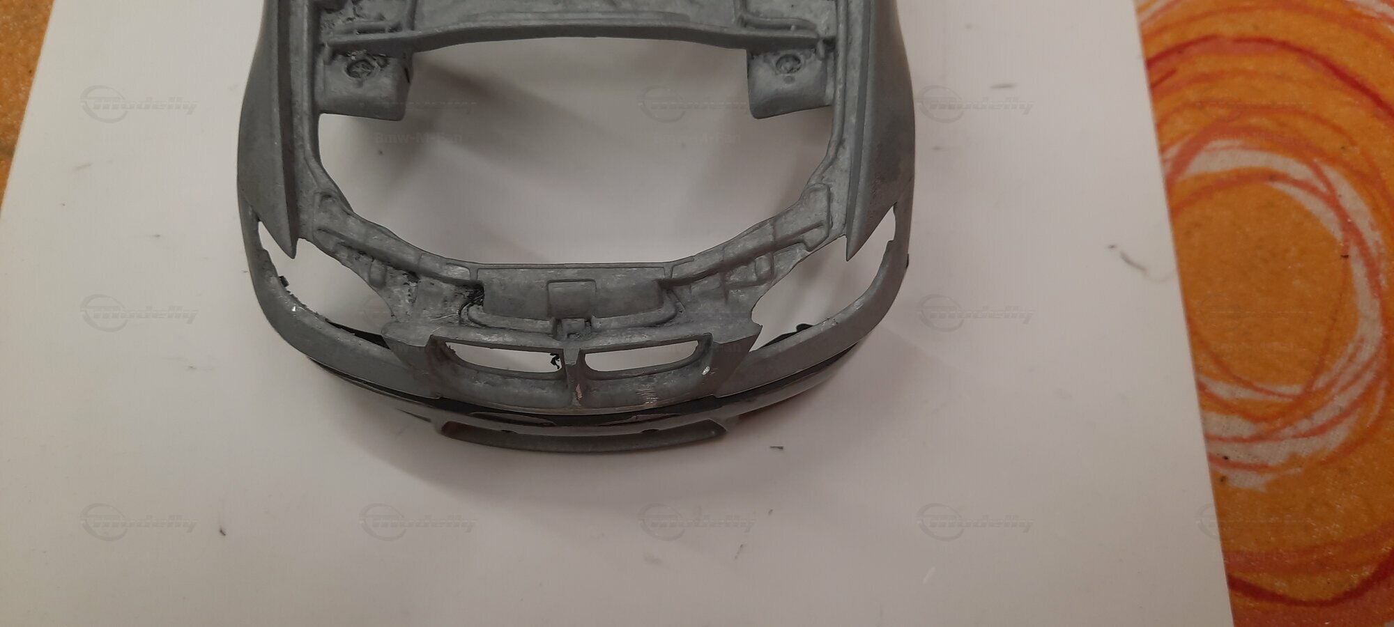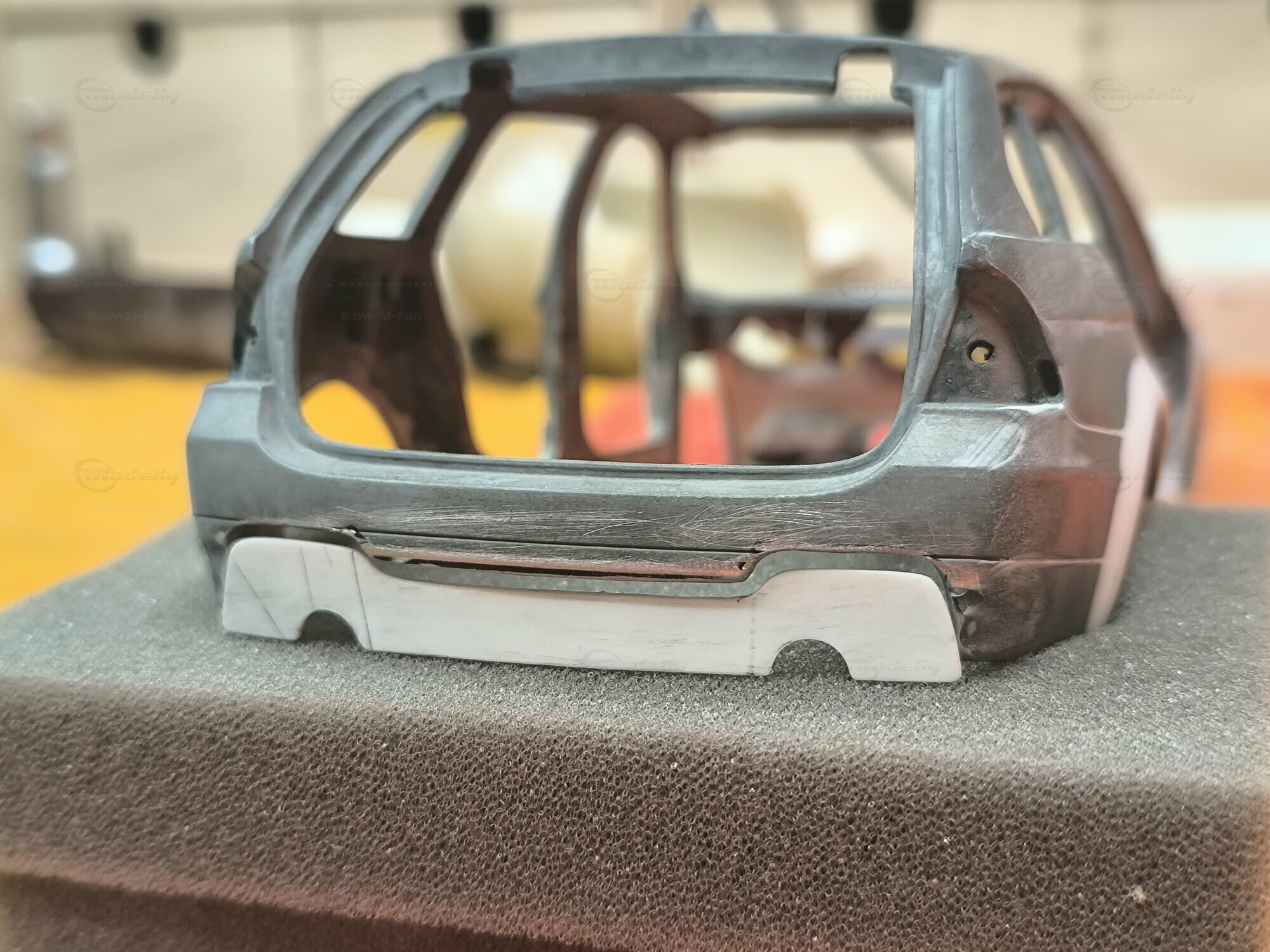 Die hier gezeigte Miniatur ist ein Modellauto im Maßstab 1:18, hergestellt von Kyosho. Es wurde aus hochwertigem Druckgussmaterial (diecast) gefertigt, was für die Detailtreue und Langlebigkeit typisch ist. Es ist wichtig zu betonen, dass das abgebildete Modell modifiziert wurde und nicht das ursprünglich von Kyosho produzierte Produkt darstellt. Das Modellauto zeigt elegante Linien, die das sportliche und doch praktische Design des Originalfahrzeugs perfekt einfangen. Hervorzuheben ist die Lackierung in einem tiefen Schwarzton, die die dynamischen Kurven des Autos betont. Details wie die Bremsen und die bekannten Nieren an der Front werden in dieser Miniatur authentisch dargestellt, was es zu einem wertvollen Stück für Sammler macht.