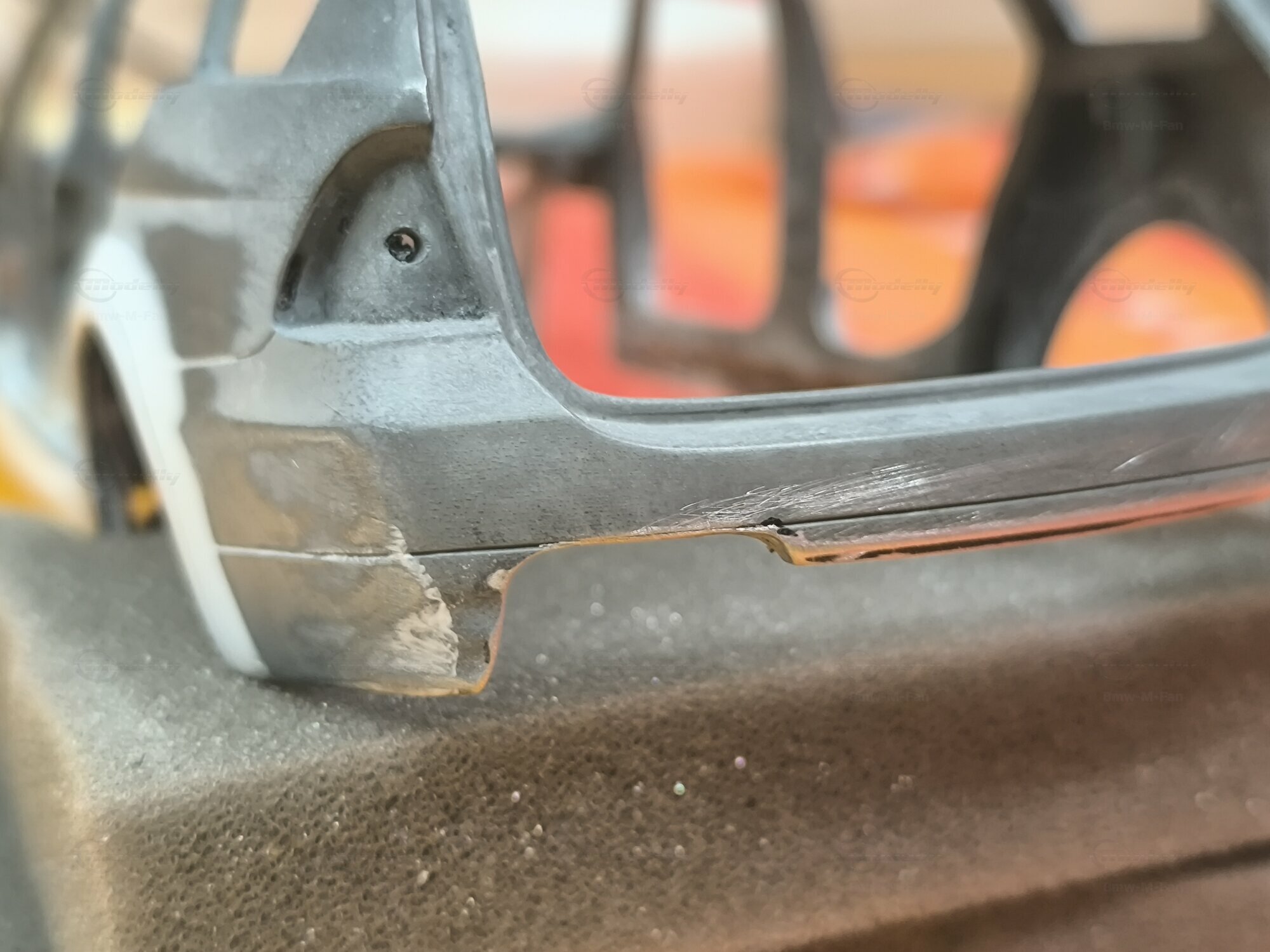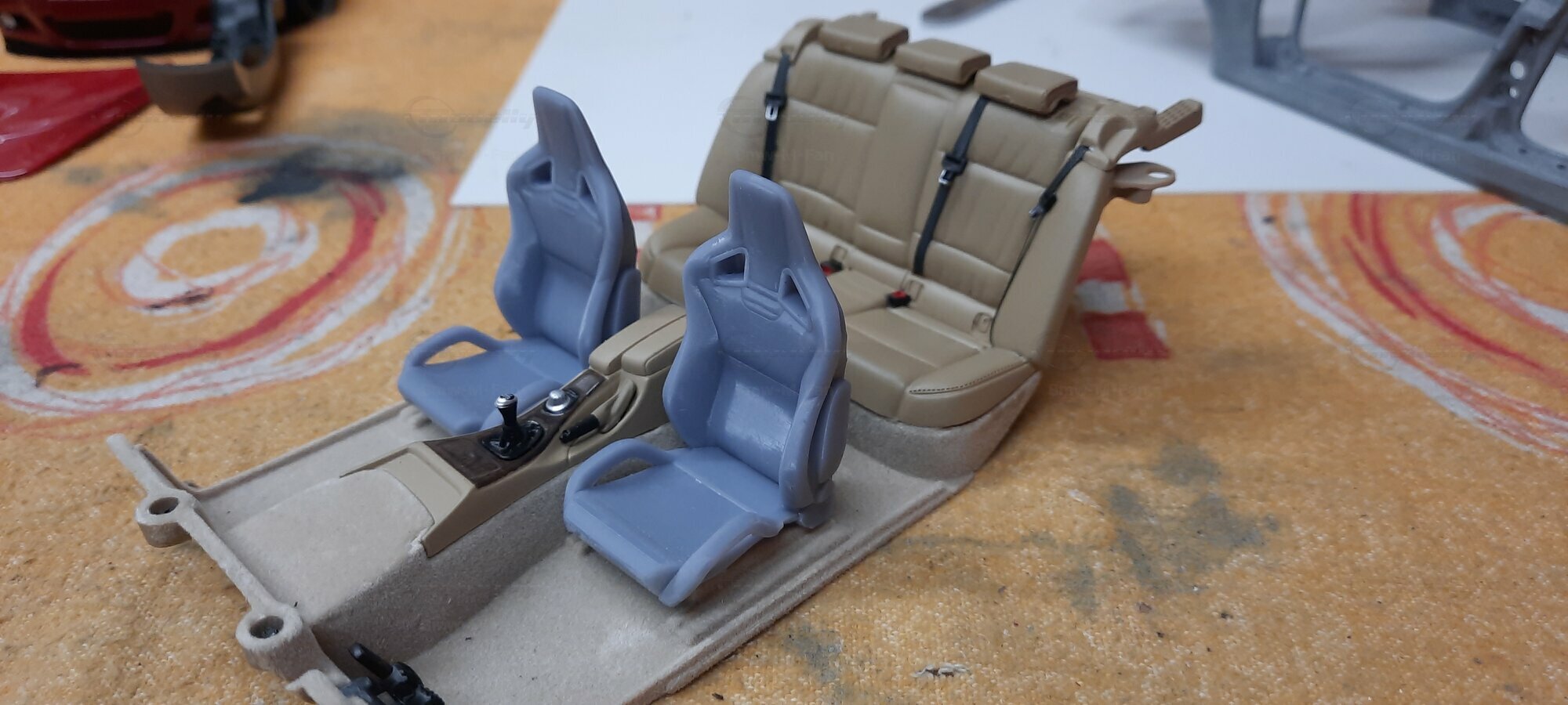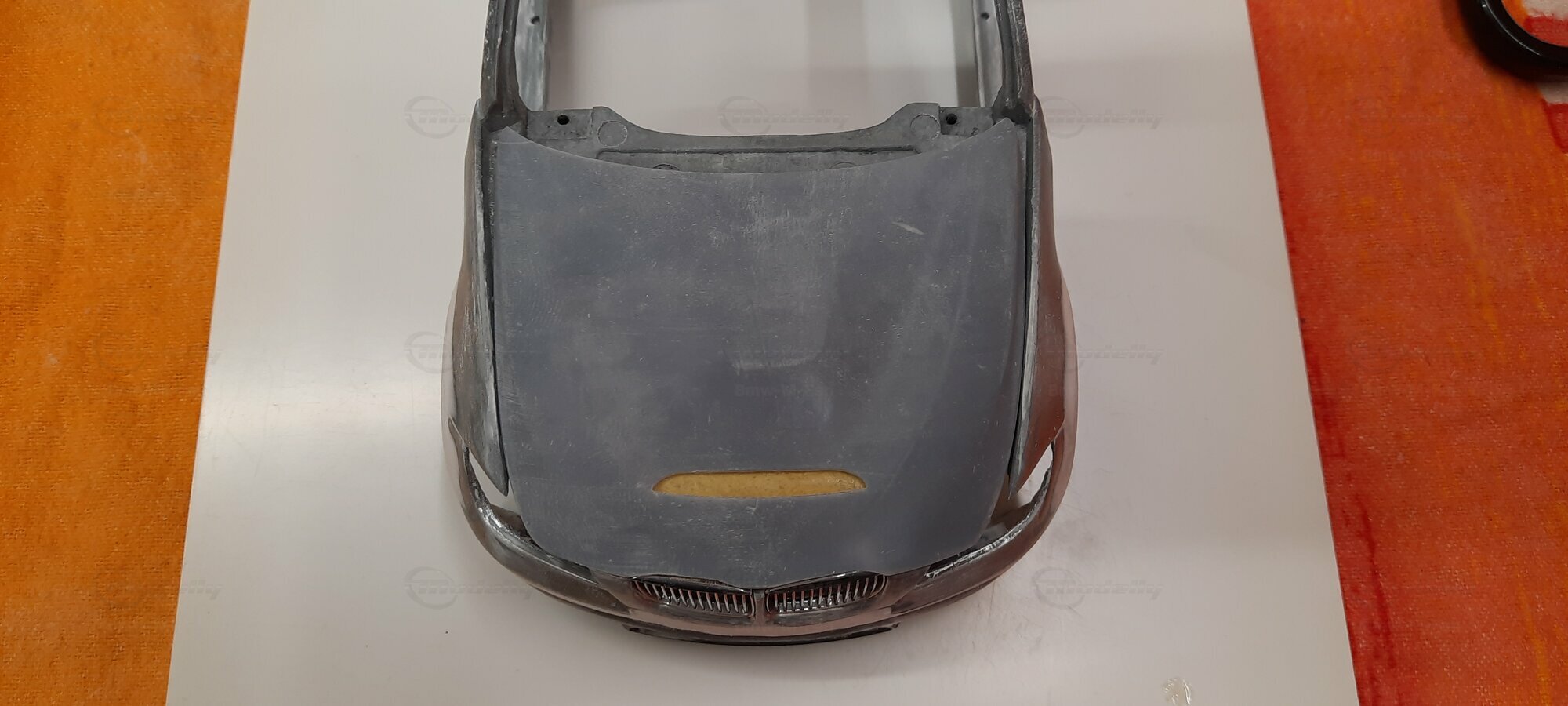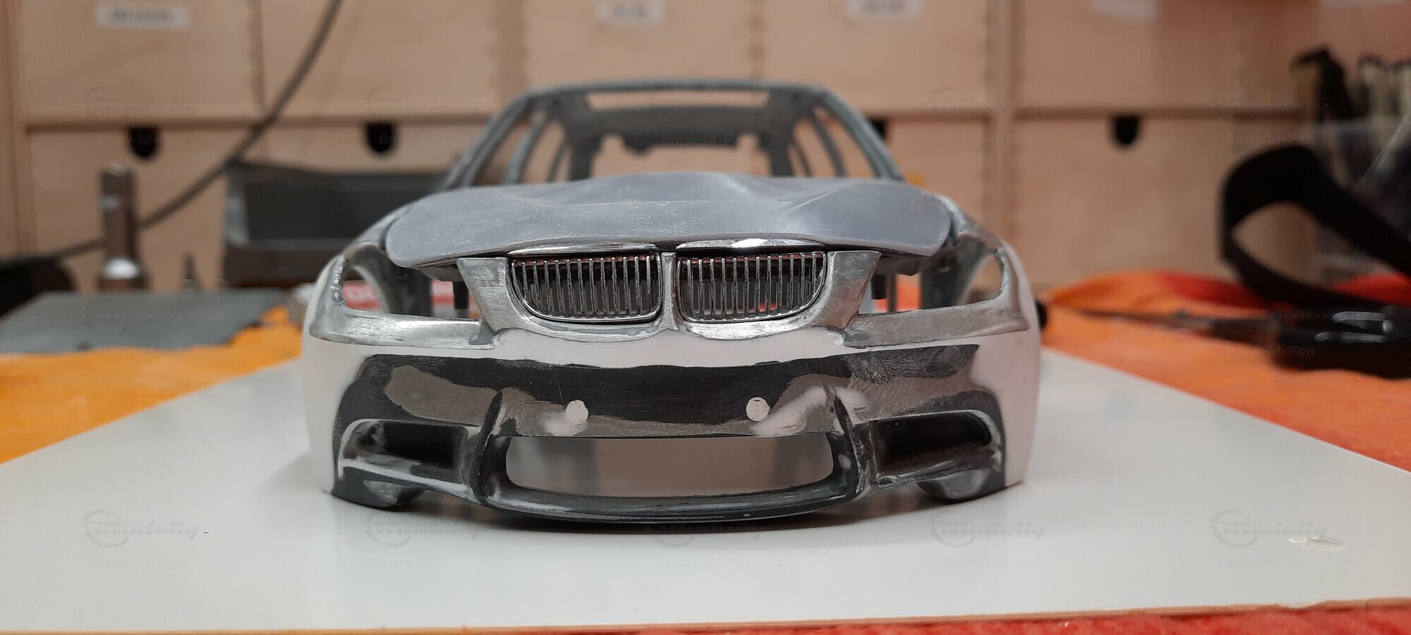 Die hier gezeigte Miniatur ist ein Modellauto im Maßstab 1:18, hergestellt von Kyosho. Es wurde aus hochwertigem Druckgussmaterial (diecast) gefertigt, was für die Detailtreue und Langlebigkeit typisch ist. Es ist wichtig zu betonen, dass das abgebildete Modell modifiziert wurde und nicht das ursprünglich von Kyosho produzierte Produkt darstellt. Das Modellauto zeigt elegante Linien, die das sportliche und doch praktische Design des Originalfahrzeugs perfekt einfangen. Hervorzuheben ist die Lackierung in einem tiefen Schwarzton, die die dynamischen Kurven des Autos betont. Details wie die Bremsen und die bekannten Nieren an der Front werden in dieser Miniatur authentisch dargestellt, was es zu einem wertvollen Stück für Sammler macht.