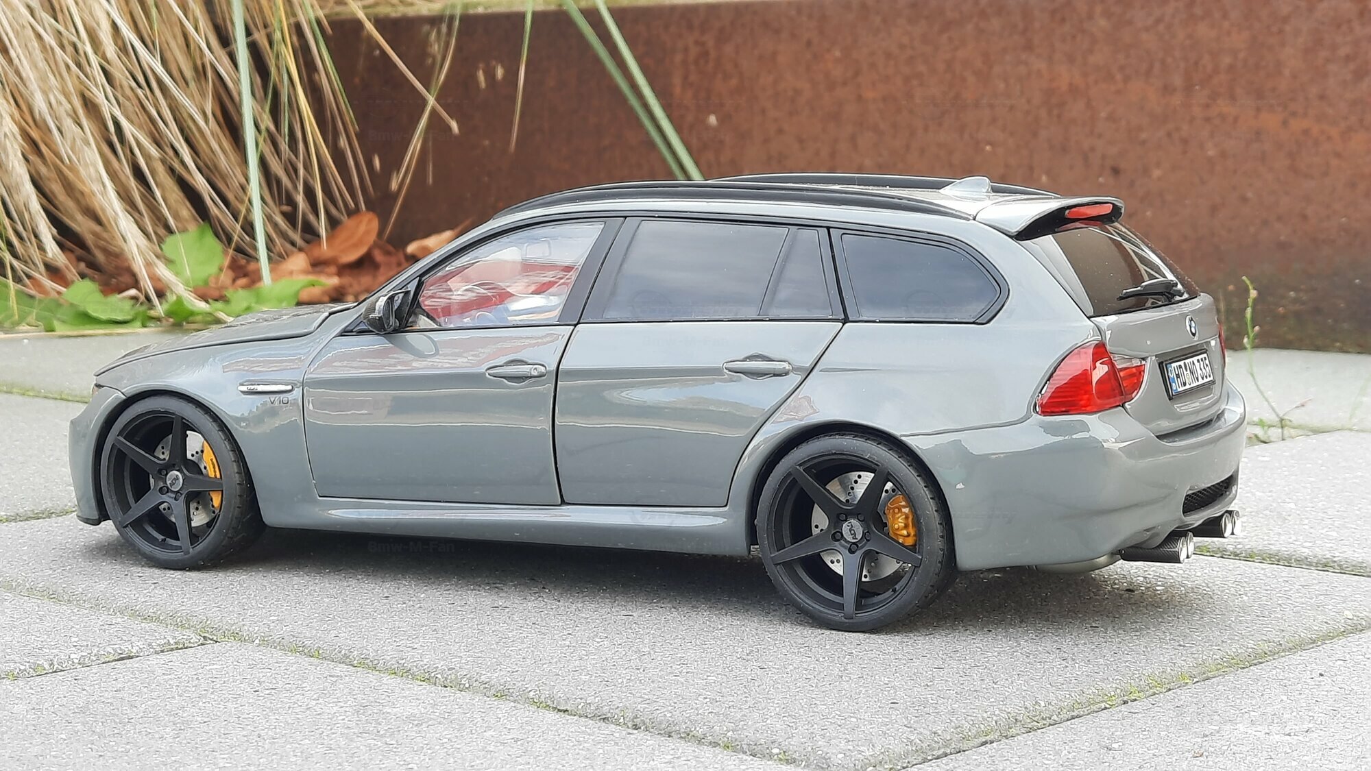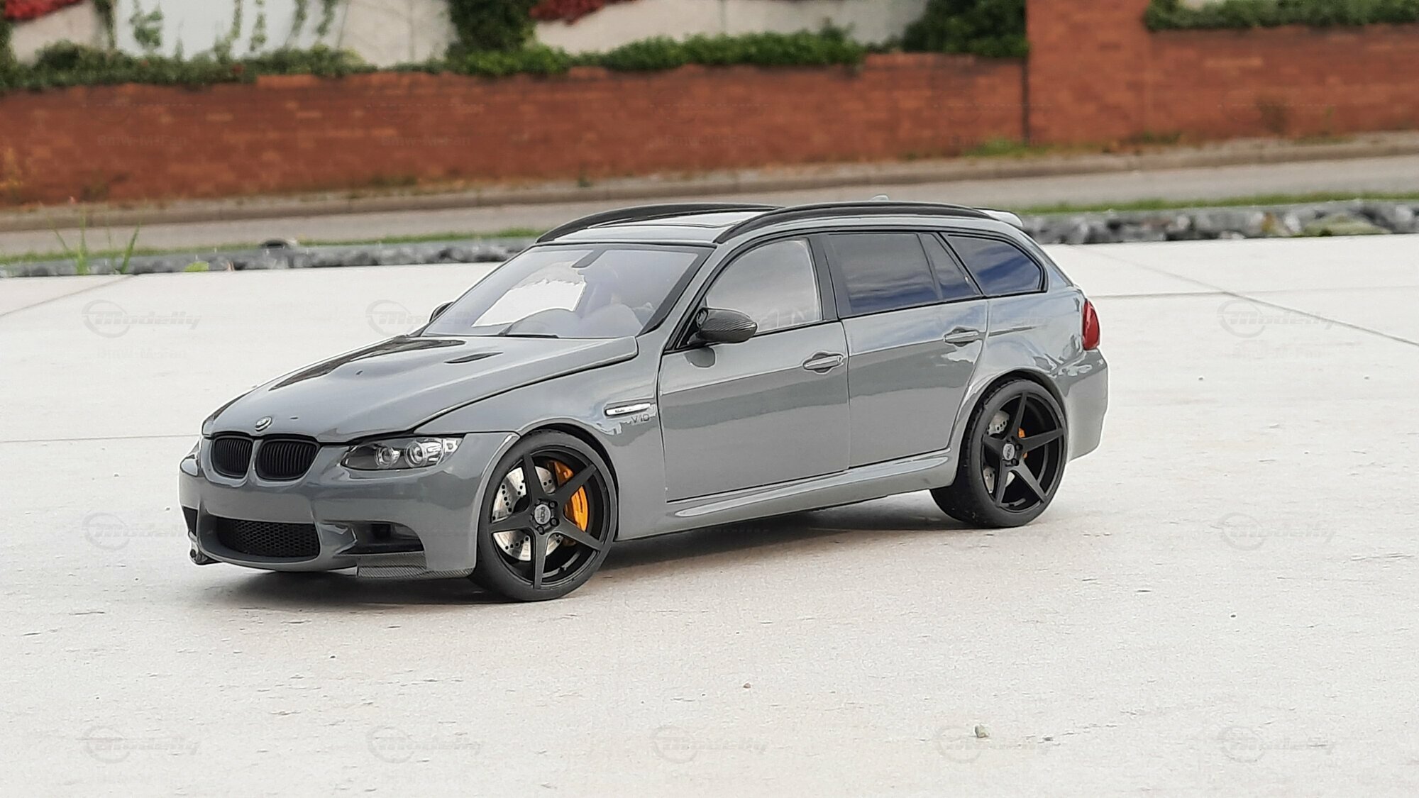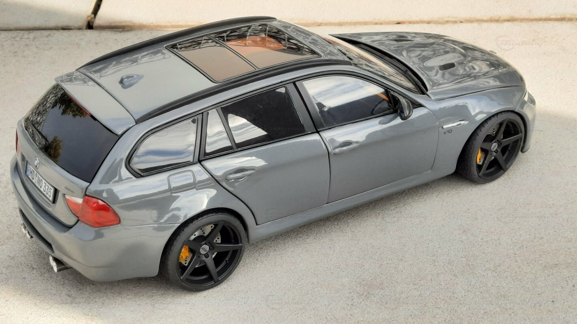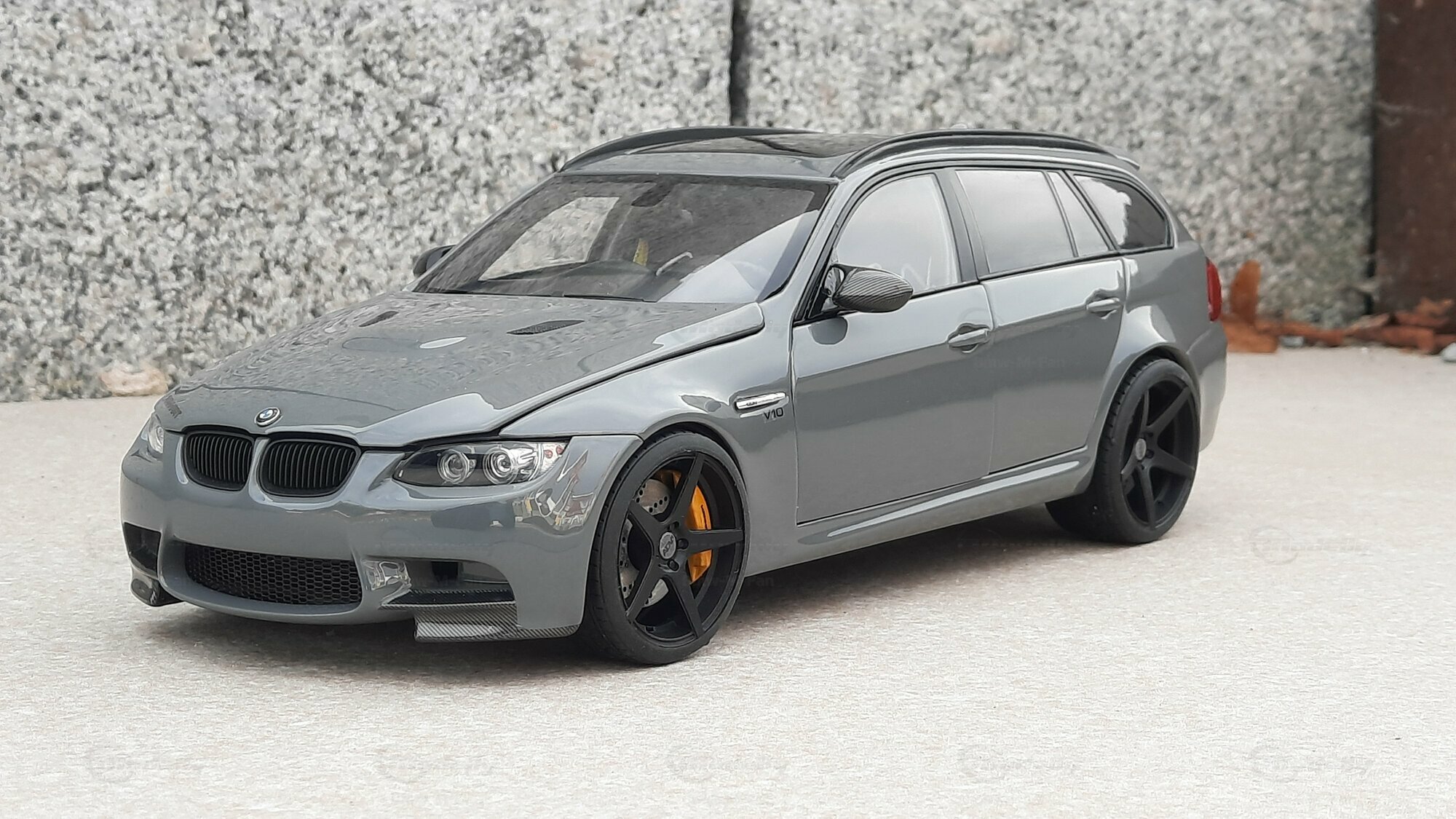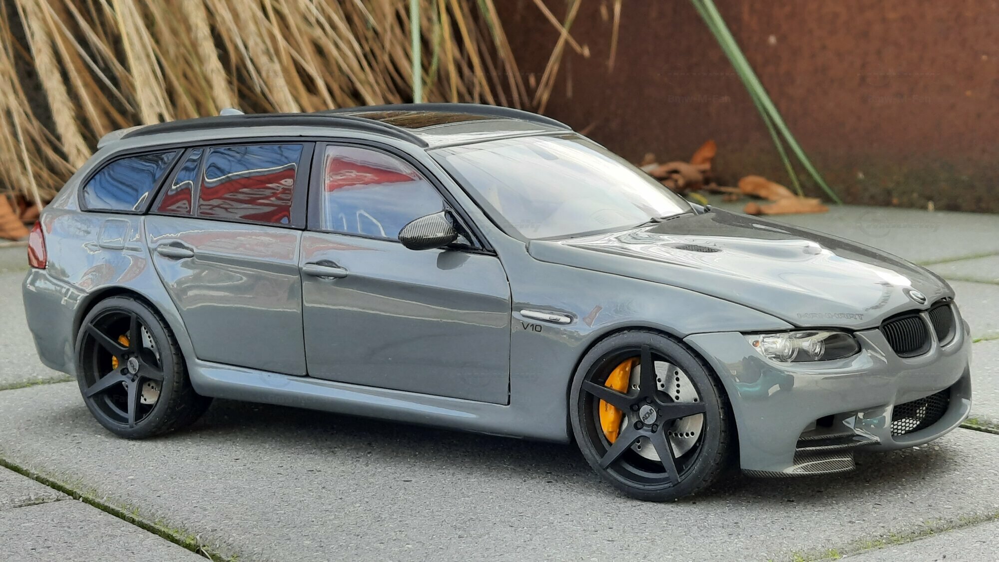 Das Modell von Kyosho welches als Basis alleine mit dem e91 Touring,e92 M3 und Heckstosstange e90 M3 verbunden wurde sticht durch spezifische Tuning-Merkmale hervor, die auf den Bildern gut sichtbar sind. Die X6M Bremse vorne und e60 M5 Bremse hinten werden durch die 20 Zoll ADV 1 5.1 Felgen ergänzt.
