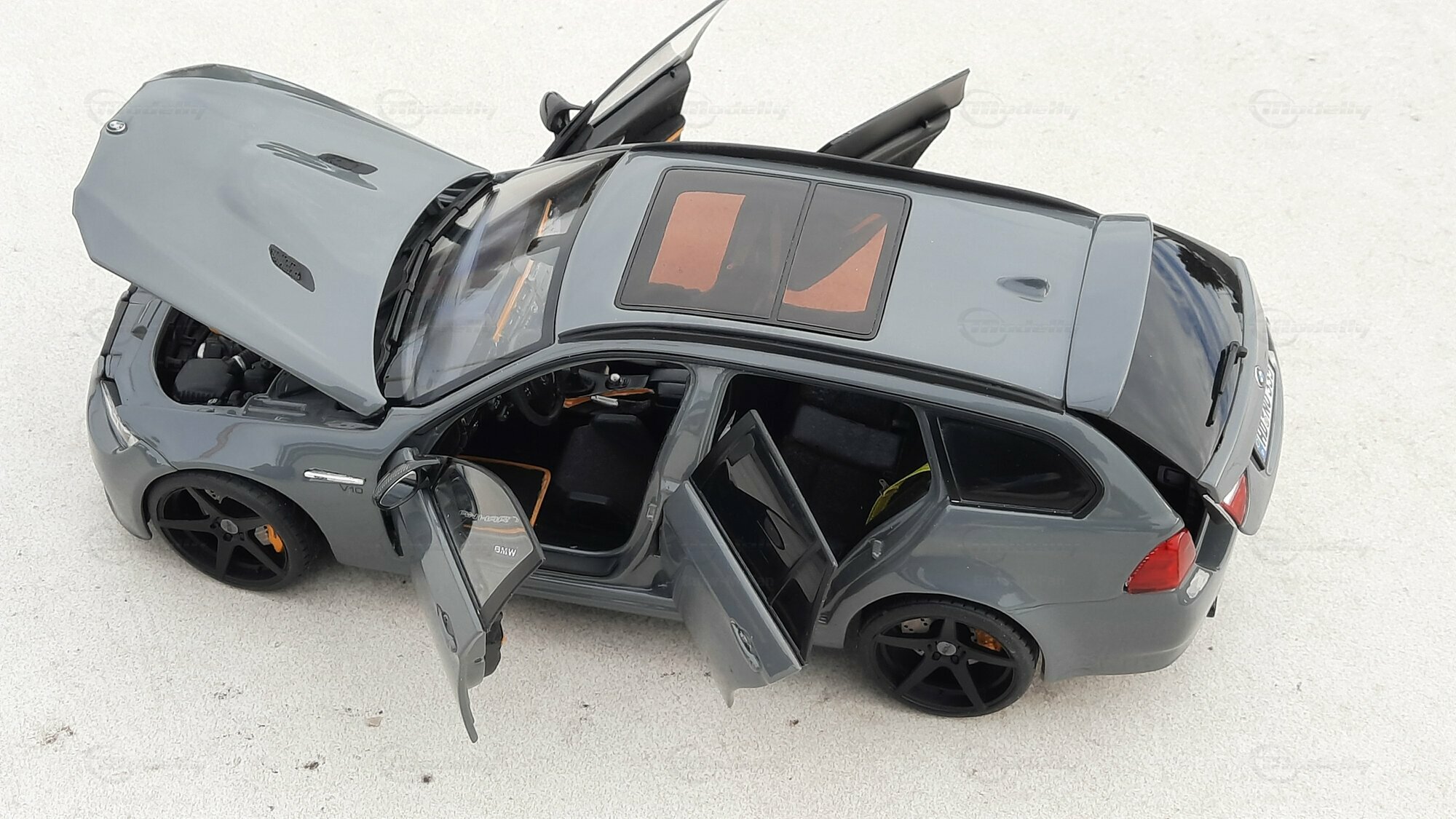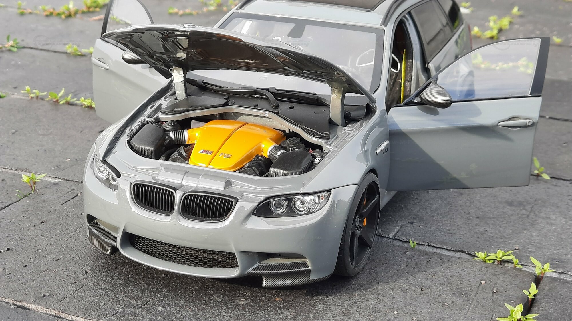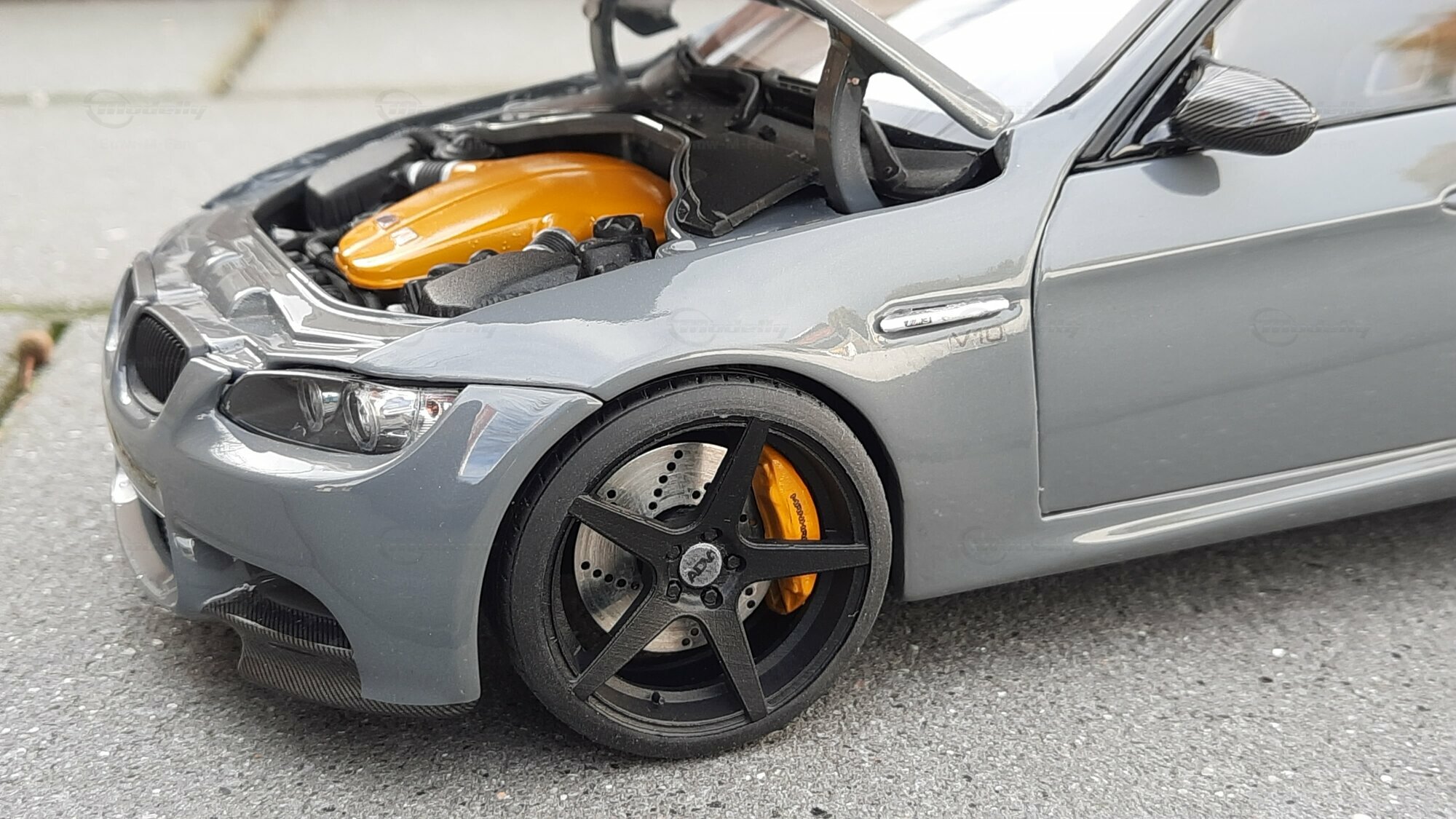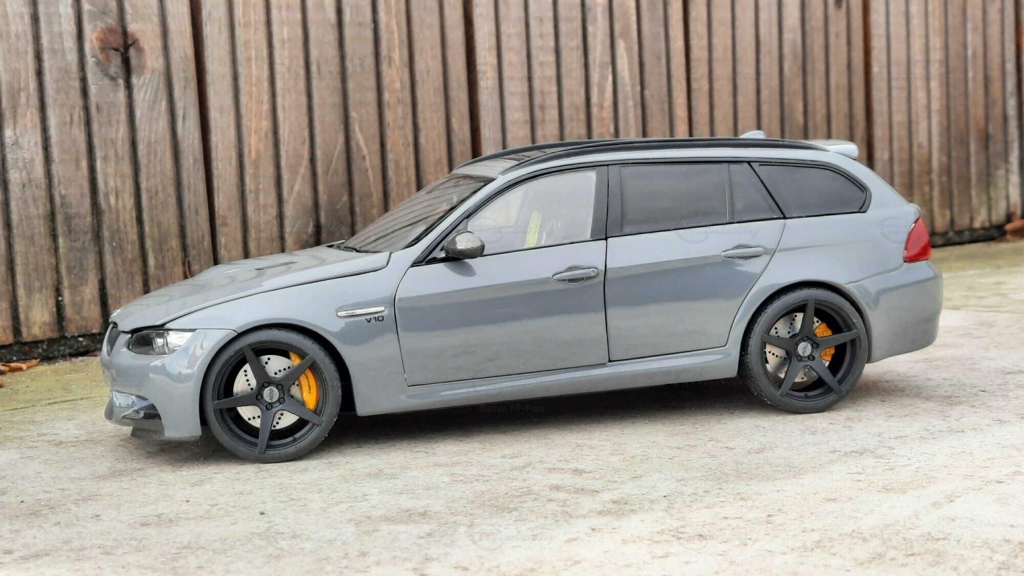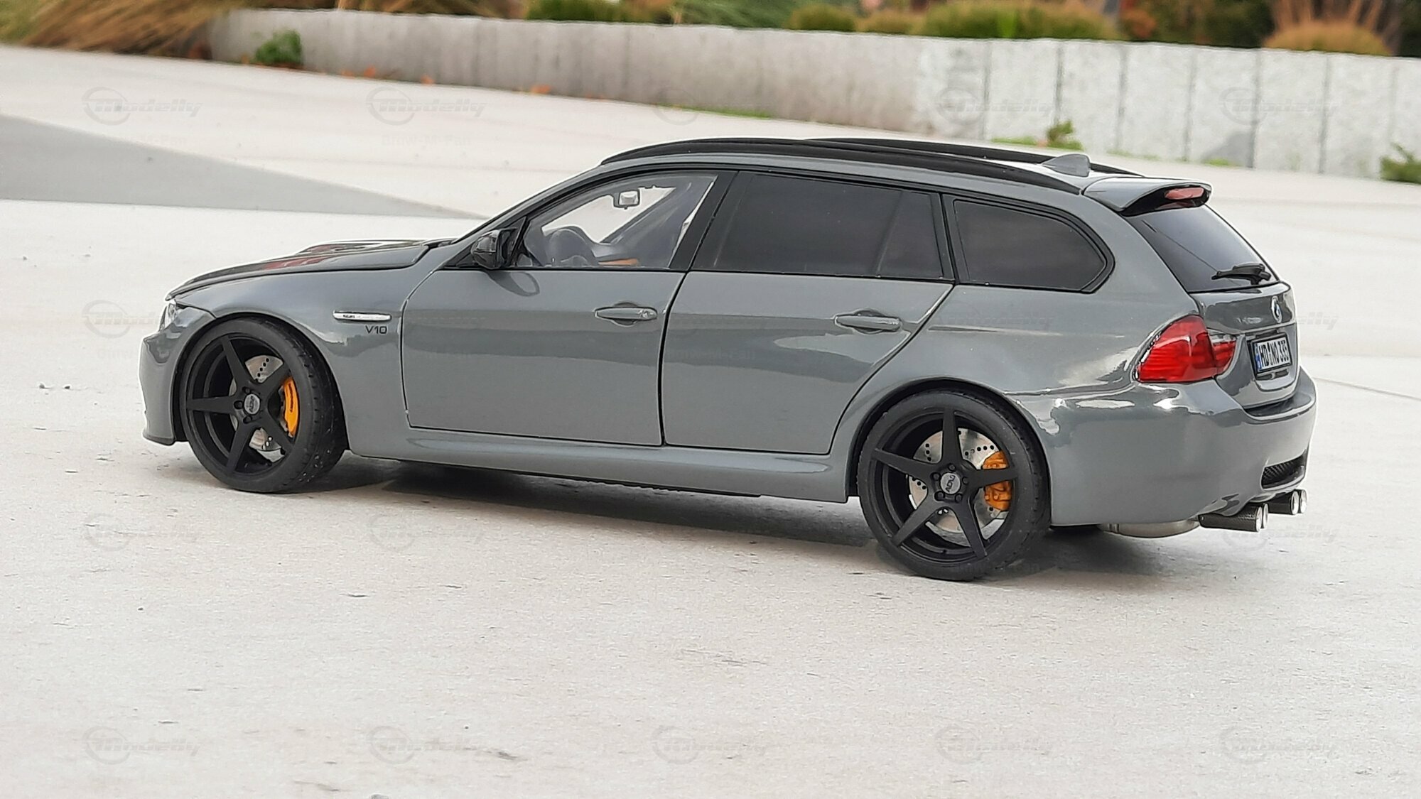 Das Modell von Kyosho welches als Basis alleine mit dem e91 Touring,e92 M3 und Heckstosstange e90 M3 verbunden wurde sticht durch spezifische Tuning-Merkmale hervor, die auf den Bildern gut sichtbar sind. Die X6M Bremse vorne und e60 M5 Bremse hinten werden durch die 20 Zoll ADV 1 5.1 Felgen ergänzt.
