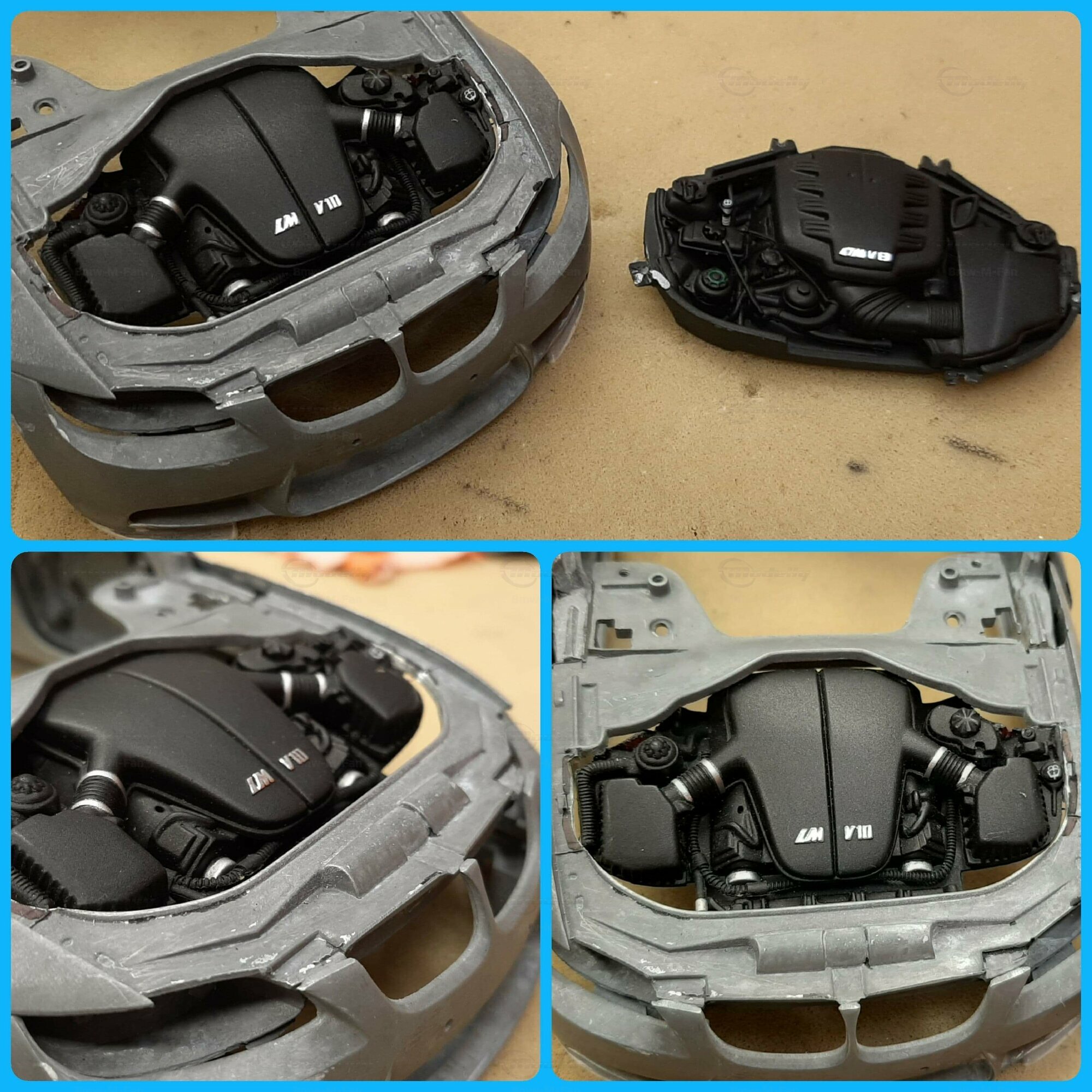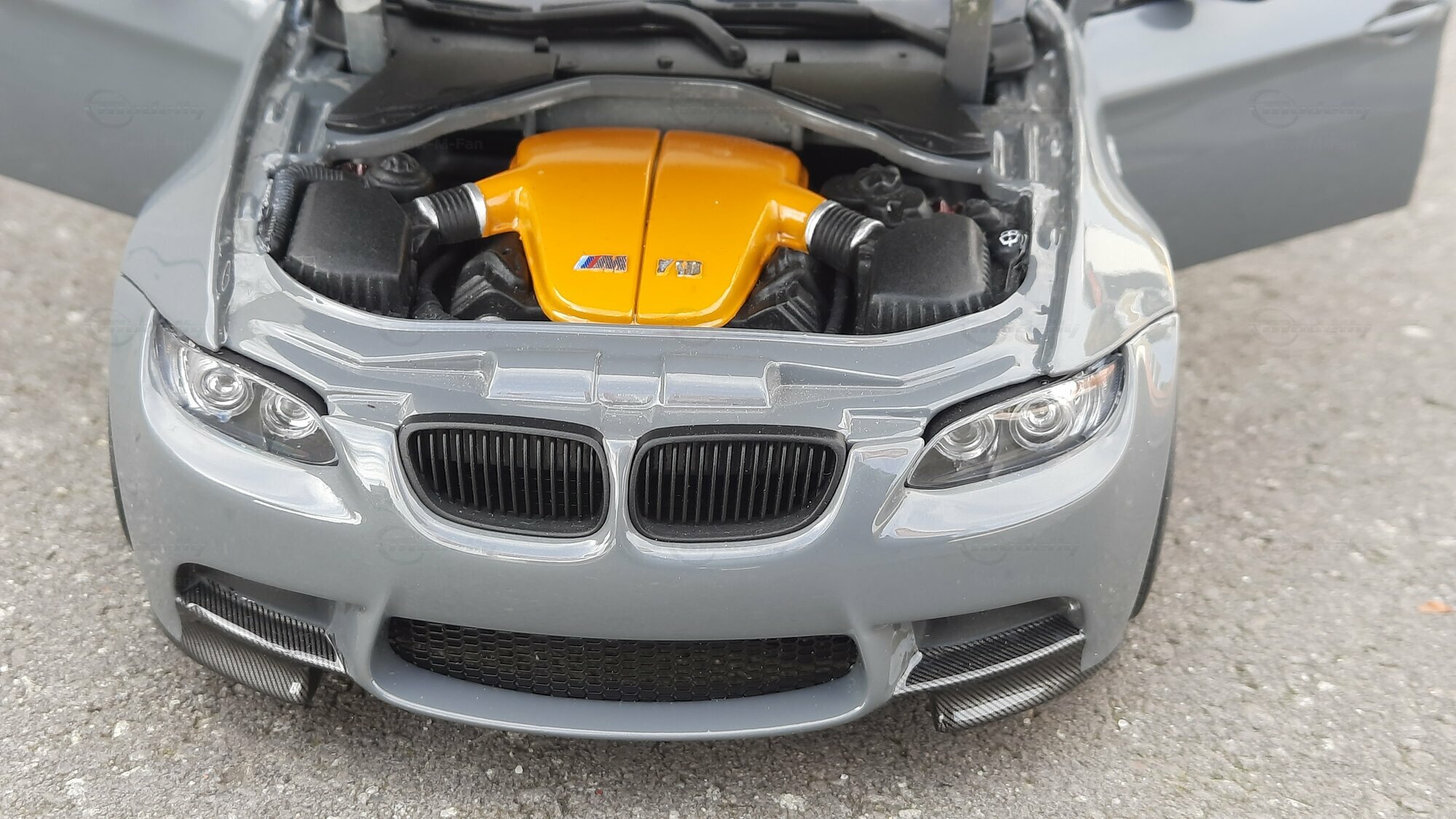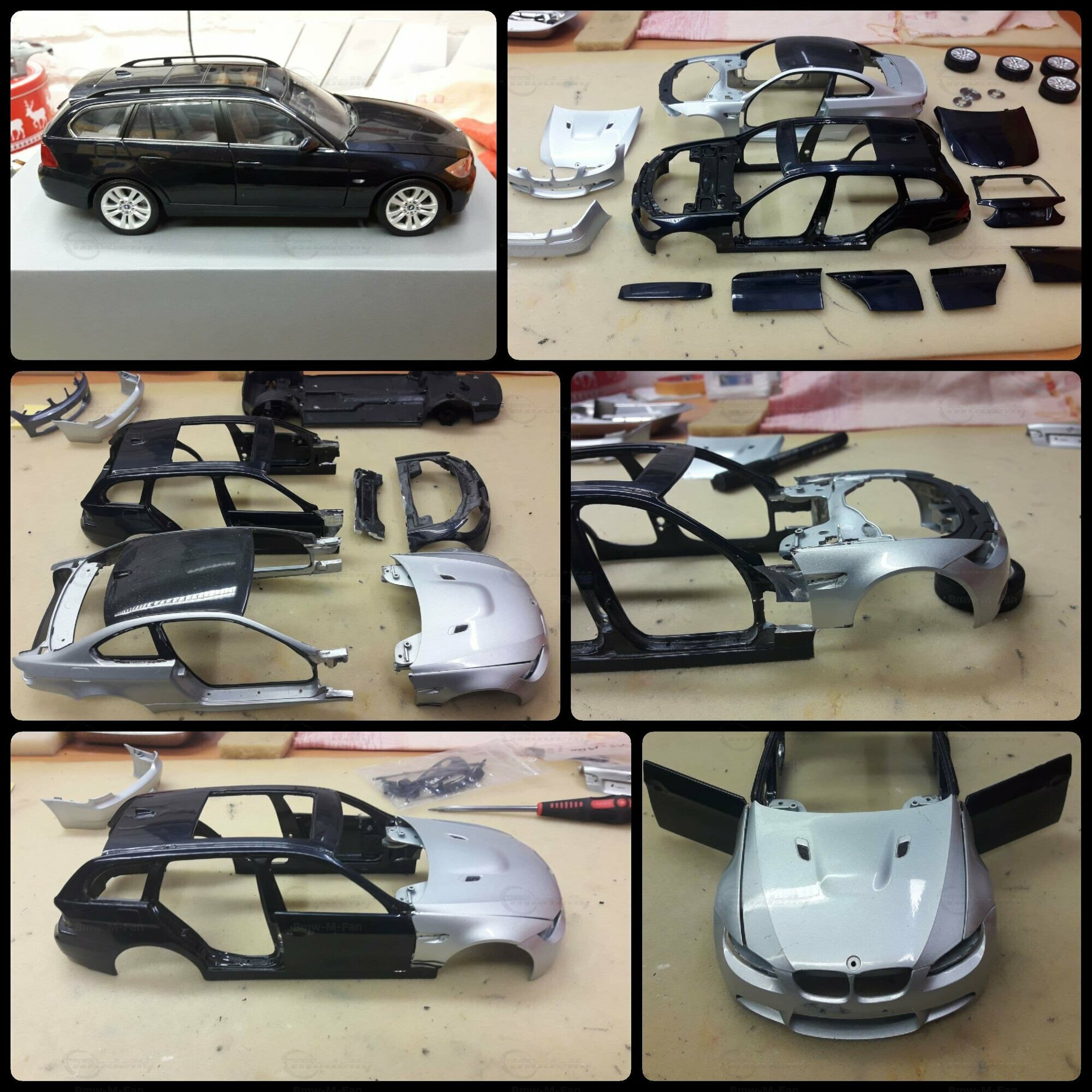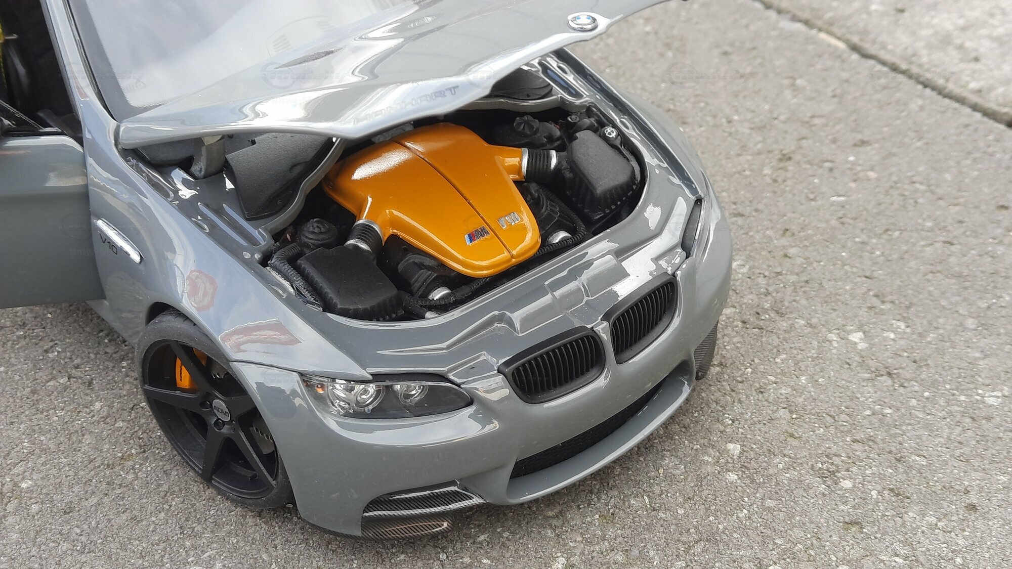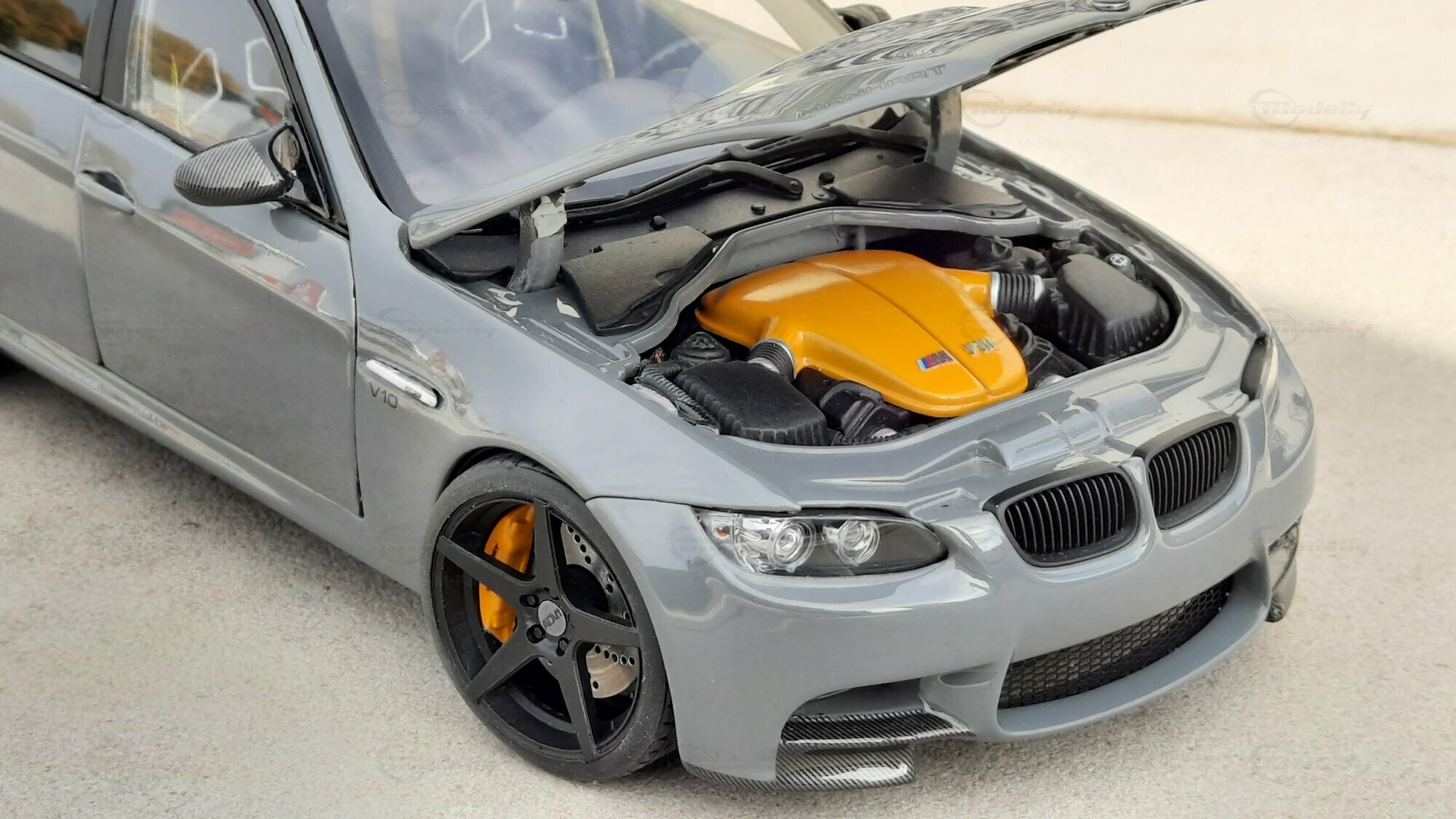 Das Modell von Kyosho welches als Basis alleine mit dem e91 Touring,e92 M3 und Heckstosstange e90 M3 verbunden wurde sticht durch spezifische Tuning-Merkmale hervor, die auf den Bildern gut sichtbar sind. Die X6M Bremse vorne und e60 M5 Bremse hinten werden durch die 20 Zoll ADV 1 5.1 Felgen ergänzt.