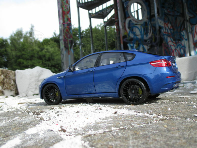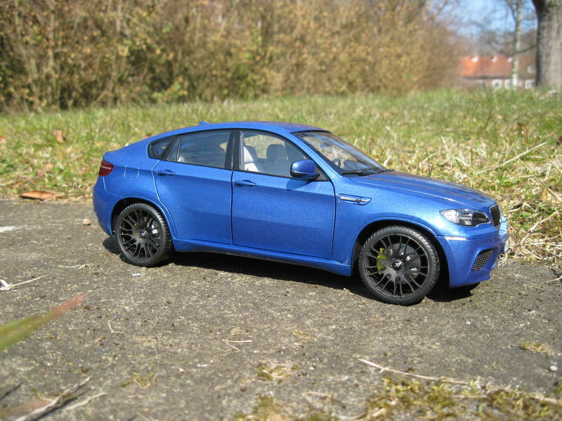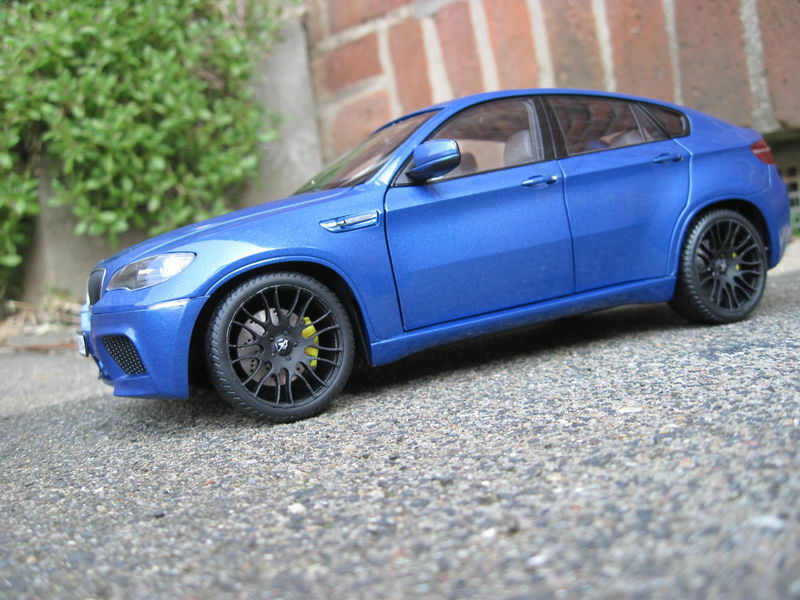 Das hier abgebildete Modellauto in 1:18-Maßstab, hergestellt von Kyosho, ist eine meisterhafte Nachbildung des BMW X6 M. Modelly Mitglied "Bmw-M-Fan" besitzt dieses Modell, das sorgfältig modifiziert wurde. Es ist wichtig zu betonen, dass dieses Modellauto modifiziert wurde und nicht das ursprünglich von Kyosho produzierte Produkt darstellt. Die Modifikationen an diesem Modellauto verleihen ihm einen einzigartigen Charakter und konzentrieren sich meist auf Tuning-Details. Unter anderem sind spezielle Felgen aus dem Programm von Hamann eingebaut, was dem Modell einen markanten Look verleiht. Das Originalmodell von Kyosho ist für seine detailgetreue Nachbildung, einschließlich der Innenausstattung, Lackierung und des Motorraums, bekannt.