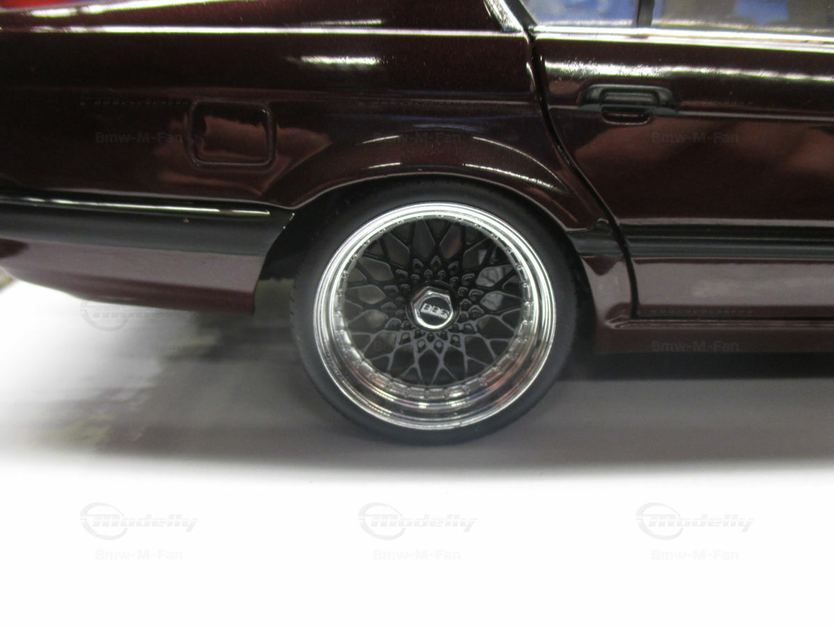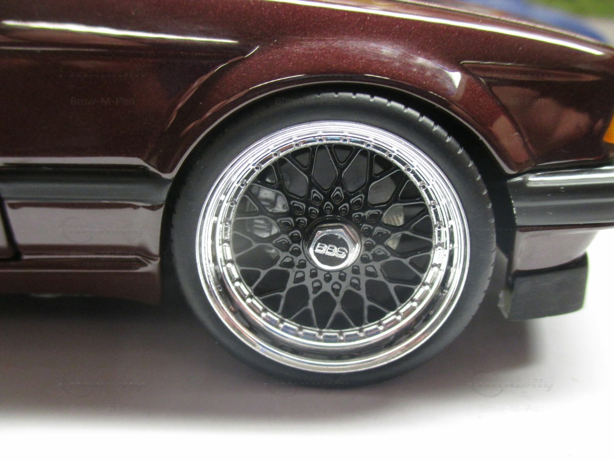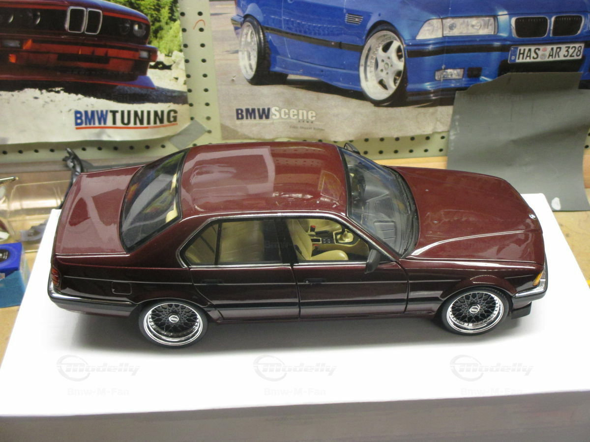 Die präsentierte Miniatur im 1:18 Maßstab ist ein exquisites Beispiel für maßstabsgetreue Modellbaukunst der Marke Minichamps. Diese Miniatur wurde modifiziert und entspricht nicht dem ursprünglichen Produkt, das von Minichamps hergestellt wurde. Das Modell, das von Modelly-Mitglied "Bmw-M-Fan" gesammelt wird, zeigt eine detaillierte Wiedergabe des Originals mit zusätzlichen Anpassungen. Die auffälligen Felgen sind von der renommierten Firma BBS, was dem Modell eine sportliche Note verleiht. Auch die Lackierung ist besonders, mit einem tiefen Metallic-Burgunderrot, das bei Lichteinfall zu glänzen scheint. Diese Detailverliebtheit ist charakteristisch für Minichamps Produkte, auch wenn das vorliegende Exemplar jenseits der traditionellen Produktion modifiziert wurde.