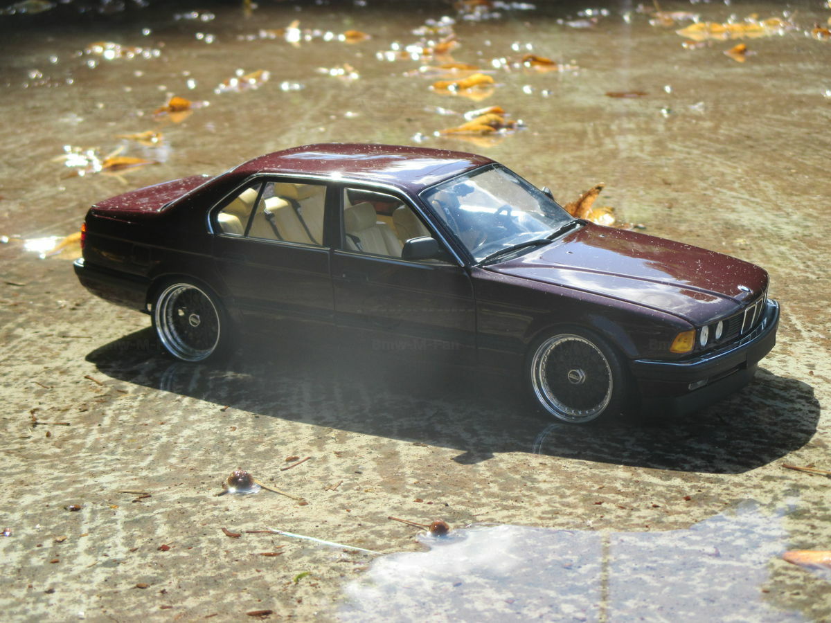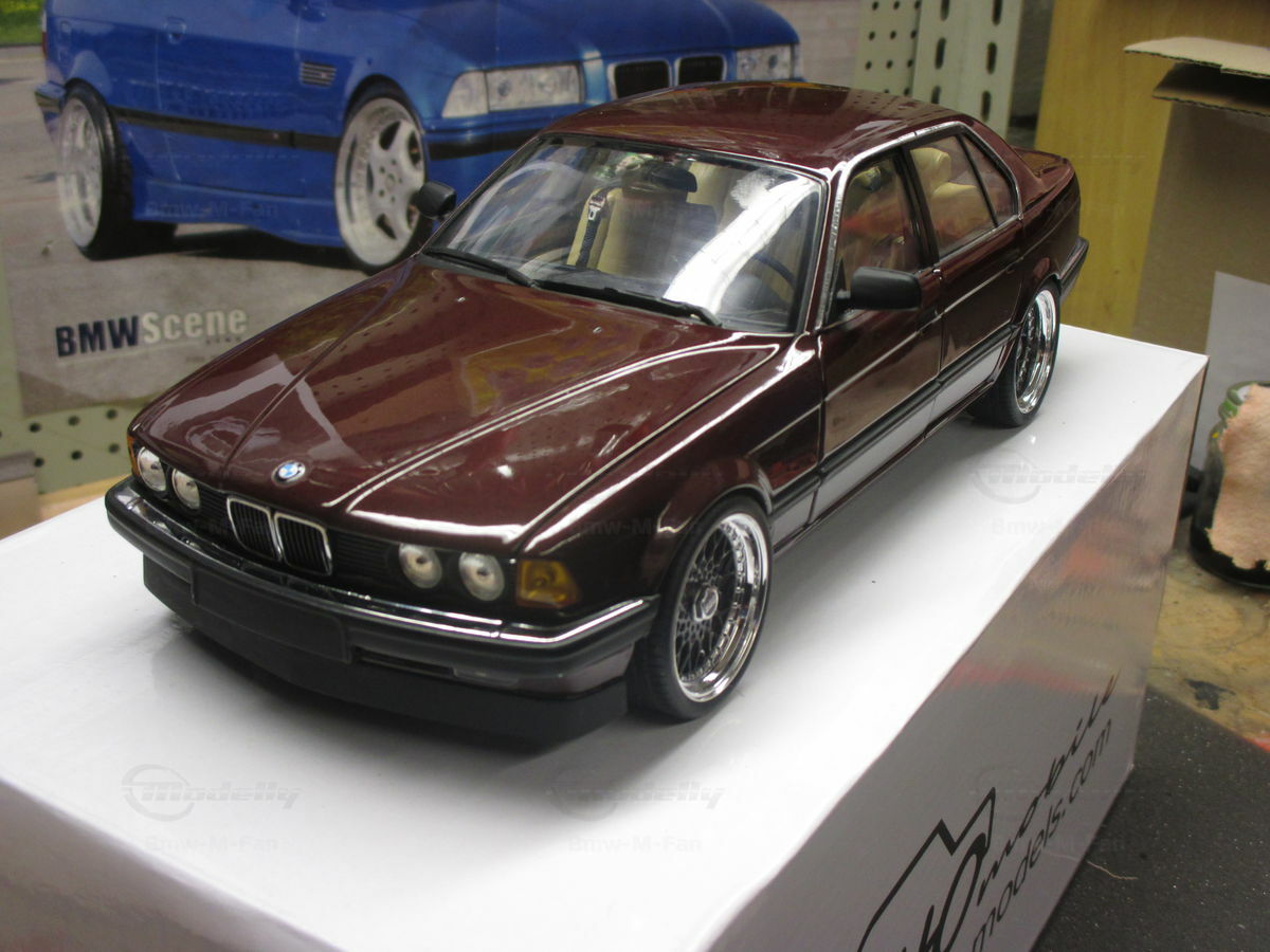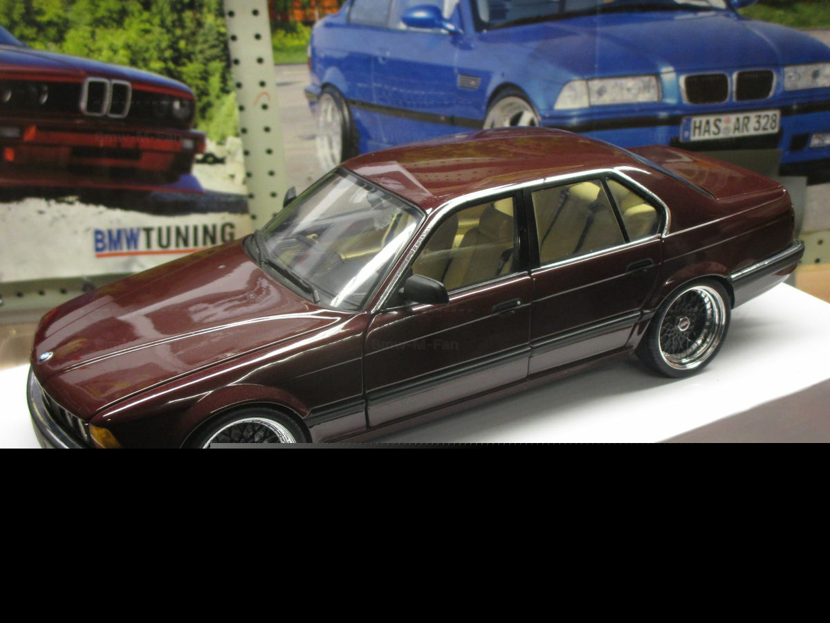 Die präsentierte Miniatur im 1:18 Maßstab ist ein exquisites Beispiel für maßstabsgetreue Modellbaukunst der Marke Minichamps. Diese Miniatur wurde modifiziert und entspricht nicht dem ursprünglichen Produkt, das von Minichamps hergestellt wurde. Das Modell, das von Modelly-Mitglied "Bmw-M-Fan" gesammelt wird, zeigt eine detaillierte Wiedergabe des Originals mit zusätzlichen Anpassungen. Die auffälligen Felgen sind von der renommierten Firma BBS, was dem Modell eine sportliche Note verleiht. Auch die Lackierung ist besonders, mit einem tiefen Metallic-Burgunderrot, das bei Lichteinfall zu glänzen scheint. Diese Detailverliebtheit ist charakteristisch für Minichamps Produkte, auch wenn das vorliegende Exemplar jenseits der traditionellen Produktion modifiziert wurde.
