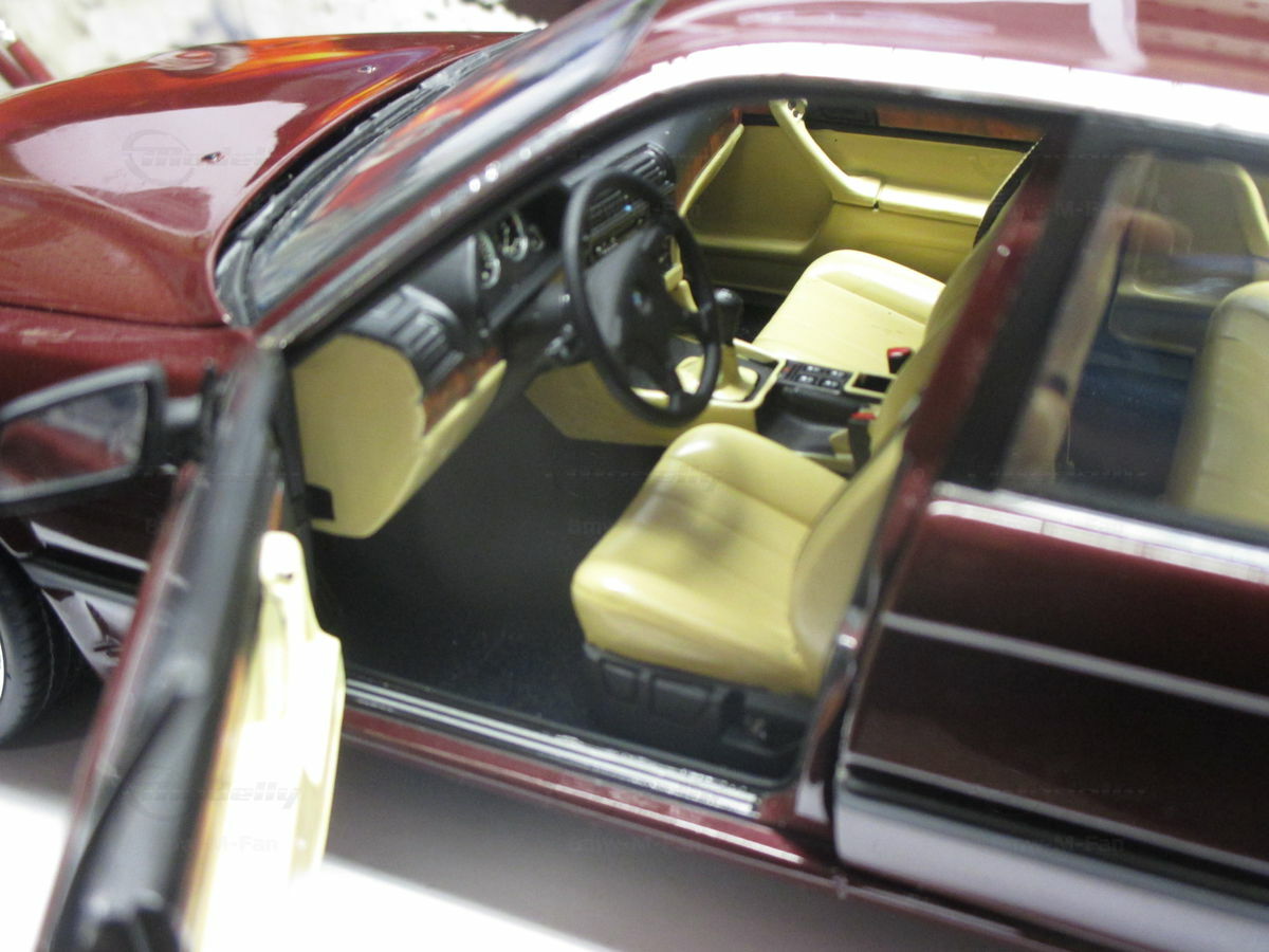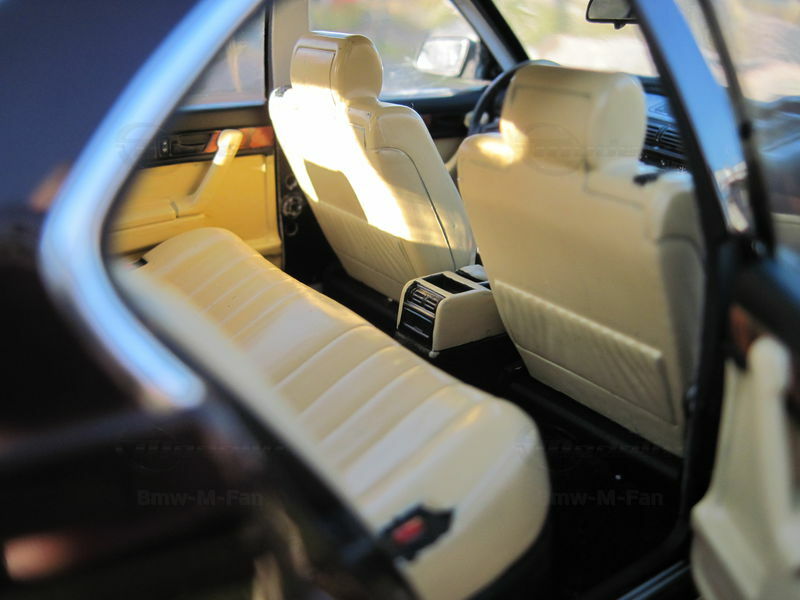 Die Schönheit dieser 1:18 Miniatur liegt in den Details, die selbst den anspruchsvollsten Sammler beeindrucken. Das besondere Interieur mit beigefarbenen Sitzen spiegelt den luxuriösen Anspruch des Originals wider. Die Details im Inneren des Modells, einschließlich der Armaturen und die Türverkleidungen, sind präzise ausgearbeitet. Die glatten Oberflächen und klaren Fenster verleihen dem Modell ein realistisches Aussehen, das auch die geringsten Änderungen sofort sichtbar macht. Das schlanke Design der Karosserie, die authentischen Seitenschweller und die detailgetreue Frontansicht schaffen eine beeindruckende Nachbildung des BMW E32.