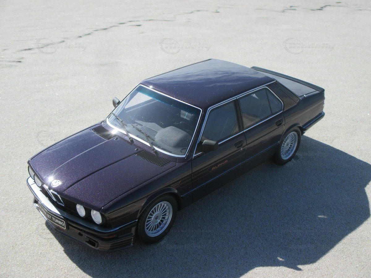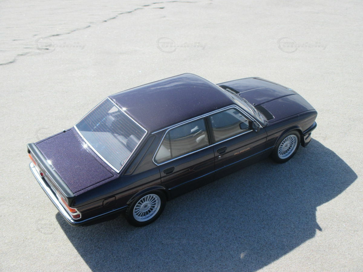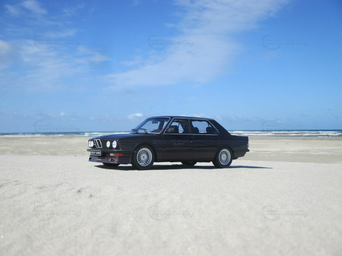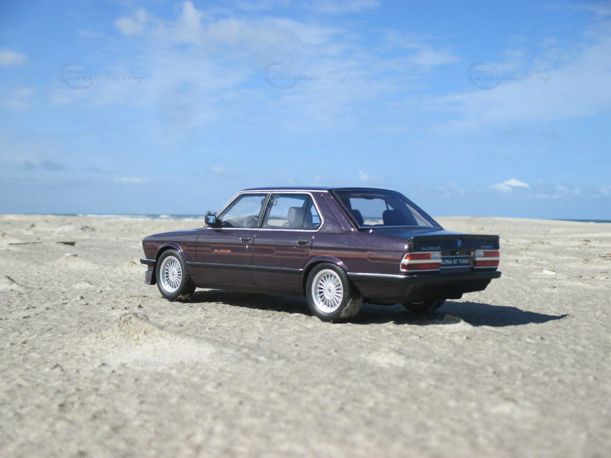 Das hier gezeigte Miniaturmodell ist im Maßstab 1:18 von Otto Models hergestellt und wurde aus hochwertigem Harz gefertigt. Die Detaillierung dieses Modells ist beeindruckend realistisch und fängt die Essenz des Originals ein. Die Karosserie zeigt sich in einem glänzenden Schwarz, ergänzt durch die typischen Alpina-Streifen in Silber, welche der Miniatur ein markantes Aussehen verleihen. Jede Kurve und jedes Detail, von den Frontscheinwerfern über das charakteristische Nieren-Design bis hin zu den Schriftzügen und Logos, wurde mit äußerster Präzision nachgebildet. Die Felgen, ebenfalls speziell von Alpina designt, tragen maßgeblich zum authentischen Eindruck dieser Miniatur bei. Der detailliert ausgearbeitete Frontspoiler mit dem alpina-typischen "Alpina"-Schriftzug unterstreicht den sportlichen Charakter dieser berühmten Limousine. Der Modellauto-Sammler "Bmw-M-Fan", in dessen Sammlung sich dieses Modell befindet, kann sich an einer makellosen Nachbildung erfreuen.