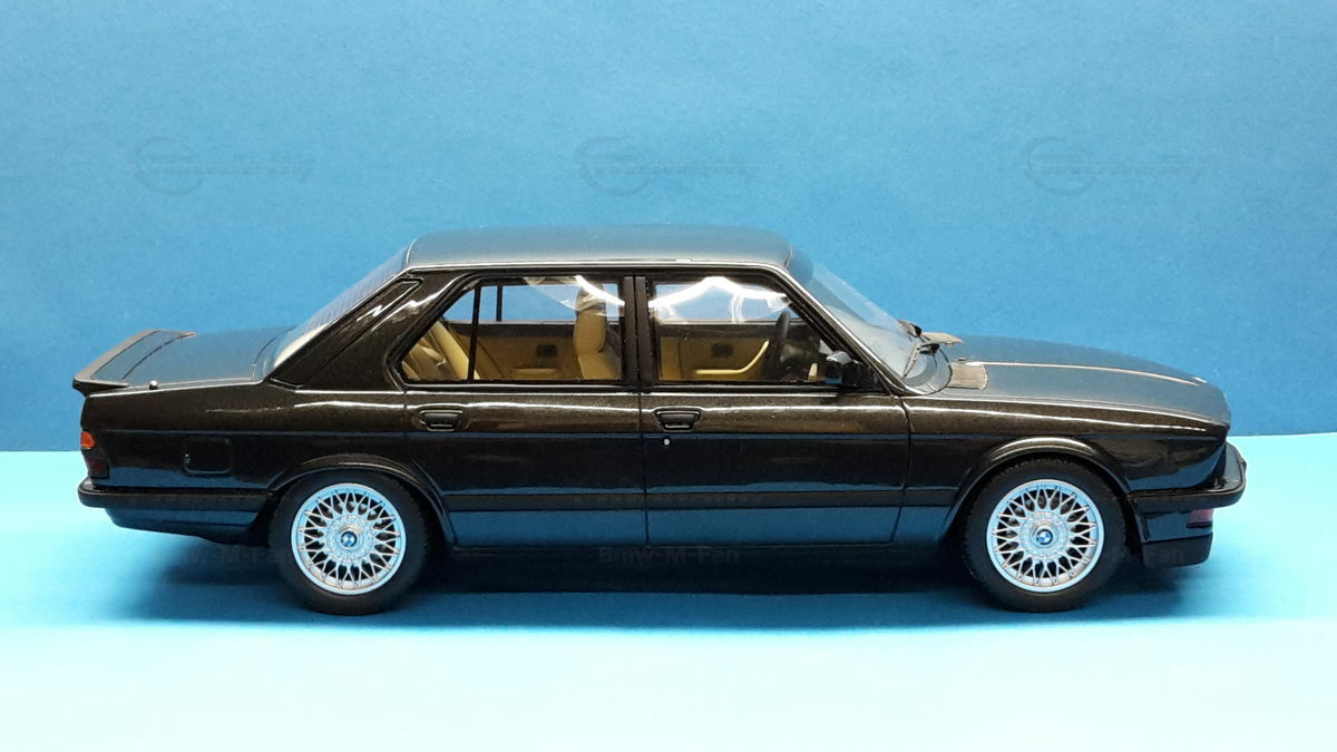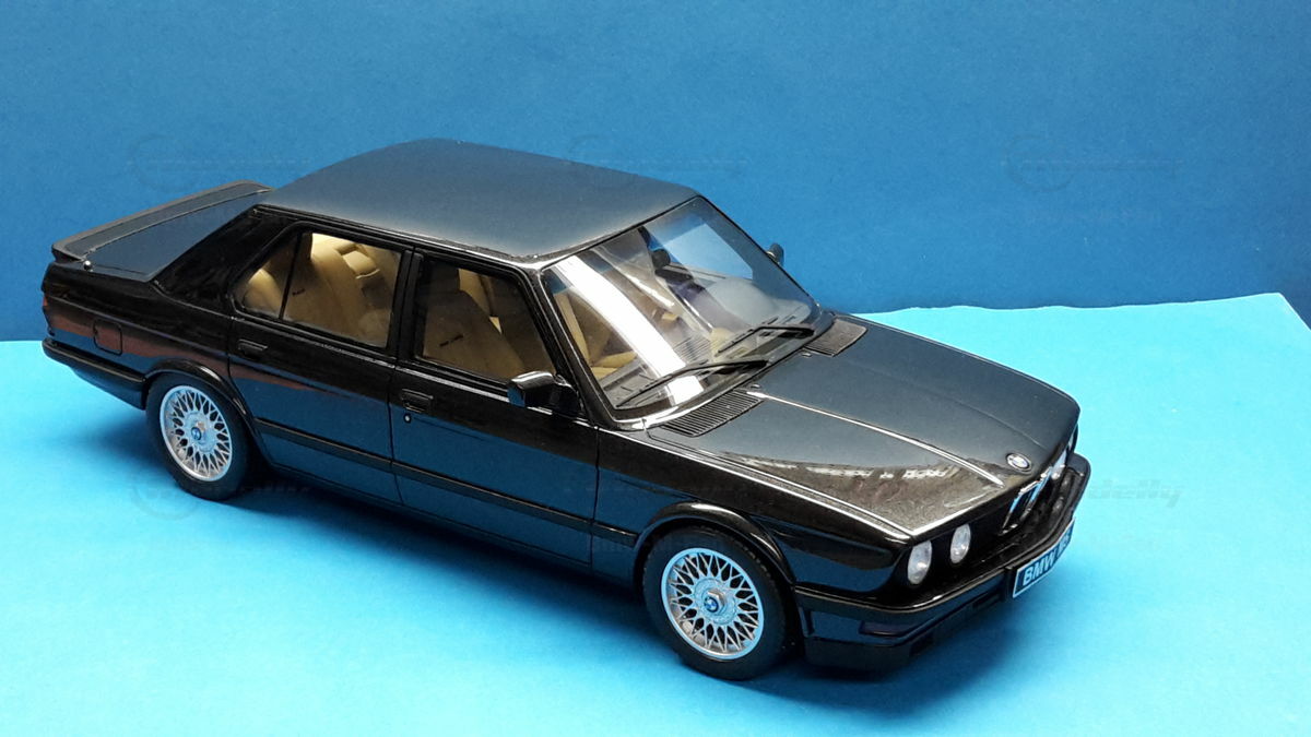 Das vorgestellte Modellauto im Maßstab 1:18 von Otto Models ist eine beeindruckende Nachbildung des BMW E28 M5, basierend auf hochwertigem Resin-Material, das für seine Detailgenauigkeit bekannt ist. Die feine Verarbeitung und die präzise Nachbildung der Karosserieformen sind ein Beweis für die Qualität, die Otto Models bietet. Die Lackierung in tiefem Schwarz spiegelt die Eleganz und den sportlichen Charakter des Originals wider. Die filigranen Details, wie die aufgedruckten Logos und die detaillierte Nachbildung der Scheinwerfer, sind klar sichtbar. Diese exklusive Miniatur ist Teil der Sammlung von Modelly-Mitglied "Bmw-M-Fan" und ein Highlight für alle, die Wert auf authentische Sammlerstücke legen.