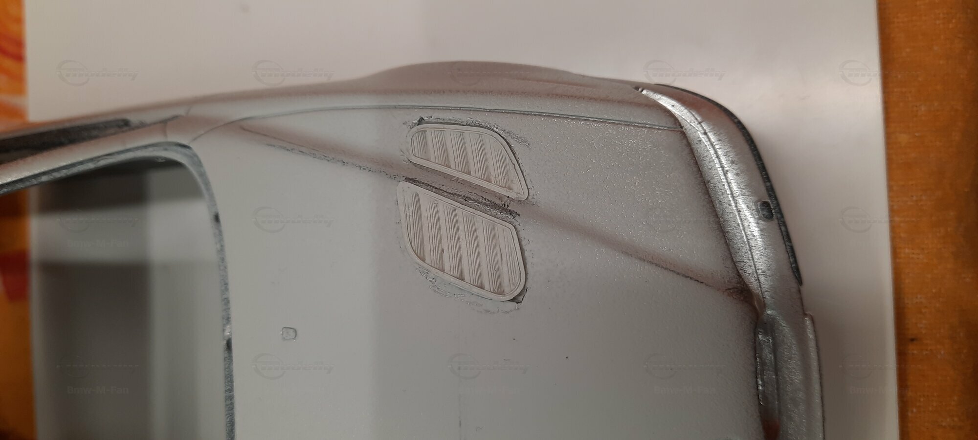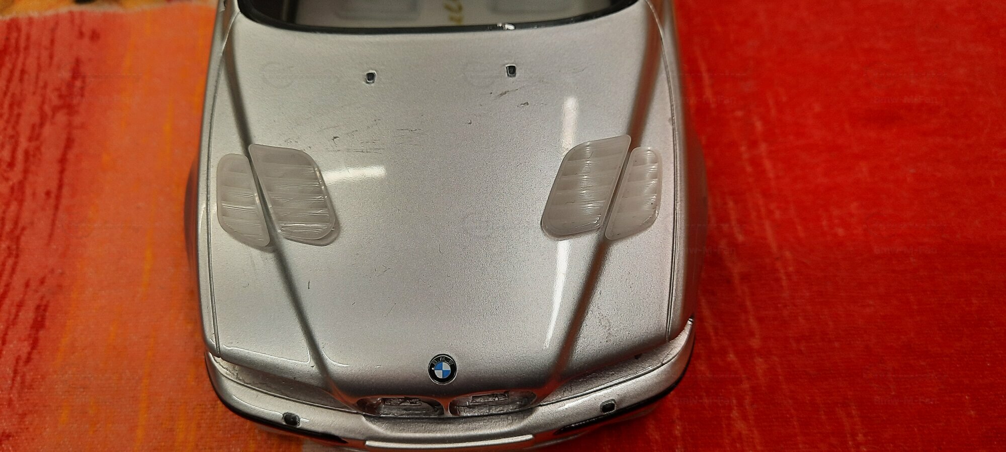 Das Modell, das auf den Bildern zu sehen ist, wurde modifiziert und entspricht nicht dem ursprünglich von Otto Models produzierten Produkt. Auffallend an diesen Modifikationen sind unter anderem die aggressiven Luftauslässe auf der Motorhaube sowie die auffälligen Sportfelgen von Rota Grid in Concarve Form. Diese Details verleihen dem Modellauto einen besonders dynamischen Look. Ebenfalls bemerkenswert ist der tiefergelegte Fahrwerksstil sowie die Lackierung in einem tiefen Blau, welche die sportliche Eleganz des Originals widerspiegelt.