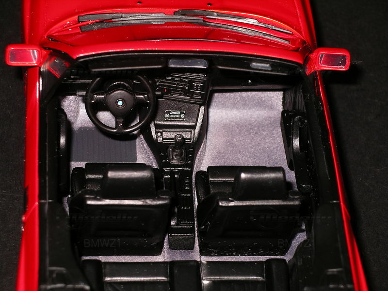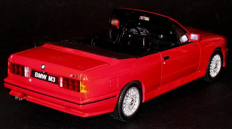 Das hier gezeigte 1:18-Modell des BMW M3 Cabrio (E30) stammt aus der Produktion von Otto Models. Dieses Modellauto wurde detailgetreu nach dem Original gestaltet und ist Teil der Sammlung des Modelly-Mitglieds „BMWZ1“. Die Farbgebung des Modells ist in einem hellen Rot gehalten, das die Ästhetik des Originals authentisch wiedergibt. Besonders auffällig sind die kleinen Details wie die „M3“-Badge auf der Heckklappe und die realistisches Anordnung der Doppelauspuffanlage. Alle Elemente scheinen präzise und proportional abgestimmt, was den hochwertigen Charakter der 1:18-Skala unterstreicht.Vom Interieur her überzeugt das Modell mit der originalgetreuen Nachbildung des Armaturenbretts und der Sitze. Zu sehen sind feine Details wie das aufwendig gestaltete Lenkrad mit dem BMW-Logo sowie die Beschriftung der Mittelkonsole, die den Original-Look aus den späten 80er-Jahren hervorhebt. Die Sitze und das Armaturenbrett sind in Schwarz gehalten, was einen attraktiven Kontrast zur Außenlackierung bietet. Diese hohe Liebe zum Detail macht das Modell zu einem Sammlerstück, das in keiner Kollektion fehlen sollte.