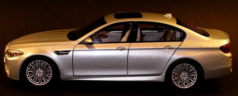 Für Liebhaber und Sammler ist das 1:18 Modellauto des BMW M5 (F10), hergestellt von Paragon, ein wahres Highlight. Dieses Modell, das Teil der Sammlung von Modelly-Mitglied "BMWZ1" ist, ist mit höchster Präzision und Liebe zum Detail gefertigt. Die Lackierung in einem glänzenden Silbern erweckt den Eindruck der Originalfarbe des Fahrzeugs. Die Räder des Modells sind detailgetreu nachgebildet, obwohl keine spezifische Tuningfirma oder Felgenhersteller erkennbar sind. Die klare Glasdachöffnung und die detaillierte Innenausstattung spiegeln das luxuriöse Interieur des Originalfahrzeugs wider. Auch die charakteristischen BMW-Doppelniere und die aerodynamisch gestalteten Außenspiegel sind perfekt im Maßstab 1:18 nachgebildet.