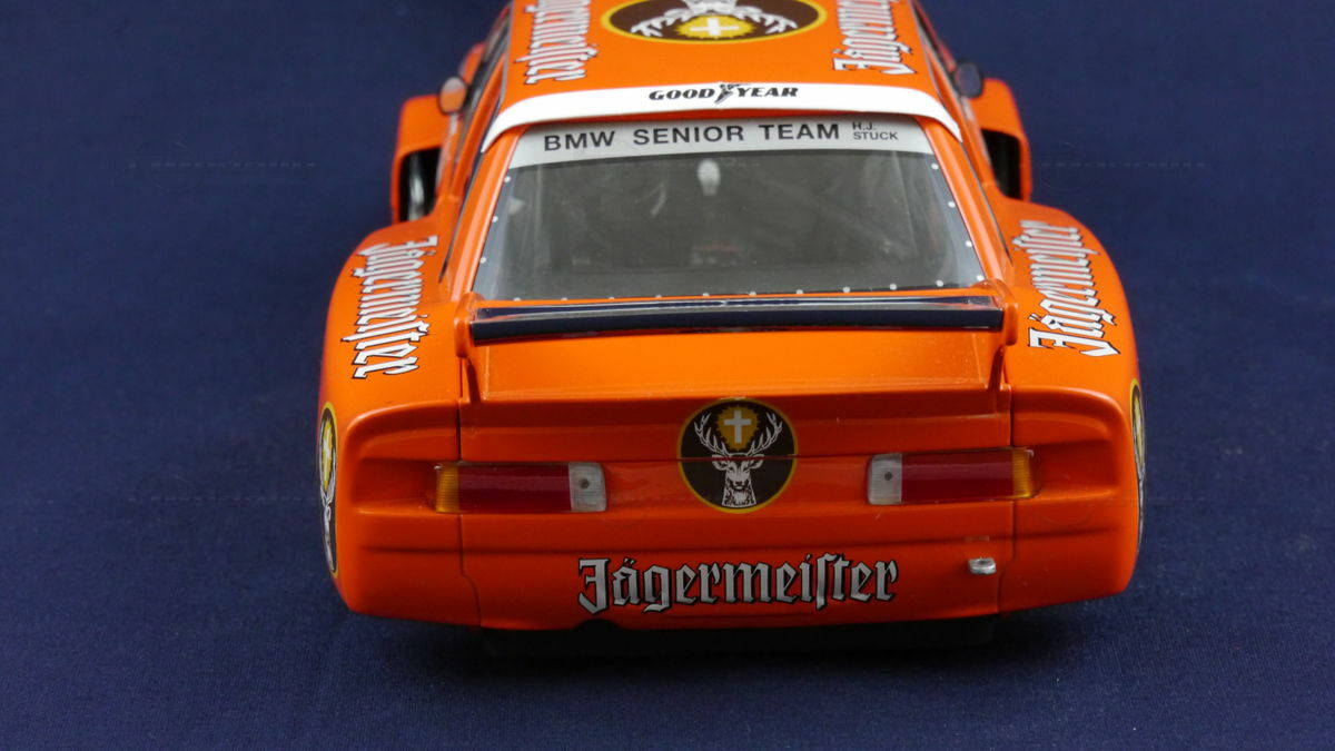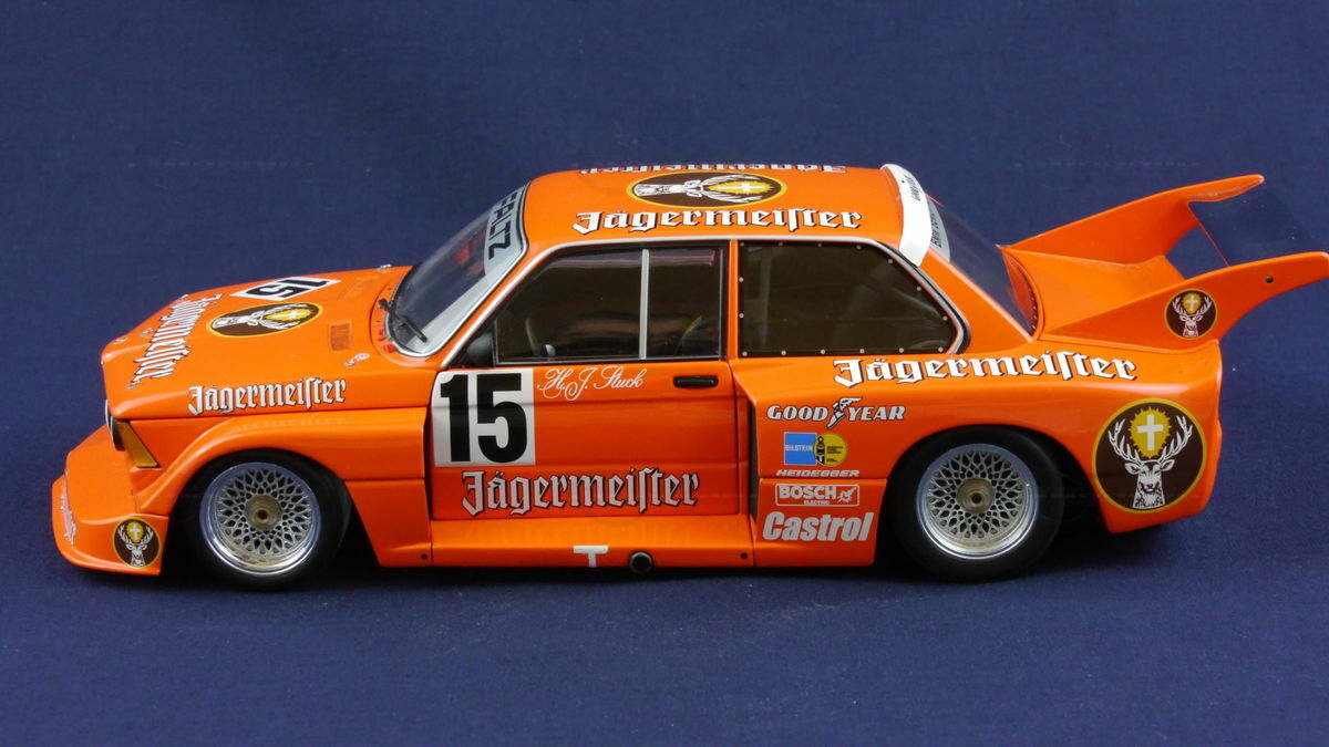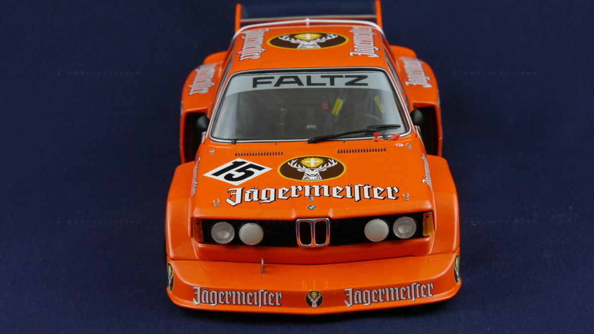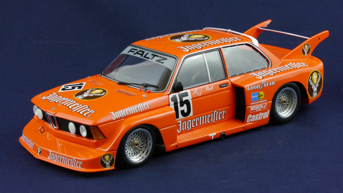 Das hier vorgestellte Modellauto im Maßstab 1:18 wurde von Minichamps produziert und stellt den berühmten BMW 320i (E21) #15 in beeindruckender Detailltreue dar. Hergestellt aus Diecast-Material, beeindruckt es durch seine robuste Bauweise und die akkurate Nachbildung des Originalfahrzeugs. Die Farbe des Modells ist in einem auffälligen Orange gehalten, genau wie das echte Rennfahrzeug. Die Beschriftung des Hauptsponsors Jägermeister ist deutlich sichtbar, ebenso wie die weiteren Sponsorenlogos von Castrol und Goodyear. Das Modell zeigt eine detaillierte Nachbildung des Interieurs, inklusive Rennsitz und Sicherheitsgurte.