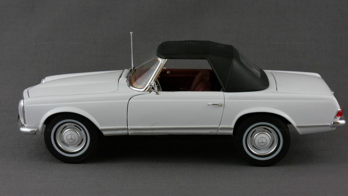 Der Mercedes 230SL Pagode, auch bekannt als W113, ist ein legendärer Sportwagen, der von 1963 bis 1971 gebaut wurde. Das Fahrzeug wurde vom deutschen Ingenieur Paul Bracq entworfen und ist bis heute für seine elegante und zeitlose Formgebung bekannt. Der Begriff "Pagode" bezieht sich auf das nach innen gewölbte Hardtop, das dem Design eine unverwechselbare Note verleiht. Interessanterweise wurde der Mercedes W113 als Nachfolger des W198 und W121 Modell 190SL entwickelt, die beide in den 1950er Jahren bekannt wurden. Ausgestattet war der Mercedes 230SL mit einem 2.3-Liter-Reihensechszylindermotor, der eine Leistung von 150 PS erbrachte und eine Höchstgeschwindigkeit von bis zu 200 km/h (124 mph) ermöglichte. Zu den technischen Highlights zählten eine einzeln aufgehängte Hinterachse und Scheibenbremsen vorne, was zu einem beeindruckenden Fahrverhalten beitrug.