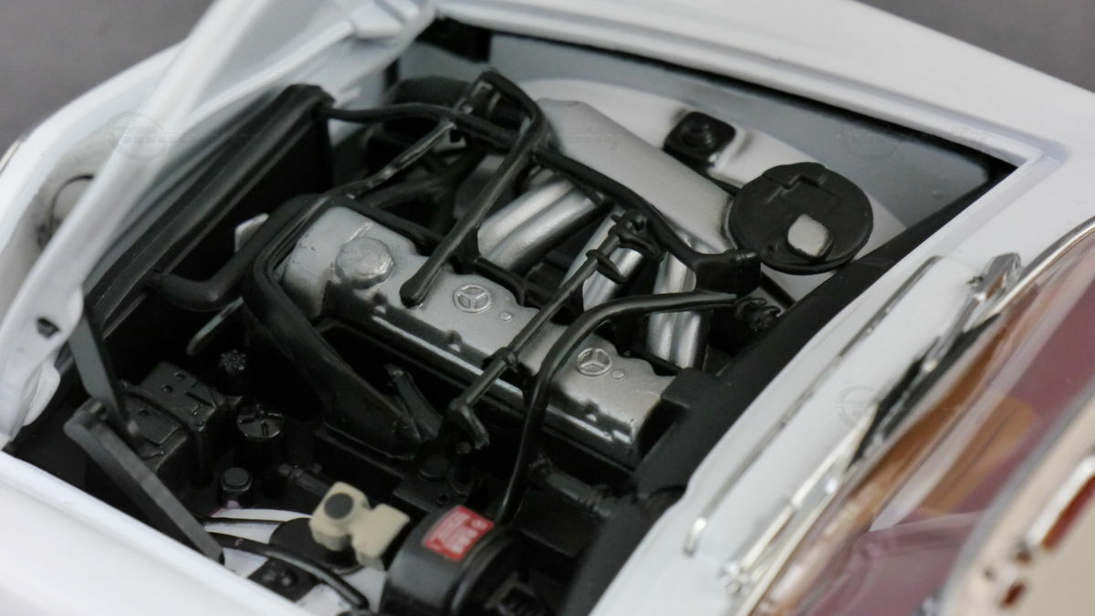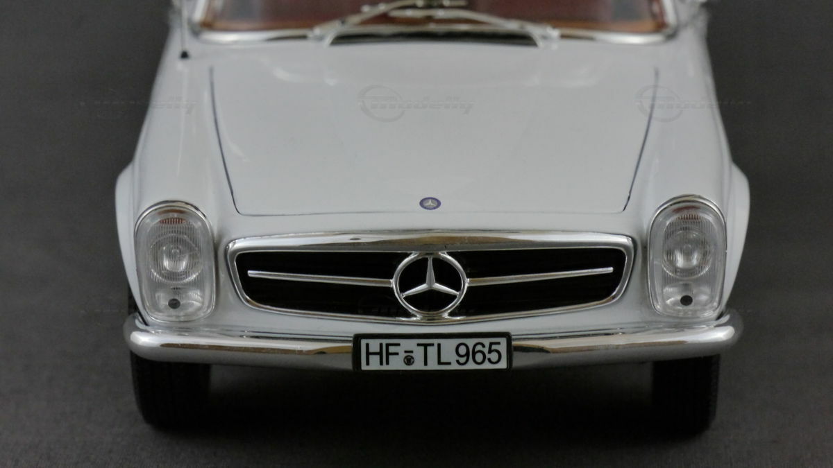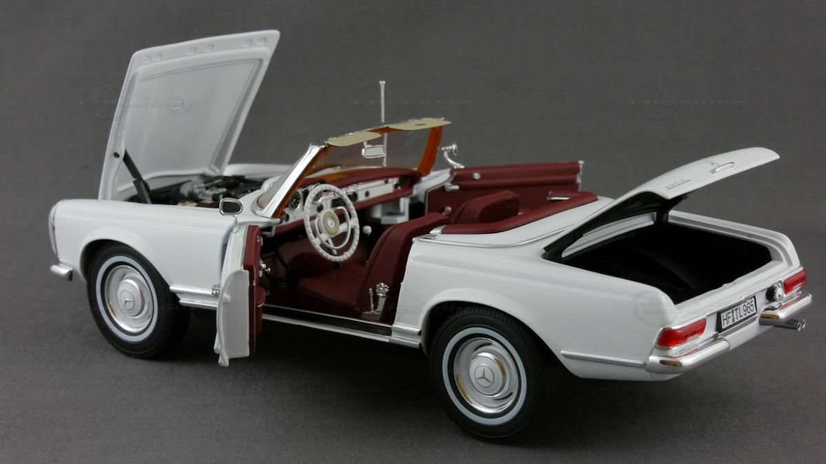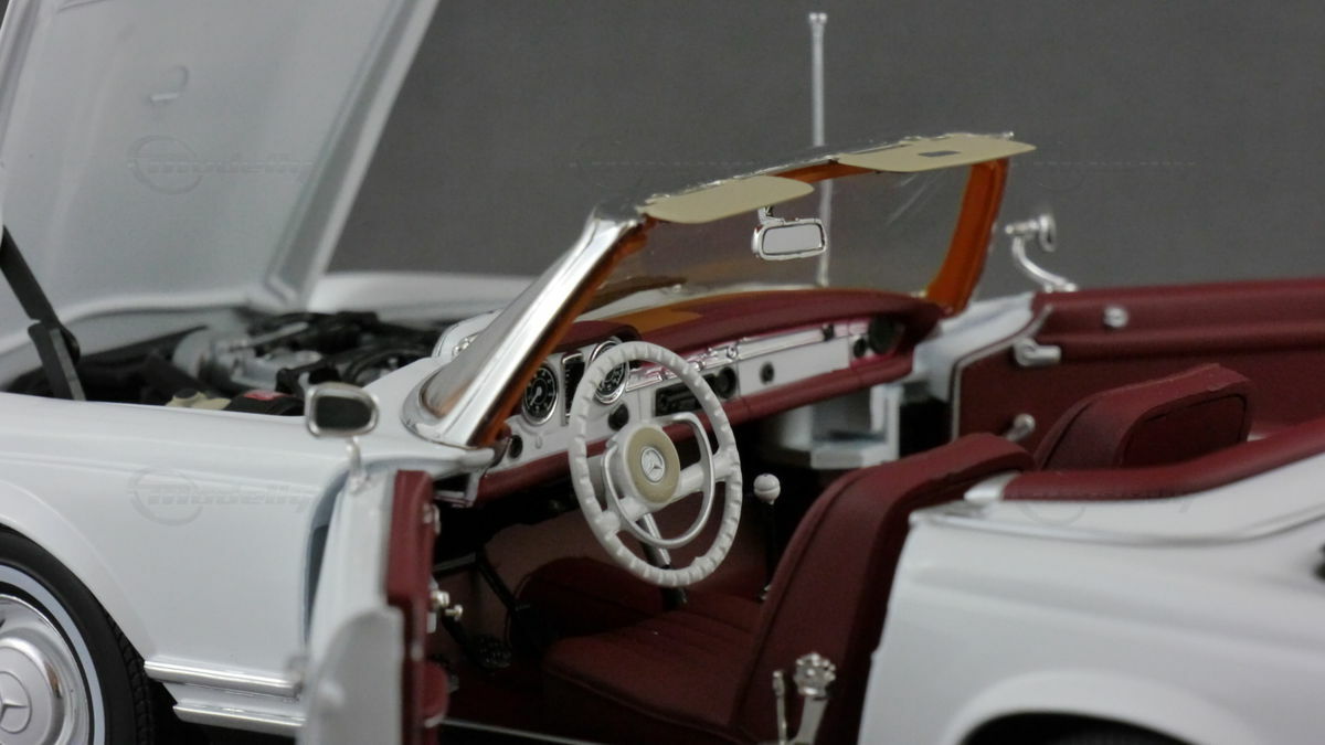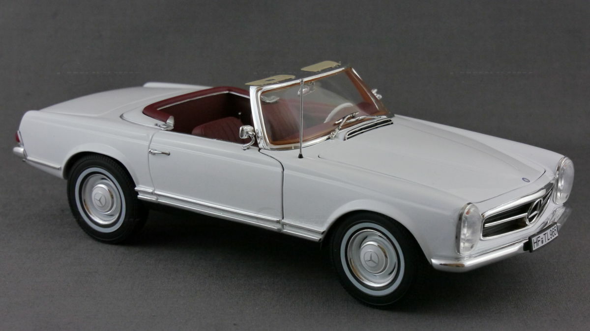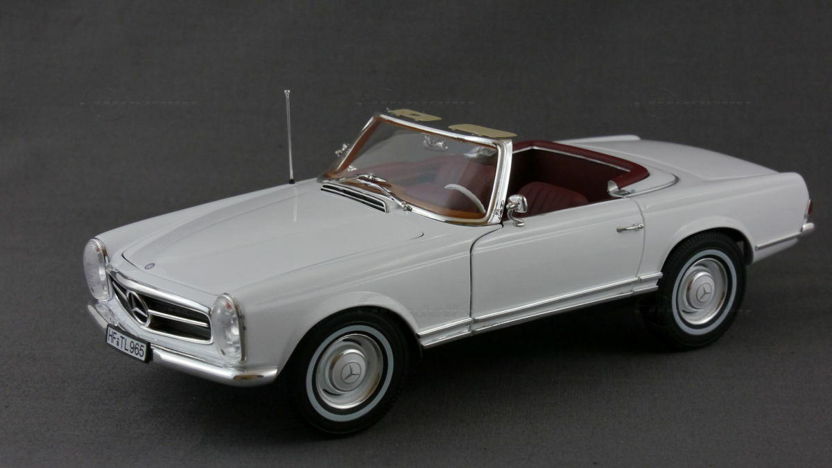 In der Sammlung des Modellbau-Enthusiasten "boxengasse" befindet sich ein beeindruckendes Modellauto im 1:18 Maßstab, hergestellt von Norev. Dieses Modell, basierend auf dem Mercedes 230SL Pagode, besticht durch seine hohe Detailtreue und wurde aus dem robusten Material Diecast gefertigt. Das Modell zeigt die charakteristischen Merkmale des Originals, wie die klassischen runden Scheinwerfer, den markanten Kühlergrill mit dem Mercedes-Stern und die eleganten Linien des Fahrzeugs. Die Lackierung des Modellautos ist in einem eleganten Weiß gehalten und verleiht ihm einen authentischen Look, der dem Original in nichts nachsteht.