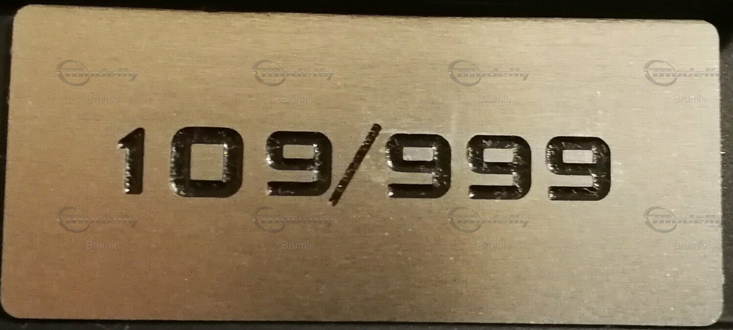 Das Modellauto, welches in der Sammlung von Modelly-Mitglied „Brumle“ zu finden ist, ist im 1:18 Maßstab von GT Spirit gefertigt und basiert auf Resin. Die Lackierung des Modells fällt sofort ins Auge: Ein leuchtender Orange-Metallic-Ton kombiniert mit schwarzen Akzenten wie dem Dach und den Felgen. Die detaillierte Wiedergabe der Logos und Schriftzüge auf der Karosserie, insbesondere von Liberty Walk und ihrer markanten "Sunshine"-Grafik, sind präzise umgesetzt. Auch kleinste Details, wie die seitlichen Lufteinlässe und die aggressiv gestalteten Stoßfänger, sind akkurat dargestellt. Die schwarzen Felgen, die möglicherweise vom Hersteller Rotiform stammen, runden das markante Design ab.