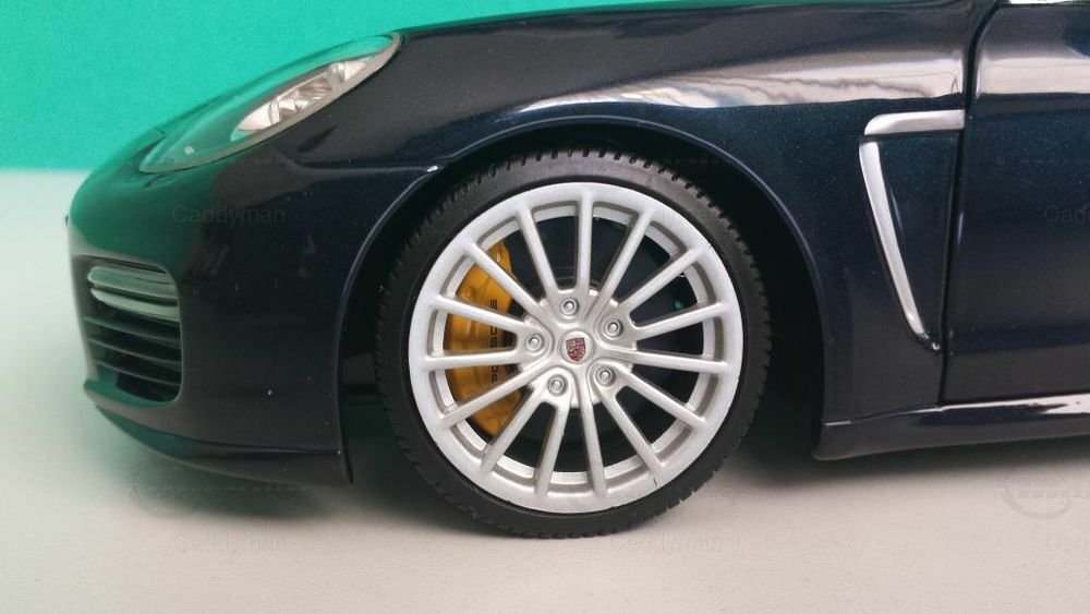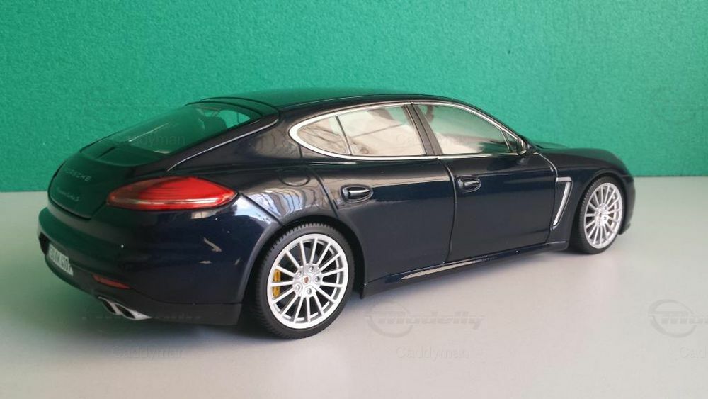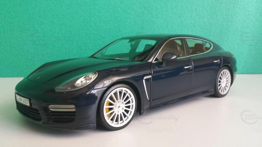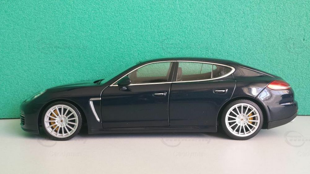 Das präsentierte Modell ist eine 1:18 Skala Nachbildung des Porsche Panamera Turbo S, hergestellt von Minichamps, einem renommierten Modellautobauer. Dieser 1:18 Miniatur bietet eine detaillierte Wiedergabe des Originals und zeigt viele markante Merkmale des Fahrzeugs. Das Modell, das zur Sammlung von Modelly-Mitglied "Caddyman" gehört, ist präzise ausgearbeitet und enthält detailgetreue Nachbildungen der Scheinwerfer, Rückleuchten und der charakteristischen Seitenlinien des Panamera. Beim Betrachten des Modells wird die sorgfältige Arbeit und die Hingabe, die in jedes Detail gesteckt wurde, deutlich. Besonders hervorzuheben sind die lackierten Bremssättel und die feinen Details des Karosseriedesigns.