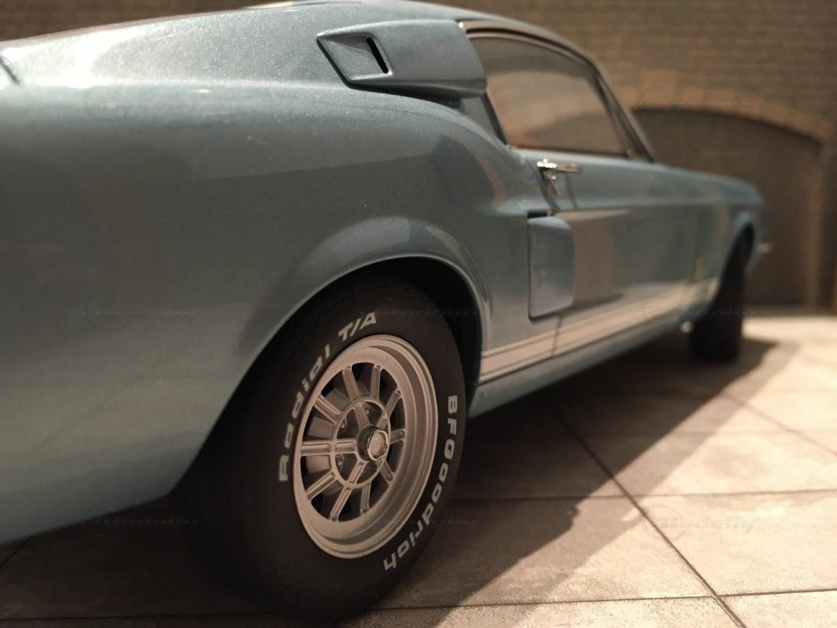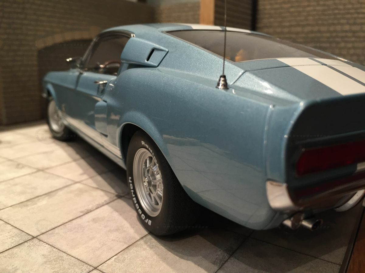 Bei der hier gezeigten Miniatur handelt es sich um ein Modellauto im 1:18 Maßstab, hergestellt von AUTOart Millennium. Diese Miniatur ist bemerkenswert wegen ihrer Detailtreue und der hochwertigen Materialmischung, die für ihre Herstellung verwendet wurde, und befindet sich in der Sammlung des Modelly-Mitglieds "Carjunky". Die Front des Modells ist mit den charakteristischen Doppelscheinwerfern und dem Shelby-Emblem versehen, die an das originale Shelby GT500 Design erinnern. Die Motorhaube und der Frontgrill sind ebenfalls sehr gut nachgebildet, was dem Modell ein realistisches Aussehen verleiht. Die Felgen sind originalgetreu und tragen zur Gesamtästhetik des Miniaturautos bei. AUTOart Millennium hat bei diesem Modell großen Wert auf Präzision gelegt, was an den exakten Details und der hochwertigen Verarbeitung erkennbar ist.