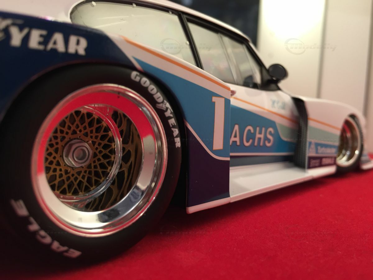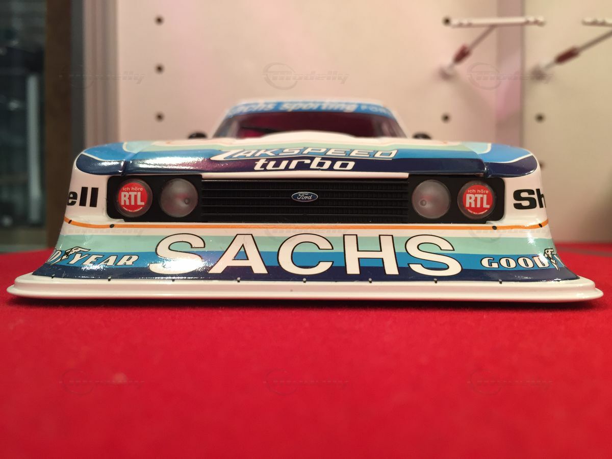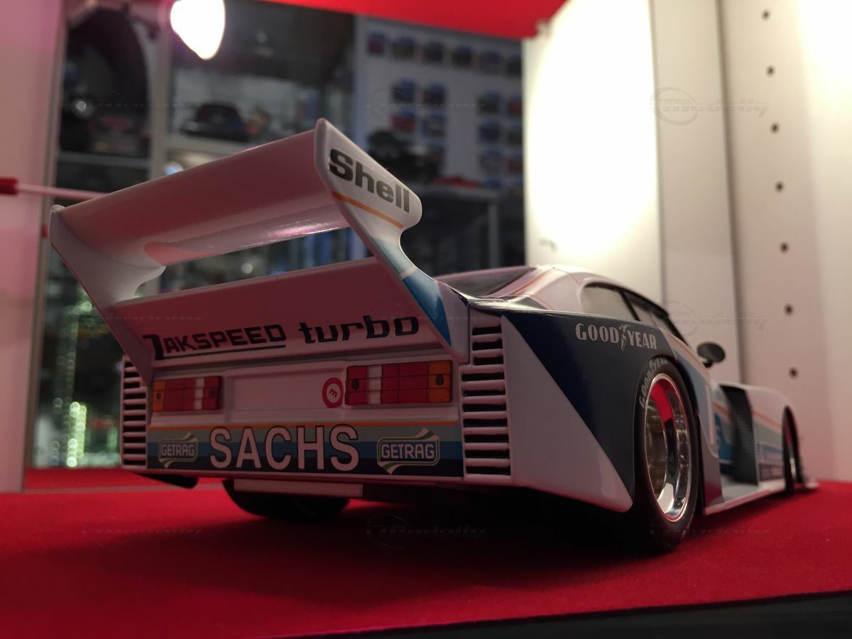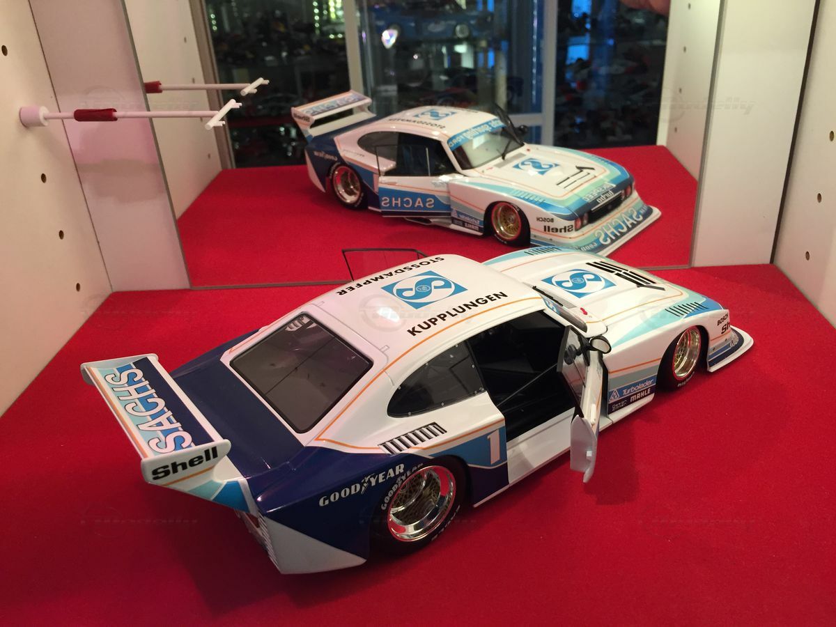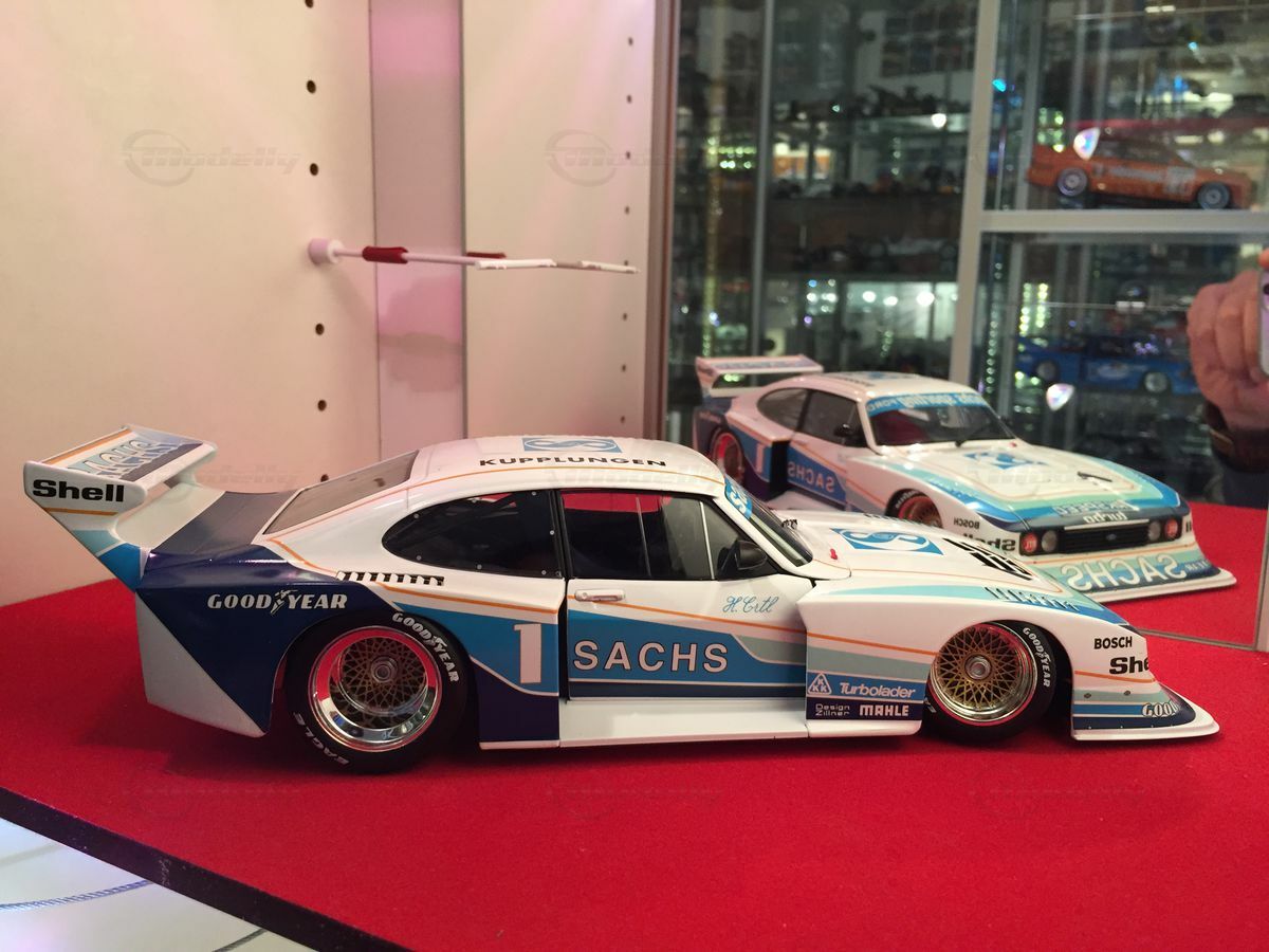 Das Modell des Ford Capri Turbo Gruppe 5 von Minichamps im 1:18-Maßstab ist ein echtes Highlight für jeden Sammler. Die perfekte Nachbildung und die detailgetreue Verarbeitung machen es zu einem begehrten Stück für Liebhaber historischer Rennfahrzeuge. Die matte und glänzende Oberfläche der Lackierung, kombiniert mit den akribisch aufgebrachten Sponsoren-Logos, verleihen dem Modell ein authentisches Aussehen. Besonders die auffällige "SACHS"-Beschriftung und die anderen Sponsoren-Logos wie Good Year und Shell stechen ins Auge und betonen die Herkunft dieses Rennboliden im historischen Motorsport. Jede einzelne Komponente des Modells – von der aerodynamisch gestalteten Front bis hin zum großen Heckspoiler – wurde mit Präzision und Liebe zum Detail gefertigt. Dieses Modell, das auf den Fotos gut zu erkennen ist, bietet Sammlern die Möglichkeit, ein Stück Motorsportgeschichte in die eigene Sammlung aufzunehmen.