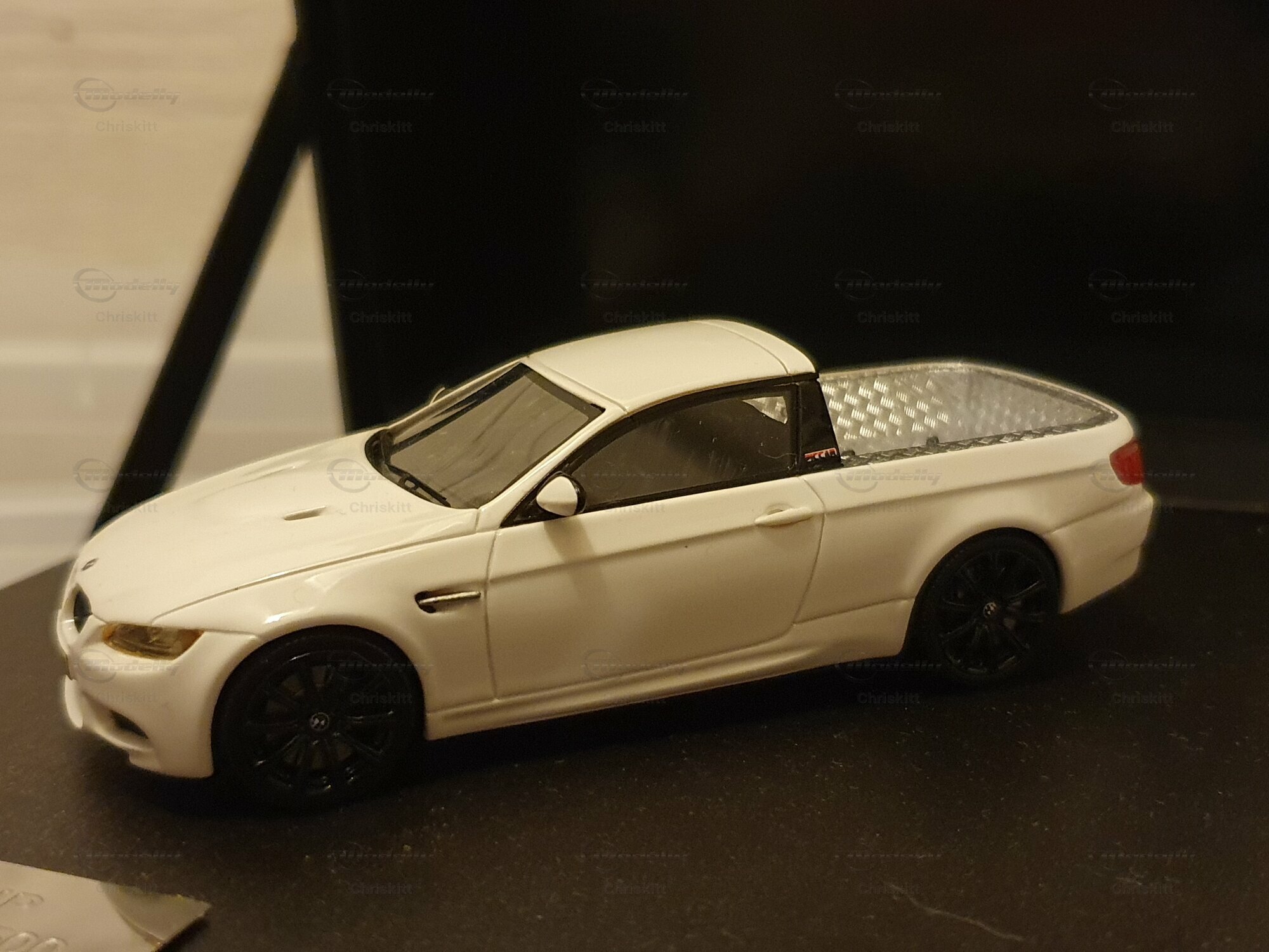 BMW M lässt sich den Spaß nicht nehmen und lobt den rasanten Lastenträger zum 1. April 2011 in einer Pressemitteilung als „vierte Karosserievariante“ aus. Im Vorfeld wurden sogar Erlkönig-Fotos von Abstimmungsfahrten auf der Nürburgring-Nordschleife lanciert. „Plötzlich entstand die Idee, das Fahrzeug als Scherz zu verkaufen“, erinnert sich Jakob Polschak. Viele Fans und Journalisten hätten so ein extravagantes Transport-Gefährt tatsächlich gern in Serie gewünscht. Doch auch dieser Pickup bleibt ein Einzelstück. Und trotzdem, ebenso wie „Resi“, auf ewig ein Mitglied der M3-Familie.