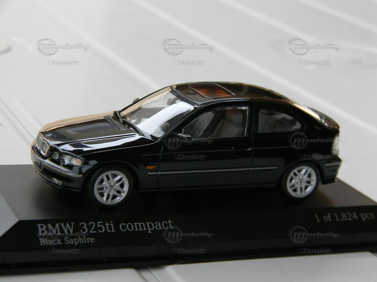 Das hier gezeigte Modellauto ist im maßstabgetreuen 1:43 Format und wurde von Minichamps gefertigt. Das Modell besteht aus Diecast-Material, was ihm eine hohe Stabilität und Detailtreue verleiht. Der BMW 325ti Compact ist in der Farbe "Black Saphire" lackiert, was dem Fahrzeug einen eleganten und zeitlosen Look verleiht. Auffällig sind die detaillierten Nachbildungen der Frontscheinwerfer, der Nieren im Kühlergrill und der sechsspeichigen Felgen. Der Innenraum des Modells ist ebenso sorgsam nachgebildet, mit klar erkennbaren Sitzen und Armaturen. Dies ist ein großartiges Beispiel für die Qualität und Präzision, für die Minichamps bekannt ist. Einmal mehr bestätigt der renommierte Hersteller damit seinen Status in der Welt der Modellautos.