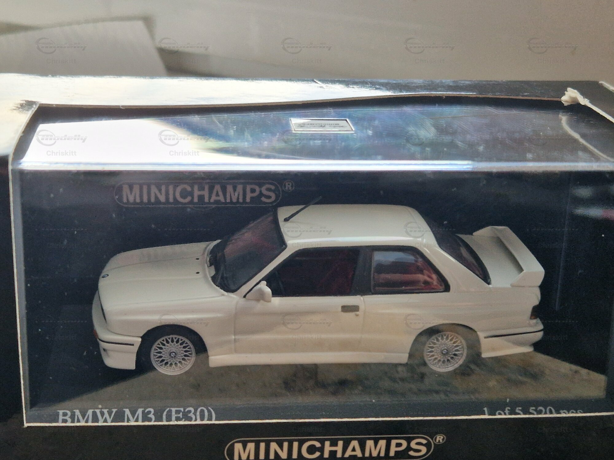 Das hier vorgestellte Modellauto im Maßstab 1:43, hergestellt von Minichamps, ist eine detailgetreue Nachbildung des BMW M3 (E30). Diese Miniatur wurde aus hochwertigem Diecast-Material gefertigt, was für Robustheit und eine präzise Darstellung sorgt. Hervorzuheben ist, dass dieses Modell auf weltweit nur 5520 Stück limitiert ist, was es besonders für Sammler begehrenswert macht. Die Lackierung ist in einem klassischen Weiß gehalten, während die BBS-Felgen die sportliche Note perfekt ergänzen. Die kleinen Details, wie der akkurate Nachbau der Scheinwerfer und Rückleuchten, sowie die originalgetreue Darstellung der Karosserie, machen dieses Modell besonders sehenswert. Auch die Verpackung selbst, die das Fahrzeug sicher schützt, unterstreicht dessen Sammelwert. Diese Miniatur ist ein Highlight in der Sammlung von Modelly-Mitglied "Chriskitt".