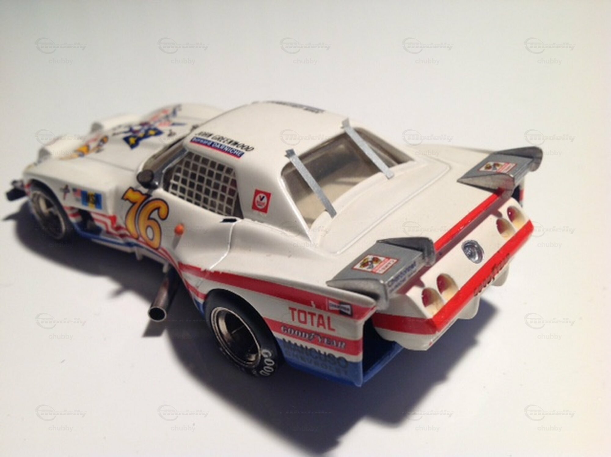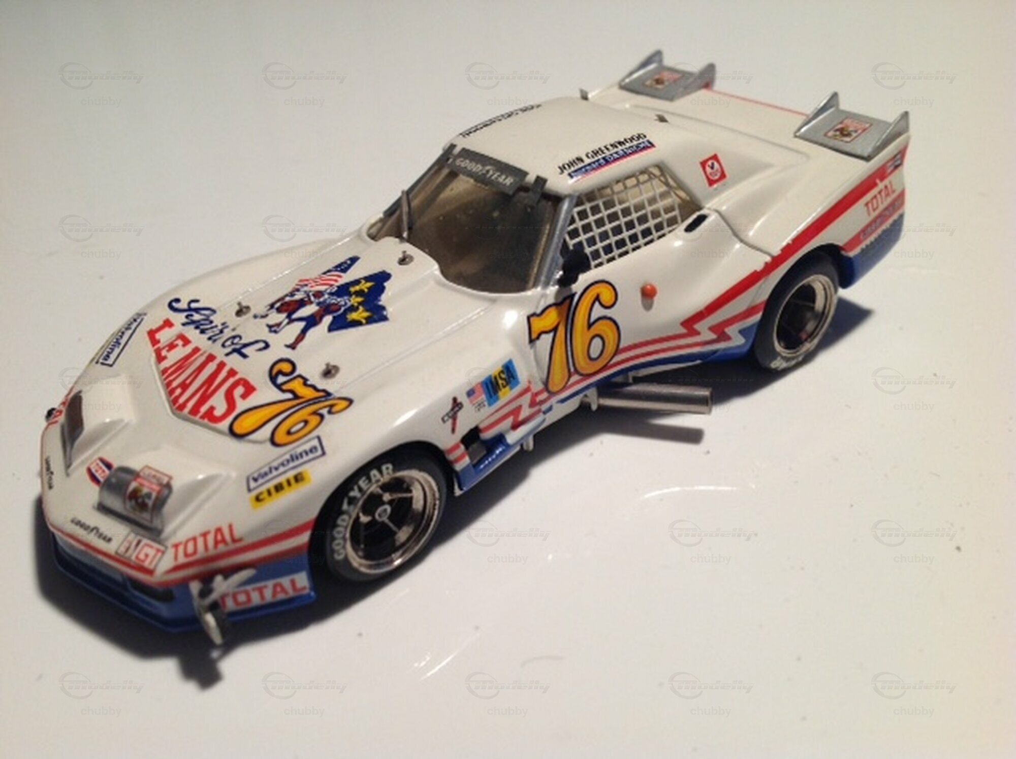 Wir bleiben bei schweren Weissmetall-Rennmodellen und kommen zur Traditionsmarke AMR (André Marie Ruf). Die aufregende, schnelle Breitbau-Vette wurde 1976 in Le Mans von Greenwood/Darniche gefahren. Auf dem dritten Bild steht das Modell vor einem entsprechenden in Resin gefertigten Exemplar von TSM. Der Vergleich zeigt deutlich, dass im Modellautobau die Zeit nicht stehengeblieben ist...