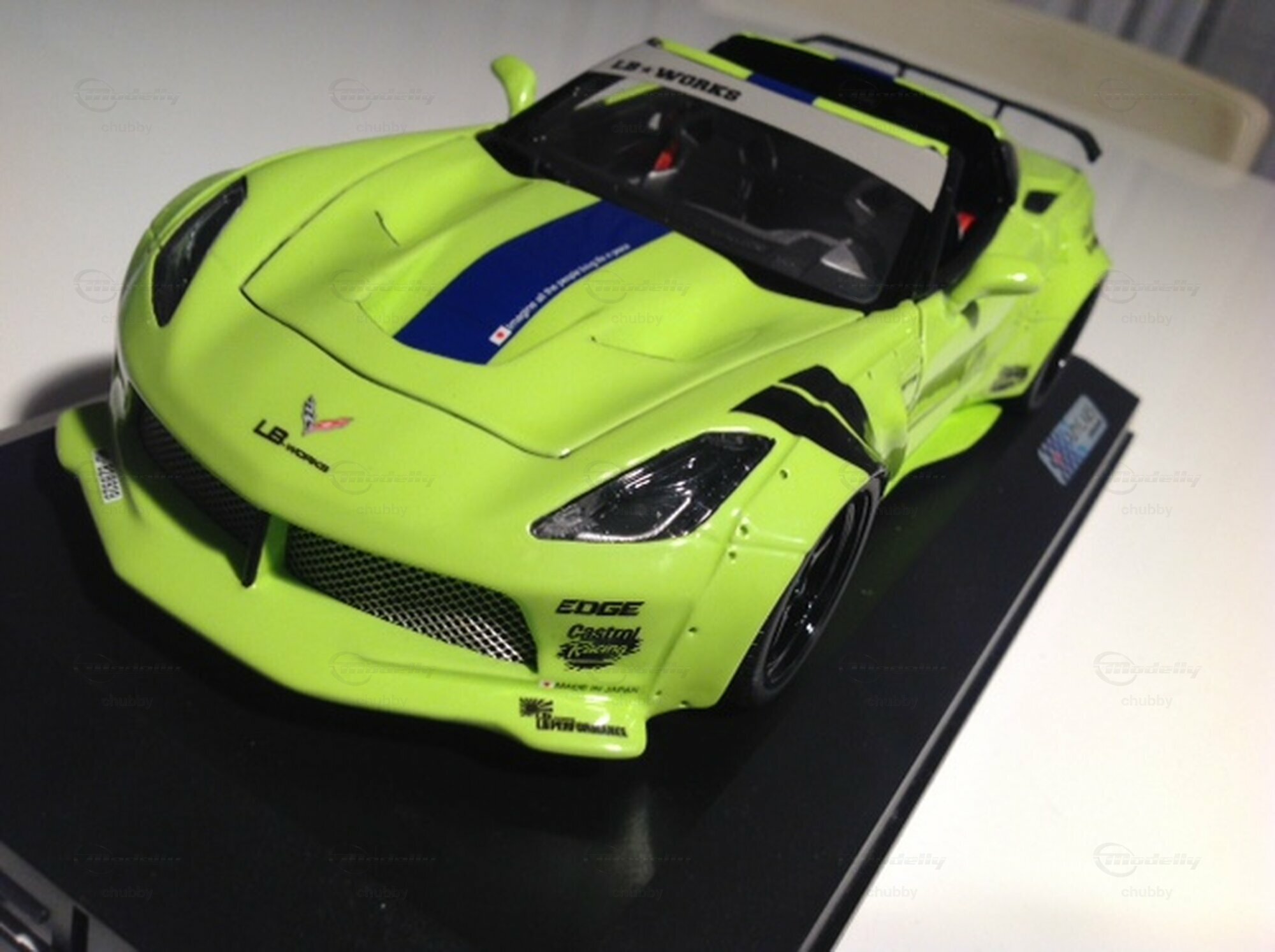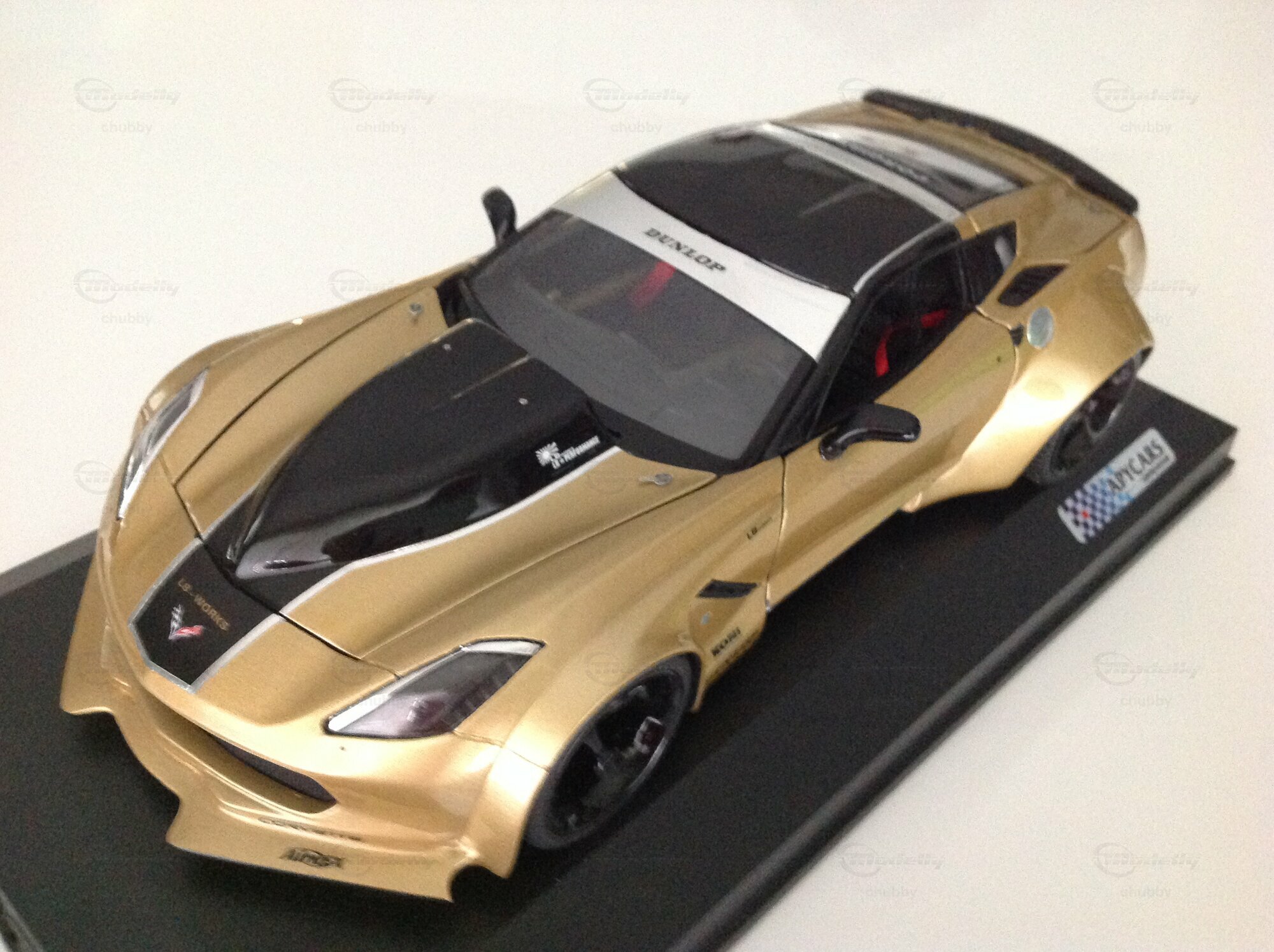 Hier zwei verbreiterte C7 Coupés von Apycars, einmal ohne und einmal mit Targa-Dach. Das gelbgrüne Modell ist schon fett und wuchtig, das goldfarbene noch fetter und noch wuchtiger. Schon fast eine Zumutung! Aber faszinierend, wenn auch nicht schön im klassischen Sinn...