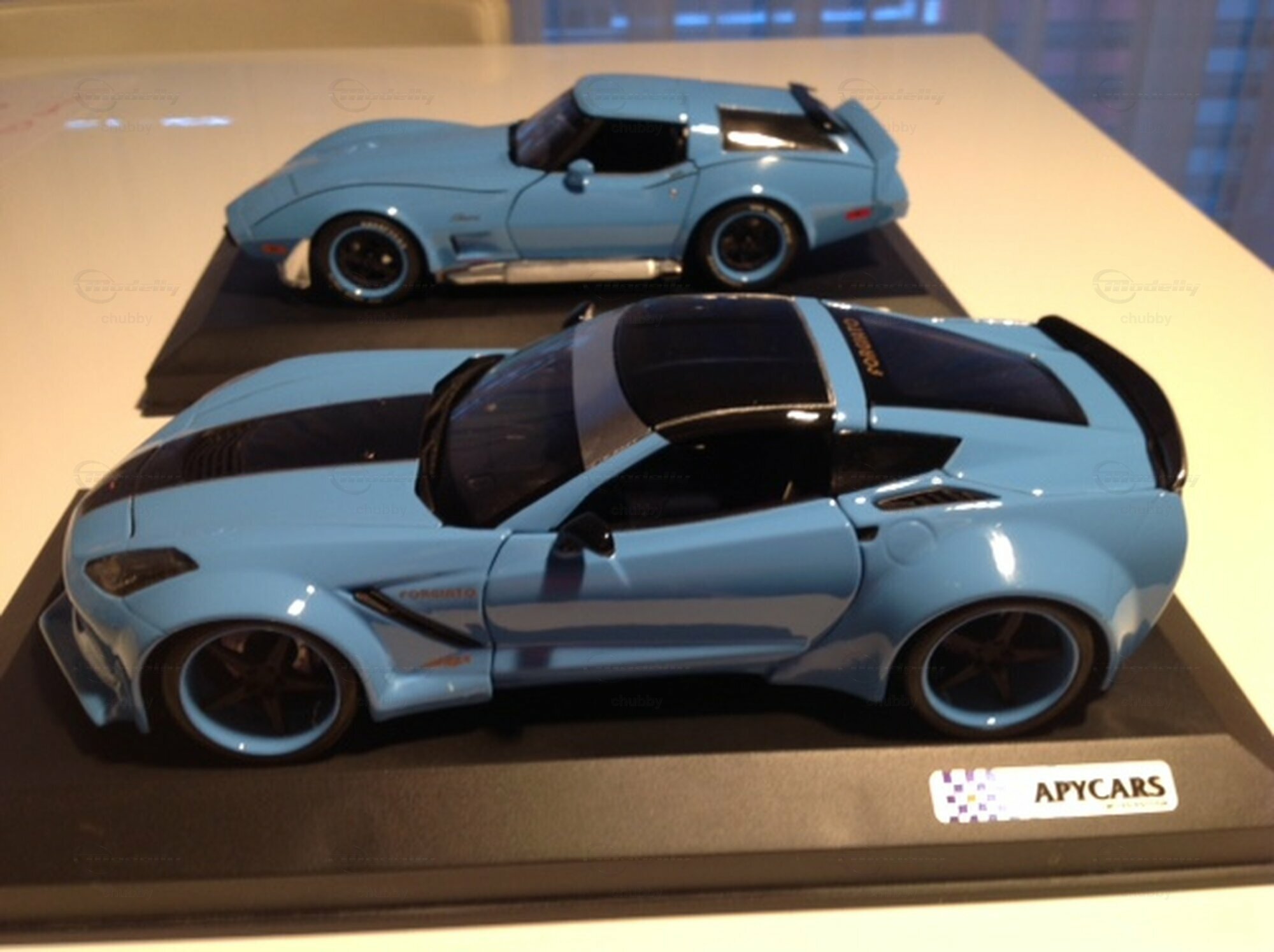 Hier ein weiteres C7 Coupé von  Apycars. Auf dem dritten Bild steht es vor einem identisch lackierten C3 Sportwagon.