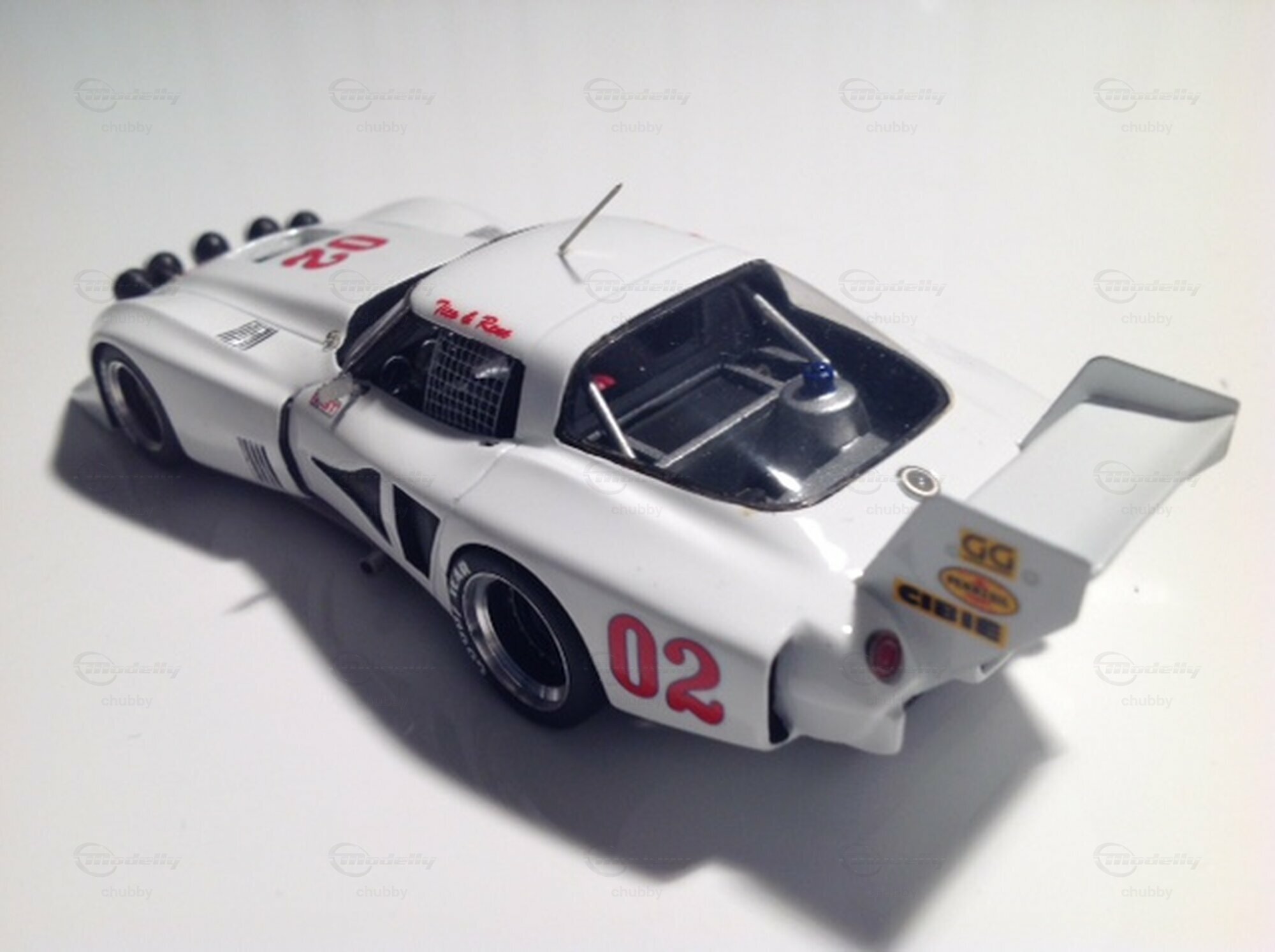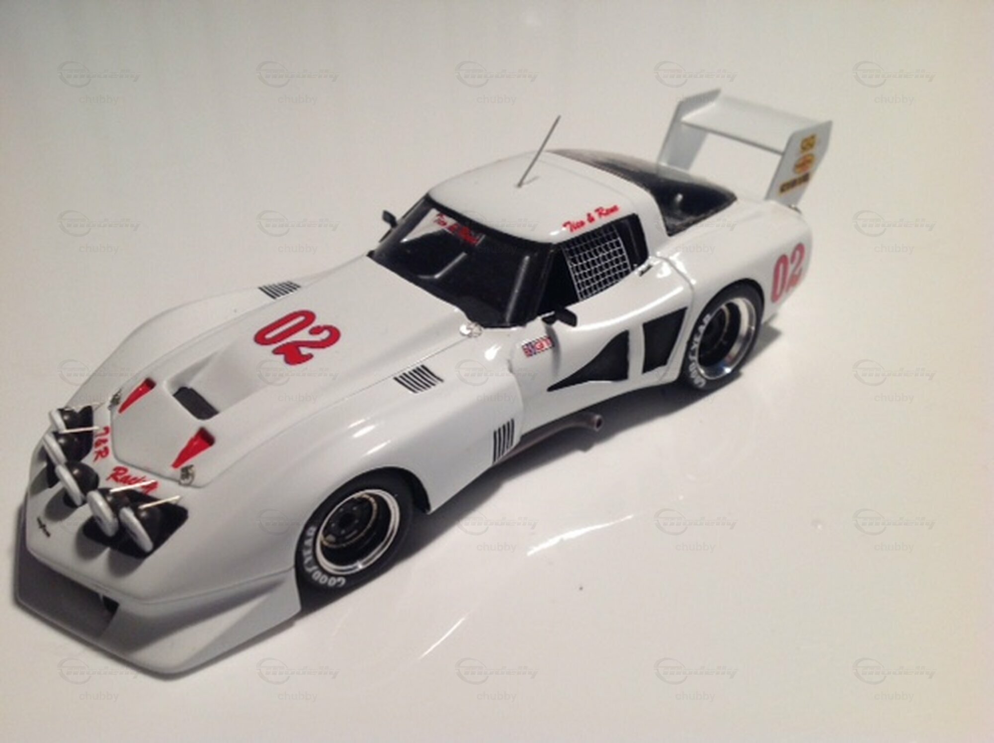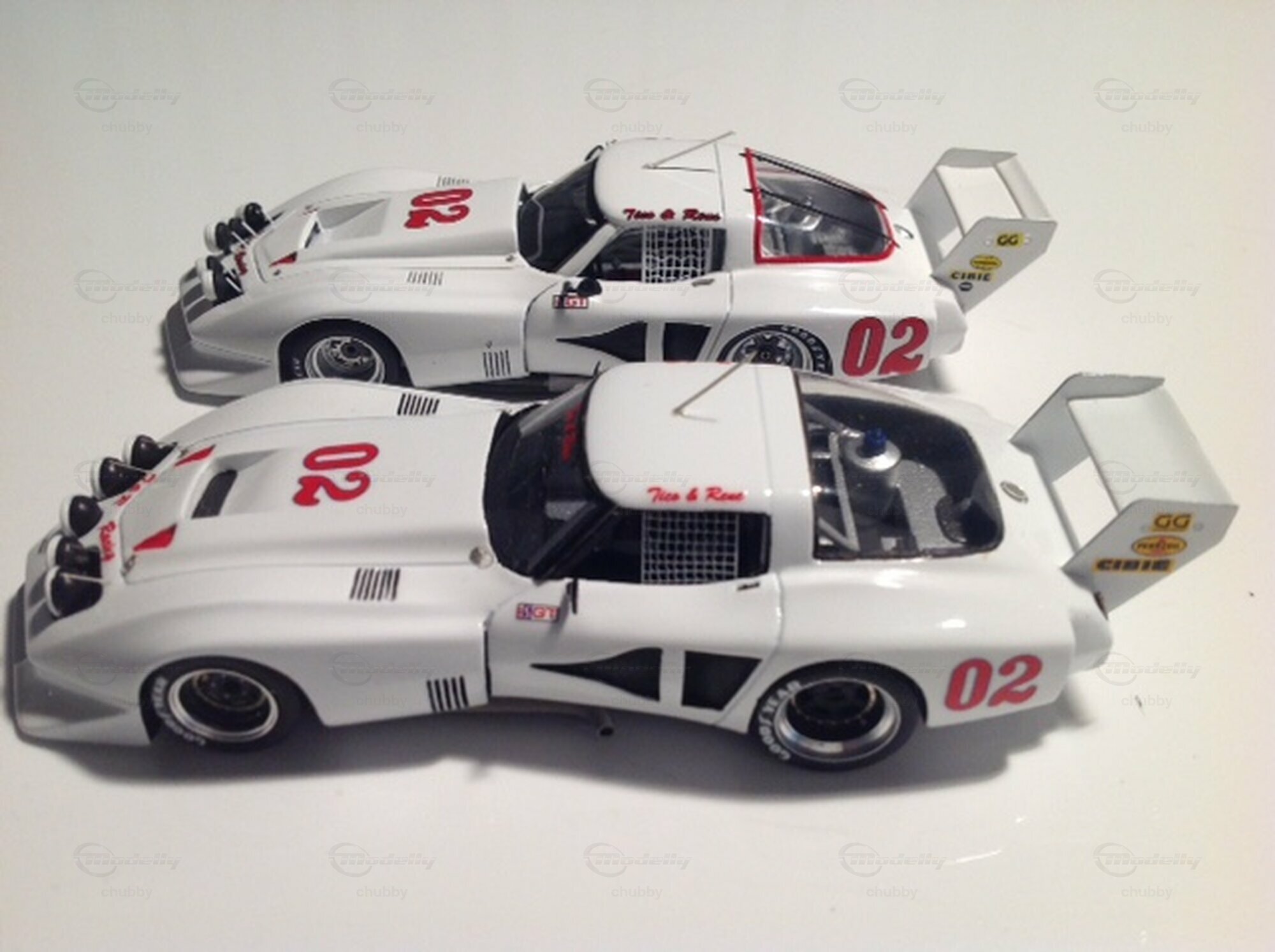 Das Team Almeida/Rodriguez/Riano fuhr dieses monströs wirkende weisse C3 Tubular beim 12-Stunden-Rennen von Sebring des Jahres 1980. Arena Modellini schuf die 1:43-Miniatur als erster Hersteller, Spark Models als zweiter. Jenes von Arena mag etwas filigraner sein, aber das viel kostengünstigere von Spark (auf dem dritten Bild  das hintere) ist erstaunlicherweise eine detailgetreuere Wiedergabe des Autos.